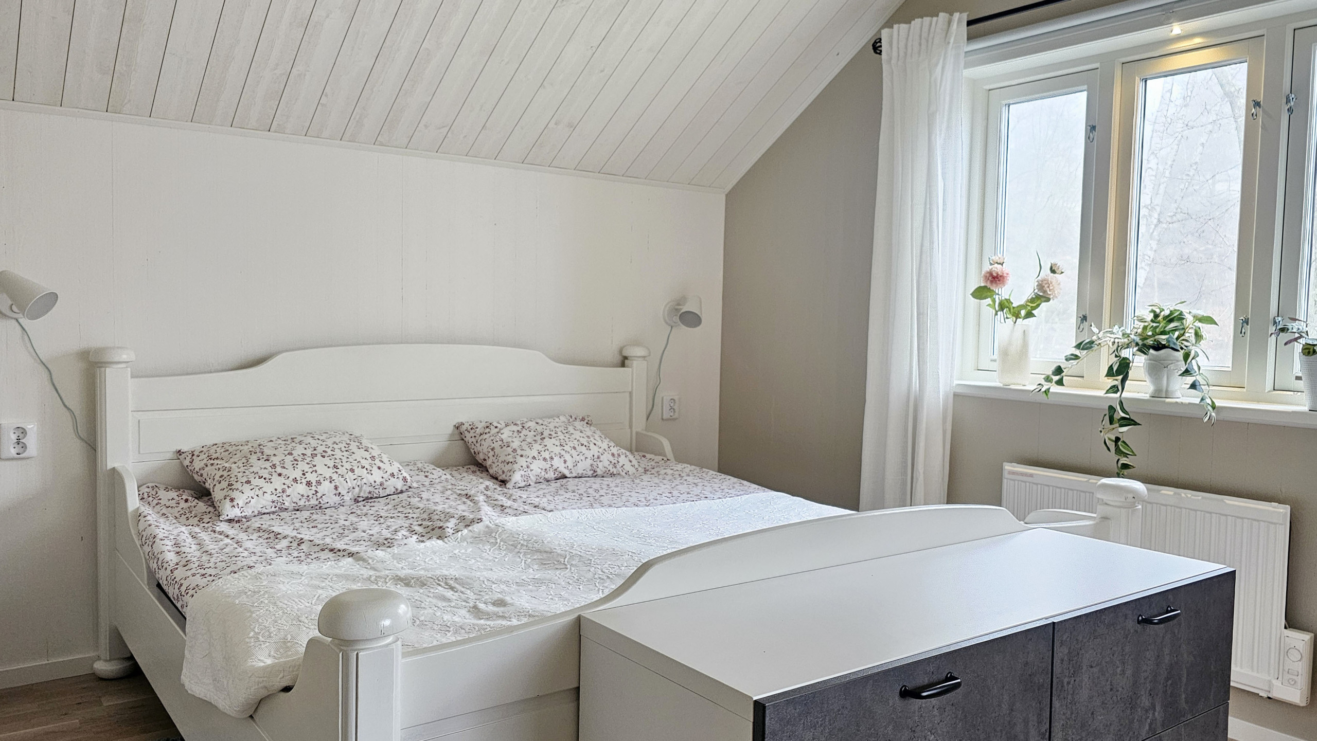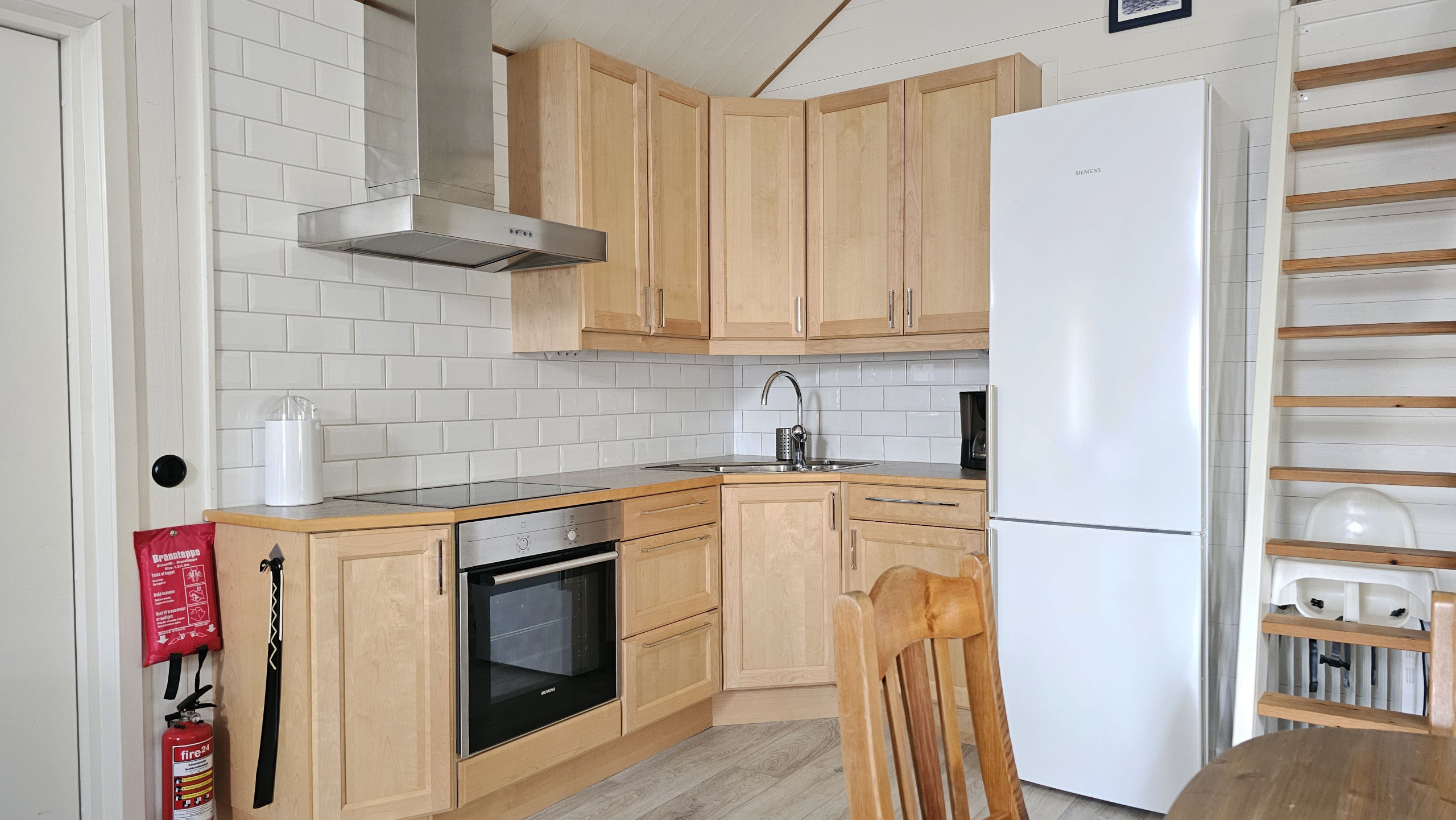 Willkommen in einer charmant renovierten Unterkunft auf der wunderschönen Insel Tjörn, wo Sie sowohl in der Nähe des Meeres als auch der Natur wohnen. Auf dem Grundstück befinden sich zwei separate Unterkünfte, ein gemütliches Ferienhaus und ein neu gebautes Studio über der Scheune. Zusammen bietet das Anwesen Platz für bis zu 10 Gäste und eignet sich perfekt für zwei Familien oder eine größere Gruppe, die gemeinsam Urlaub machen möchten und dennoch etwas Privatsphäre genießen wollen. Das Ferienhaus bietet Platz für 6 Personen und überzeugt mit einer hellen und gemütlichen Atmosphäre sowie einem offenen Grundriss zwischen Küche, Essbereich und Wohnzimmer. Die Küche ist modern und vollständig ausgestattet. Im Wohnzimmer befindet sich ein bequemes IKEA Tagesbett, das ausgezogen 160 cm breit ist. Das Schlafzimmer im Erdgeschoss verfügt über ein neues Doppelbett. Auf dem Loft befinden sich komfortable Federkernmatratzen sowie zwei kleine Fenster mit Blick auf die Scheune, was diesen Bereich zu einem idealen Schlafplatz für größere Kinder oder Erwachsene macht. Das Badezimmer ist mit Dusche, Waschmaschine und Fußbodenheizung ausgestattet. Vor dem Haus erwartet Sie ein geschützter Innenhof mit Gartenmöbeln, Grill und Abendsonne, wo Sie die Ruhe der umliegenden Natur genießen können.