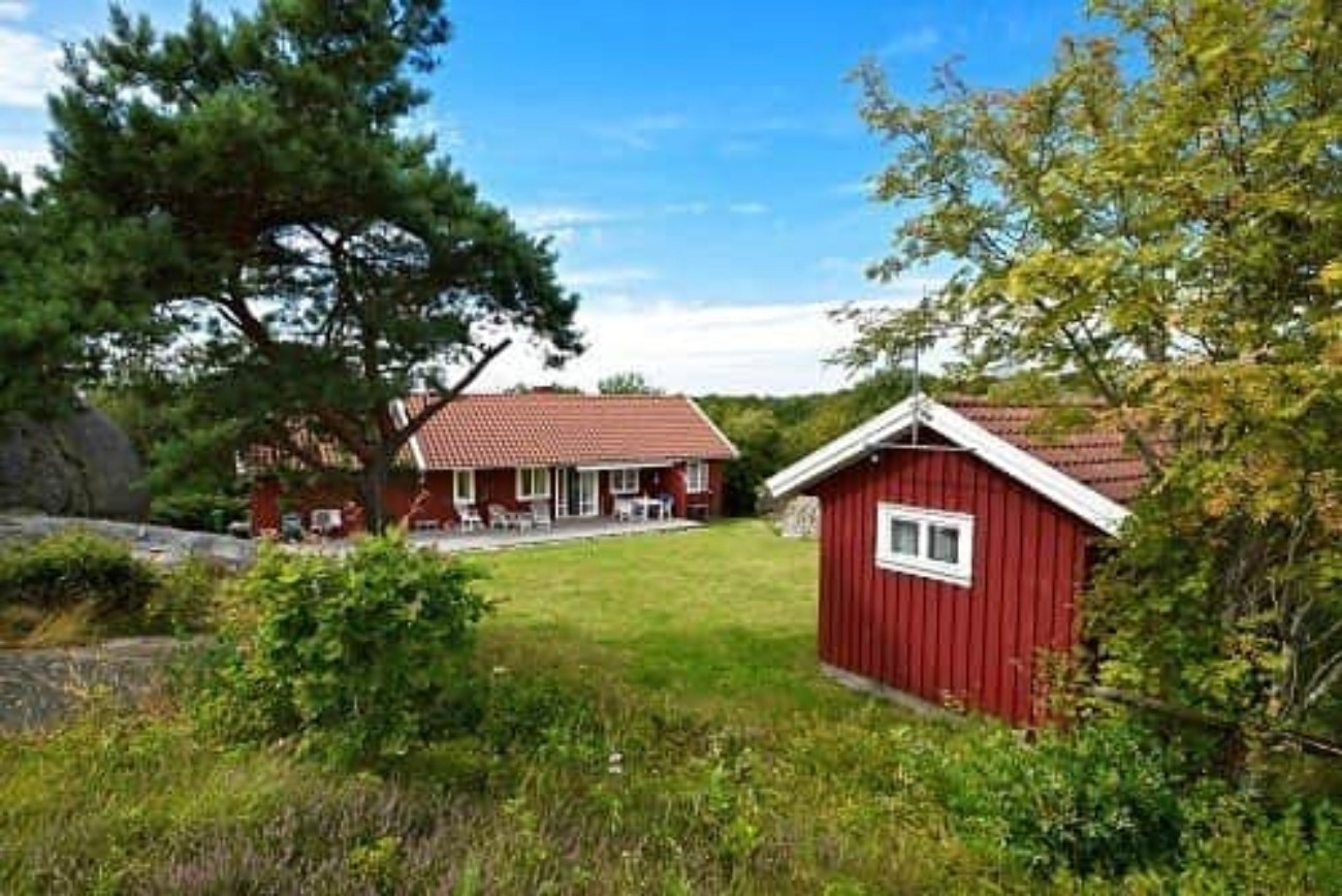 Willkommen in einem klassischen Ferienhaus an der Westküste im malerischen Hälleviksstrand! Hier wohnen Sie in zwei charmanten roten Häusern, die zusammen Platz für bis zu 8 Personen bieten – ideal für eine große Familie oder zwei befreundete Familien. Der abgeschirmte Innenhof bietet Ihnen Ihren ganz privaten Bereich für Spiel, Erholung und gemütliche Abendessen in der Sonne. Das Haupthaus strahlt echtes Sommerflair aus mit seiner gemütlichen Küche, dem Kaminofen und dem offenen Grundriss, in dem Küche und Wohnzimmer ineinander übergehen. Es gibt drei Schlafzimmer: eines mit Doppelbett, eines mit Hochbett und eines mit zwei eingebauten Betten. Ein WC befindet sich im Flur. Das Gästehaus verfügt über einen offenen Grundriss mit kleiner Küchenzeile, Schlafplätzen und einer gemeinsamen Dusche für die ganze Gruppe. Außerdem gibt es einen Essbereich und eine TV-Ecke. Das Grundstück zwischen den beiden Häusern ist von Felsen und den Gebäuden eingerahmt, was eine abgeschirmte Oase schafft, in der Sie sonnenbaden, spielen oder einfach die Ruhe genießen können. Auf der großen Terrasse finden Sie Platz für Loungemöbel und Grillabende. Von hier führt ein kleiner Weg nach Hälleviksstrand, und bevor die Bäume ihre Blätter tragen, können Sie vom Haus aus sogar die Bucht erblicken. Hunde sind willkommen, und auch Kinder fühlen sich hier wohl – mehrere Außenbereiche laden alle Gäste zum Verweilen ein.