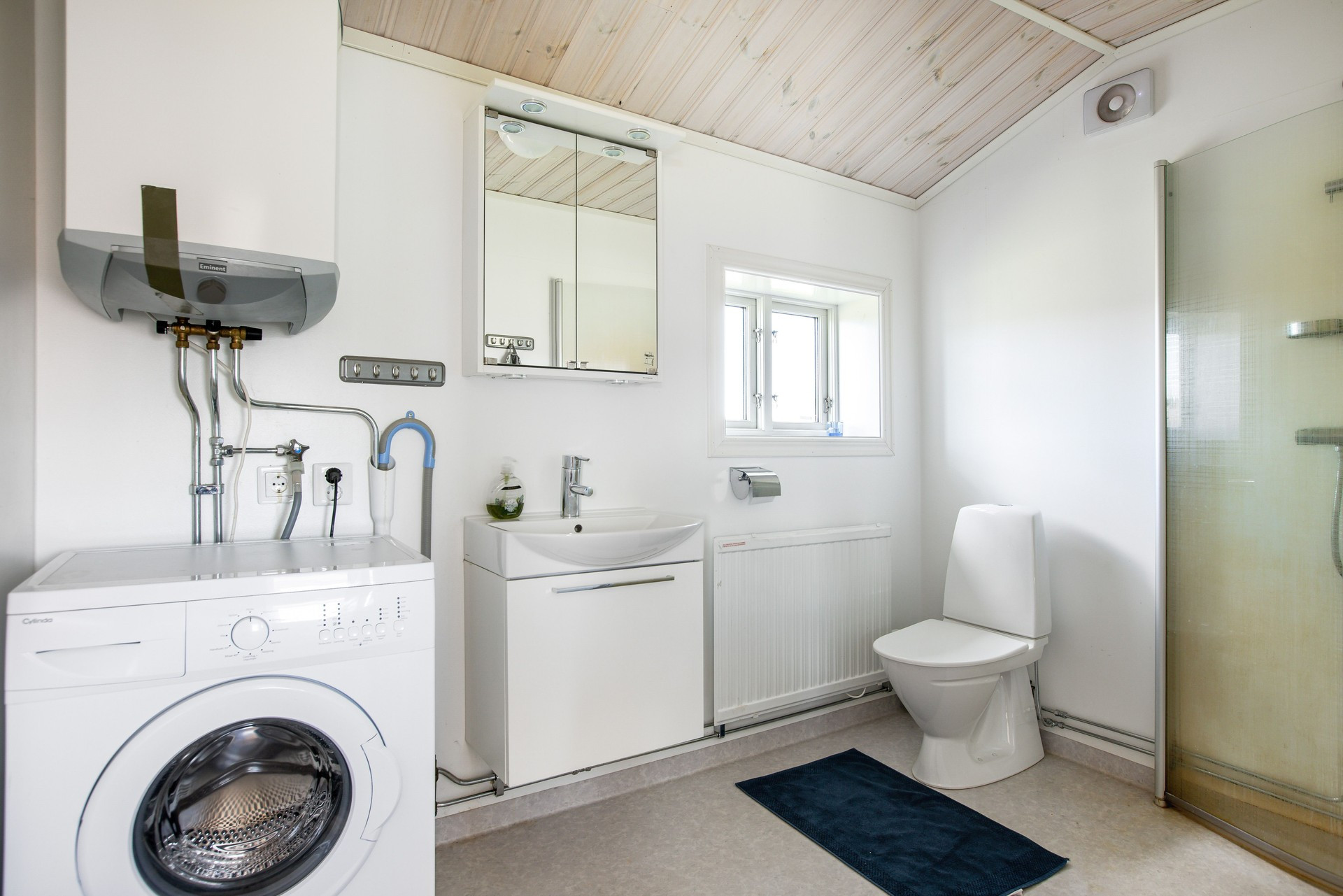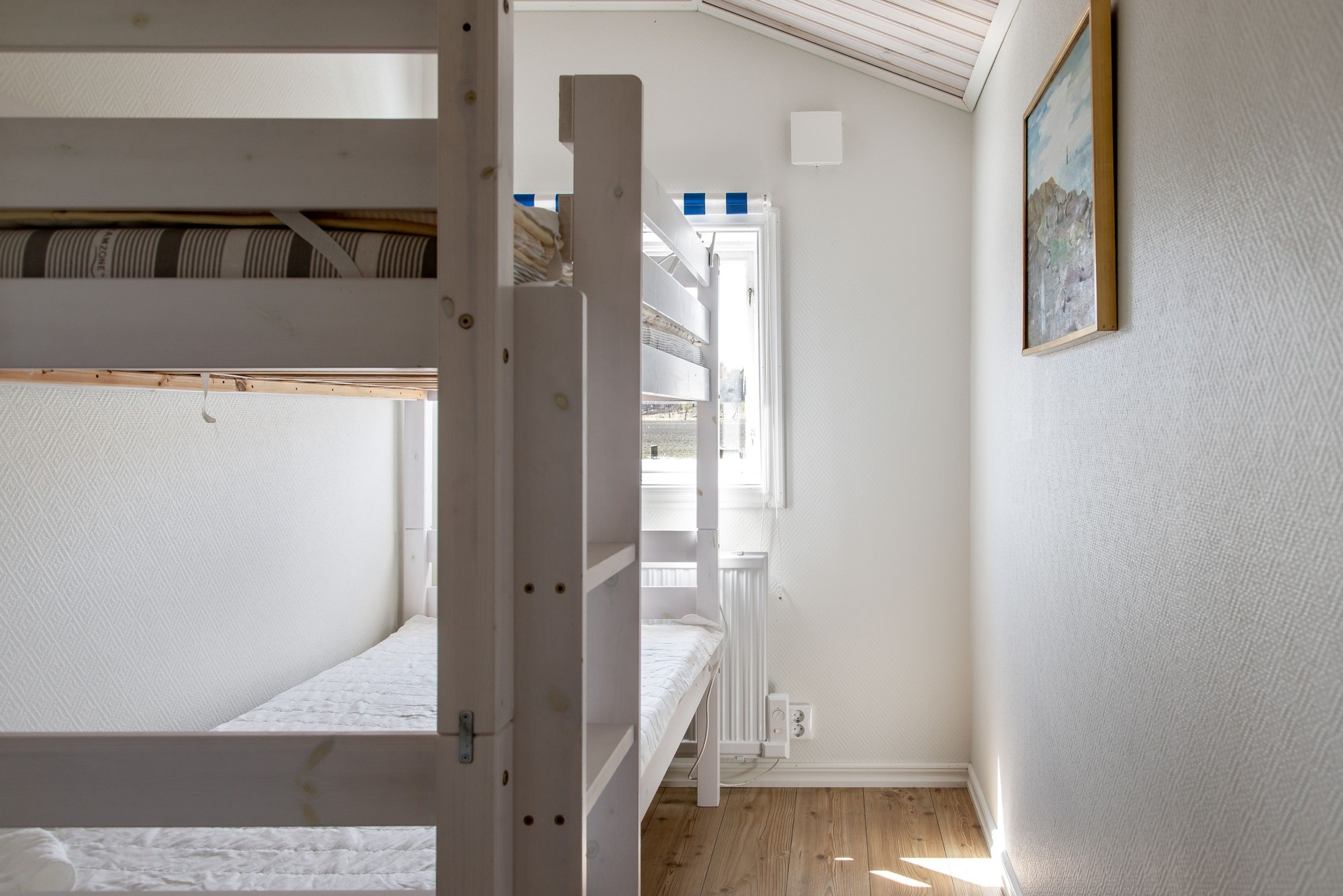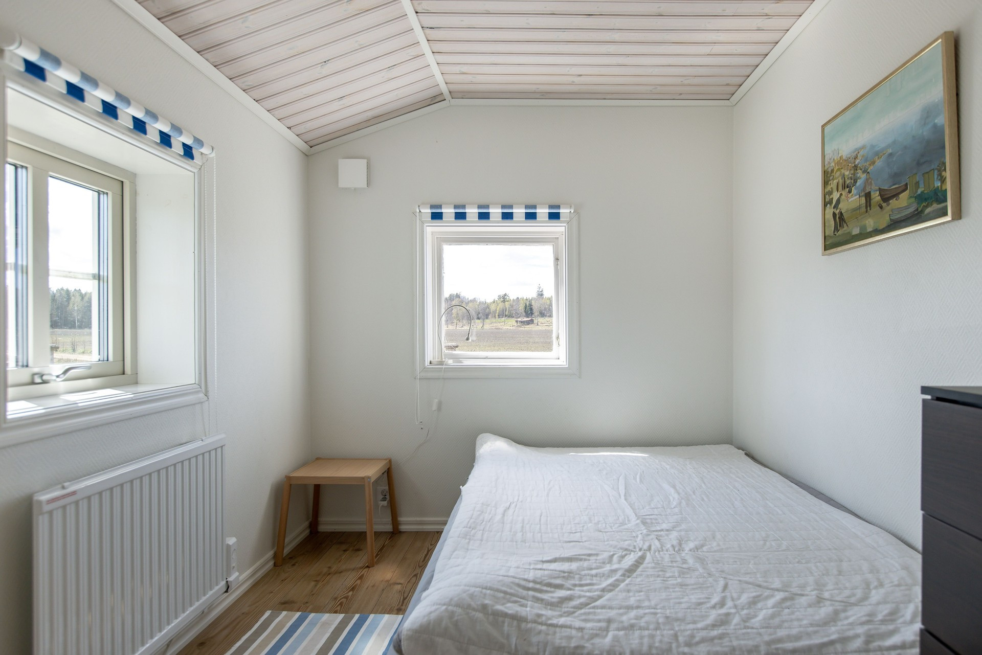 Das Ferienhaus hat zwei Schlafzimmer, eines mit Doppelbett und das andere mit Etagenbett. Im Wohnzimmer steht außerdem ein Schlafsofa und hier können Sie an kälteren Abenden gemütliche Stunden vor dem Holzofen verbringen. Brennholz kann für SEK 100 erworben werden. Das Badezimmer ist mit Dusche und WC ausgestattet, wobei das Wasser stark eisenhaltig ist und rötliche Ablagerungen hinterlassen kann.