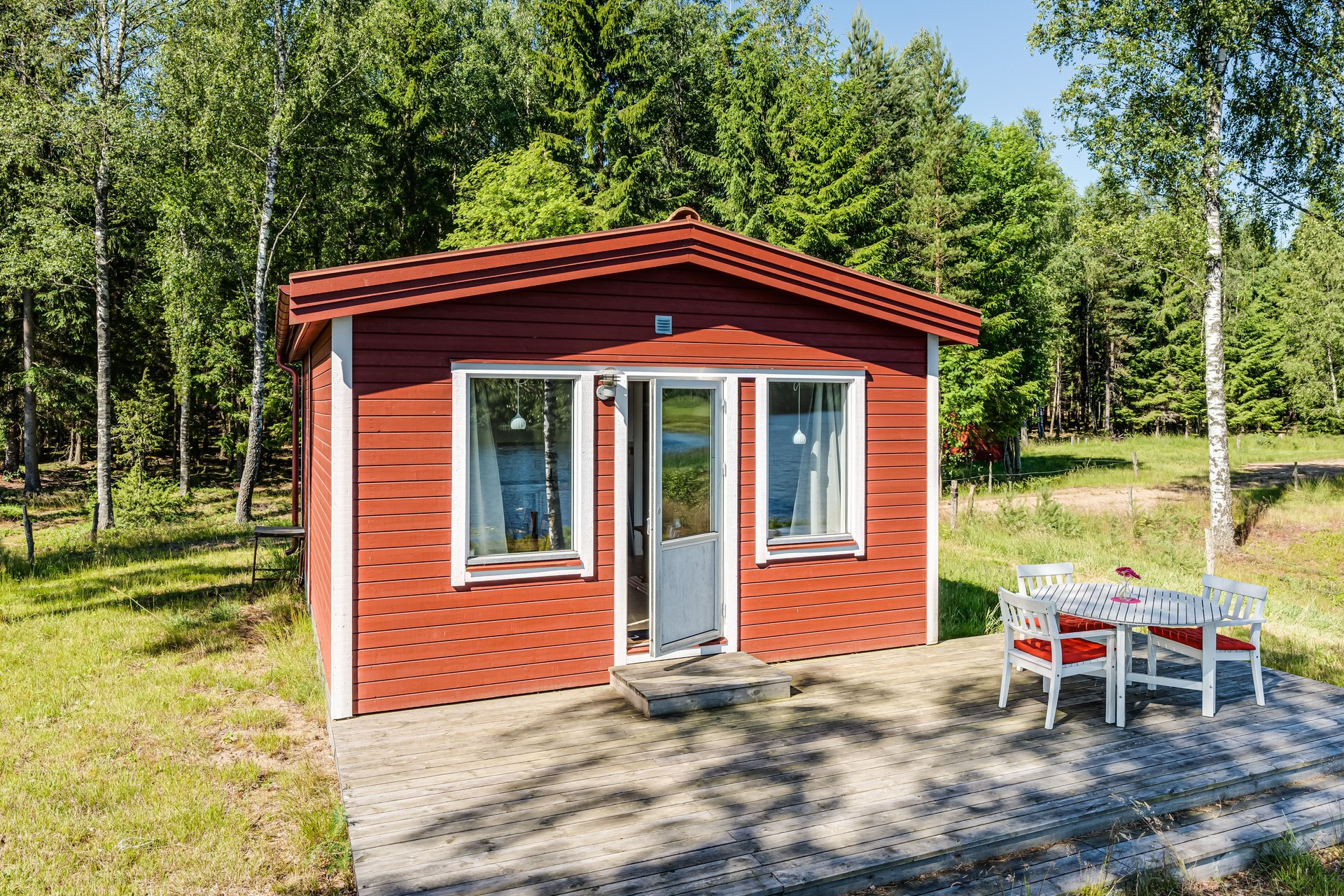 Falls Sie als grössere Gruppe anreisen möchten, dann können Sie vier, nahe beieinander liegende Hütten bieten. Die Hütten sind von Weideflächen mit Weidetieren, z. B. Kühen, umgeben. Viele der schönen Seen in der Umgebung locken in den Ferien zum Angeln, darunter der Bolmen, einer der 10 größten Seen Schwedens. Den notwendigen Angelschein erhalten Sie über www.ifiske.se, wo Sie weitere Informationen über die Seen der unmittelbaren Umgebung erhalten.