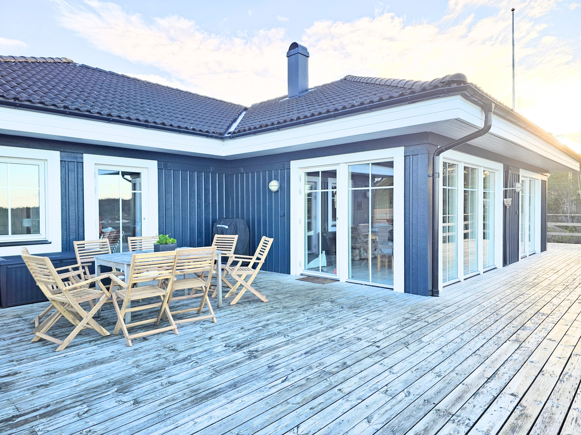 Willkommen in dieser schönen und gut geplanten Villa mit herrlichem Blick auf Meer und Wald, nur wenige Minuten vom Badeplatz Småholmarna entfernt. Hier wohnen Sie komfortabel in einem geräumigen Haus von 154 m² mit Platz für bis zu 8 Personen – ideal für zwei Familien, die gemeinsam Urlaub machen möchten.