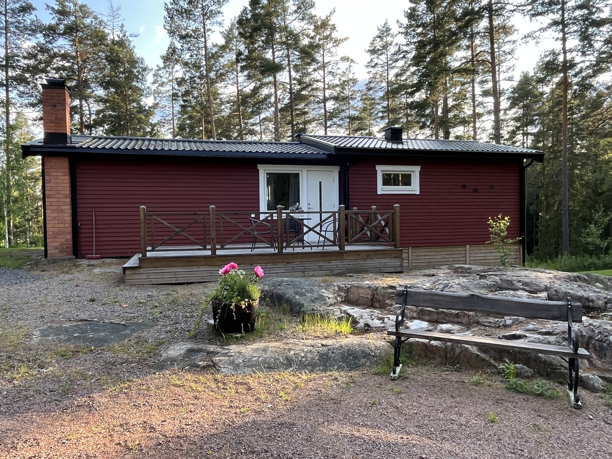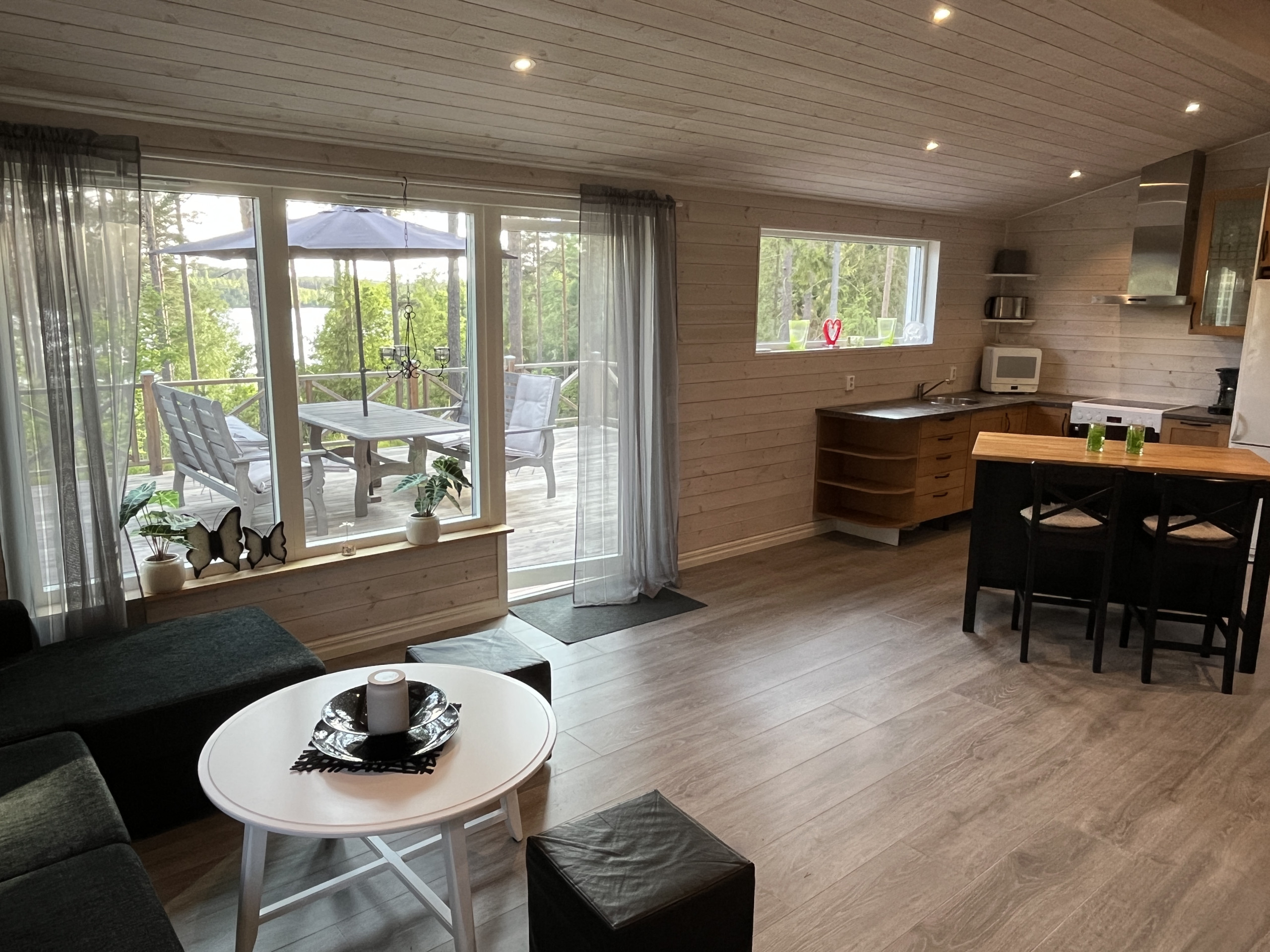 Willkommen in einem charmanten Ferienhaus in ruhiger, naturnaher Lage – nur wenige Schritte vom glitzernden See Oppbjärken entfernt. Ein kurzer Spaziergang führt Sie direkt ans Wasser, wo Sie schwimmen oder angeln können. Von der großen Terrasse aus genießen Sie einen teilweisen Blick auf den See – der perfekte Ort für gemeinsame Mahlzeiten, entspannte Stunden oder gemütliche Grillabende in der Sommerabendsonne. Die Terrasse erreichen Sie direkt vom Wohnzimmer, das offen mit der gut ausgestatteten Küche verbunden ist. Im Wohnzimmer befindet sich außerdem ein komfortables Schlafsofa für zusätzliche Schlafplätze. Im Badezimmer steht eine Waschmaschine zur Verfügung – ideal für längere Aufenthalte. Das Schlafzimmer ist mit einem Doppelbett und einem Einzelbett ausgestattet – auch von hier aus haben Sie Seeblick. Ein perfektes Urlaubsziel für alle, die Ruhe, Natur und Wassernähe suchen.