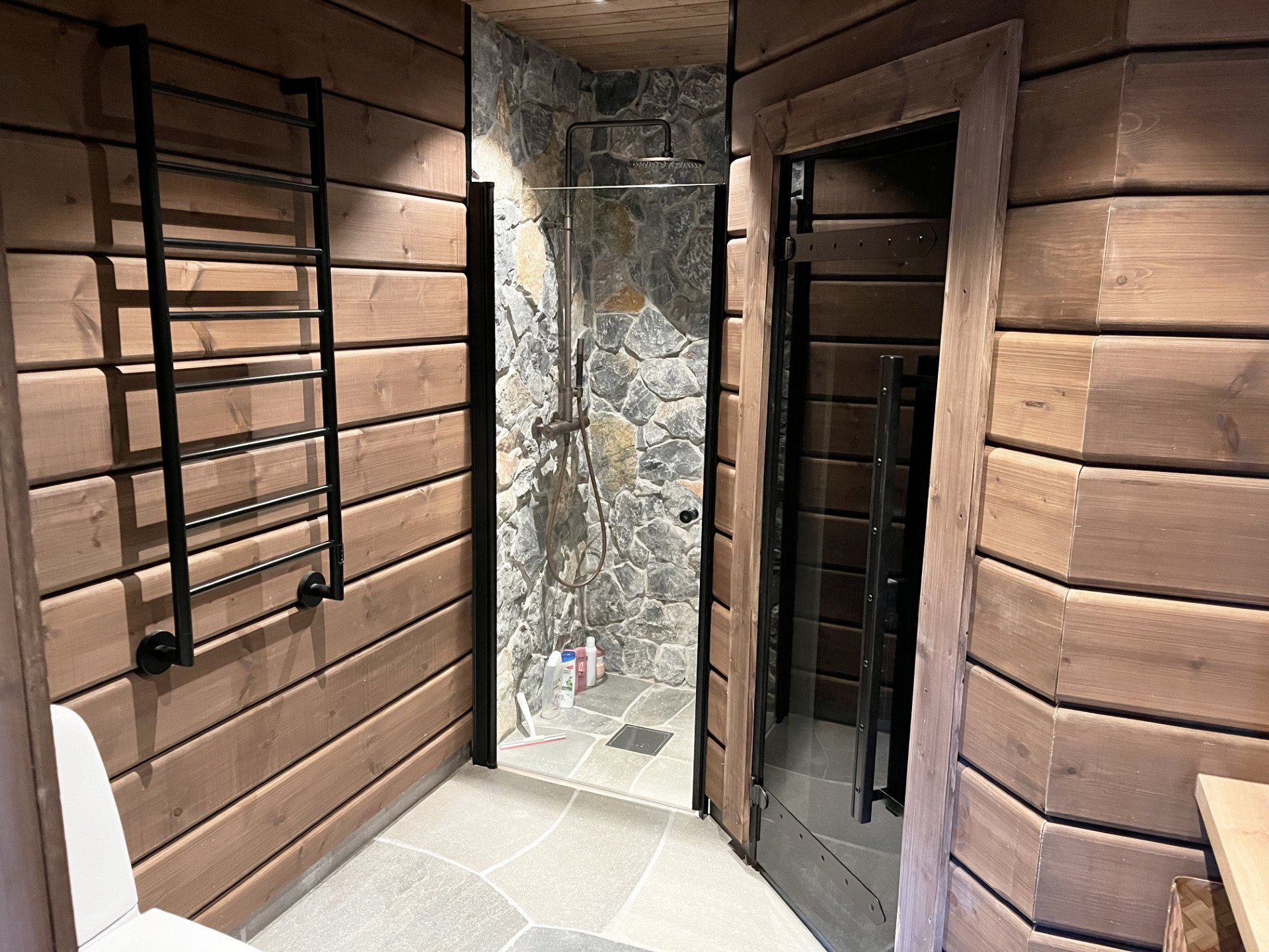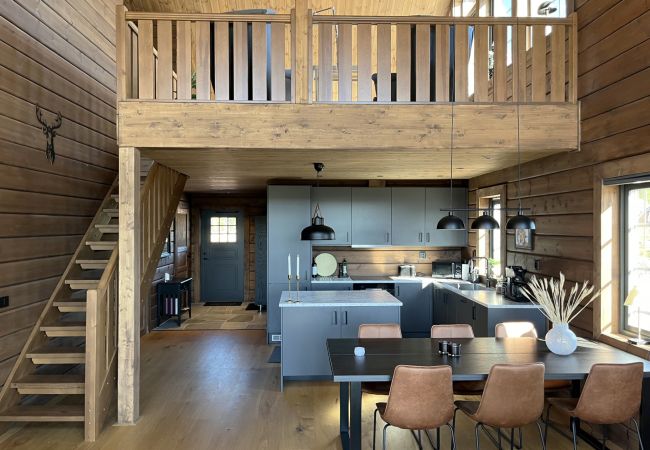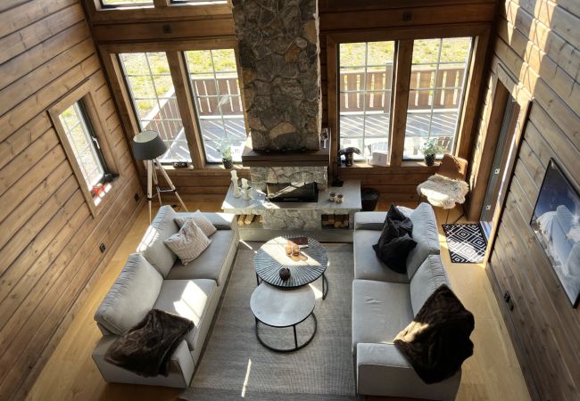Varglyan liegt auf der Bergseite in südwestlicher Lage mit weitem Blick über den Golfplatz und die Berggipfel. Hier können Sie das große Wohnzimmersofa vor dem Kamin mit 6 Meter Deckenhöhe und Panoramafenstern genießen. Die geräumige Kabine verfügt über einen durchdachten Grundriss. Die großen Sozialbereiche eignen sich perfekt für eine große Familie, eine Gruppe von Freunden oder zwei oder drei Familien, die problemlos Platz finden. Nach dem Abendessen verweilen die Erwachsenen in der Sofagruppe vor dem Kamin, während die Kinder/Jugendlichen oben Filme schauen und Spiele spielen. Die Hütte verfügt über vier Schlafzimmer mit insgesamt 11 Betten, Doppelbadezimmer, Sauna, große Hütte, einen wohl proportionierten Gemeinschaftsraum im Obergeschoss und ein Homeoffice mit Aussicht. Es gibt Abstellmöglichkeiten für Skier und Golftaschen.