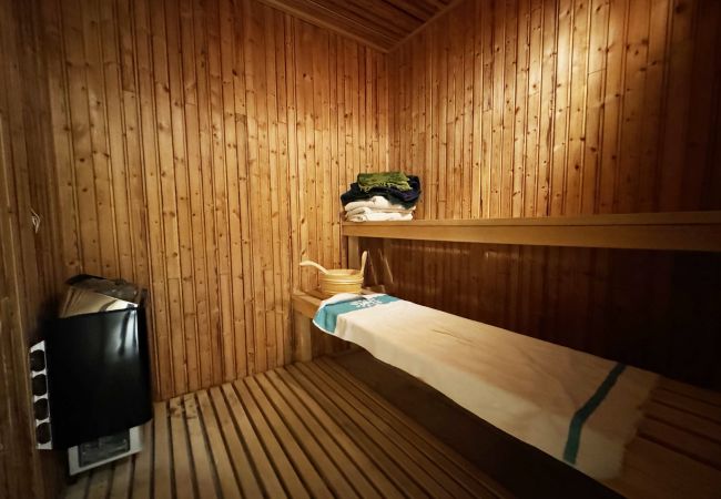 Das große, komplett geflieste Badezimmer ist mit einer modernen Dusche ausgestattet und bietet eine frische und entspannende Atmosphäre. Im Erdgeschoss finden Sie ein luxuriös eingerichtetes Familienzimmer, das zu geselligen Abenden und Unterhaltung einlädt. Hier gibt es einen Kamin, der eine warme und einladende Atmosphäre schafft, einen Billardtisch für spannende Spiele und ein Schlafsofa für zusätzliche Schlafplätze. Auf derselben Etage gibt es außerdem eine Sauna mit Dusche für entspannende Wellnessmomente und ein voll ausgestattetes Fitnessstudio für alle, die aktiv bleiben möchten.