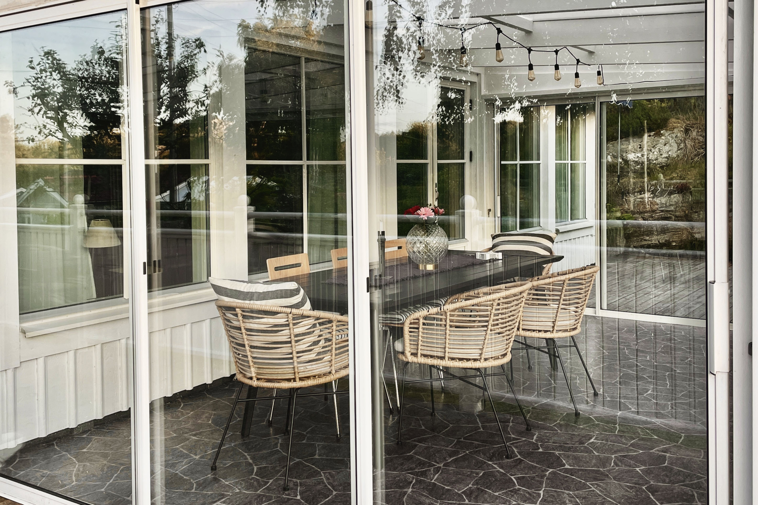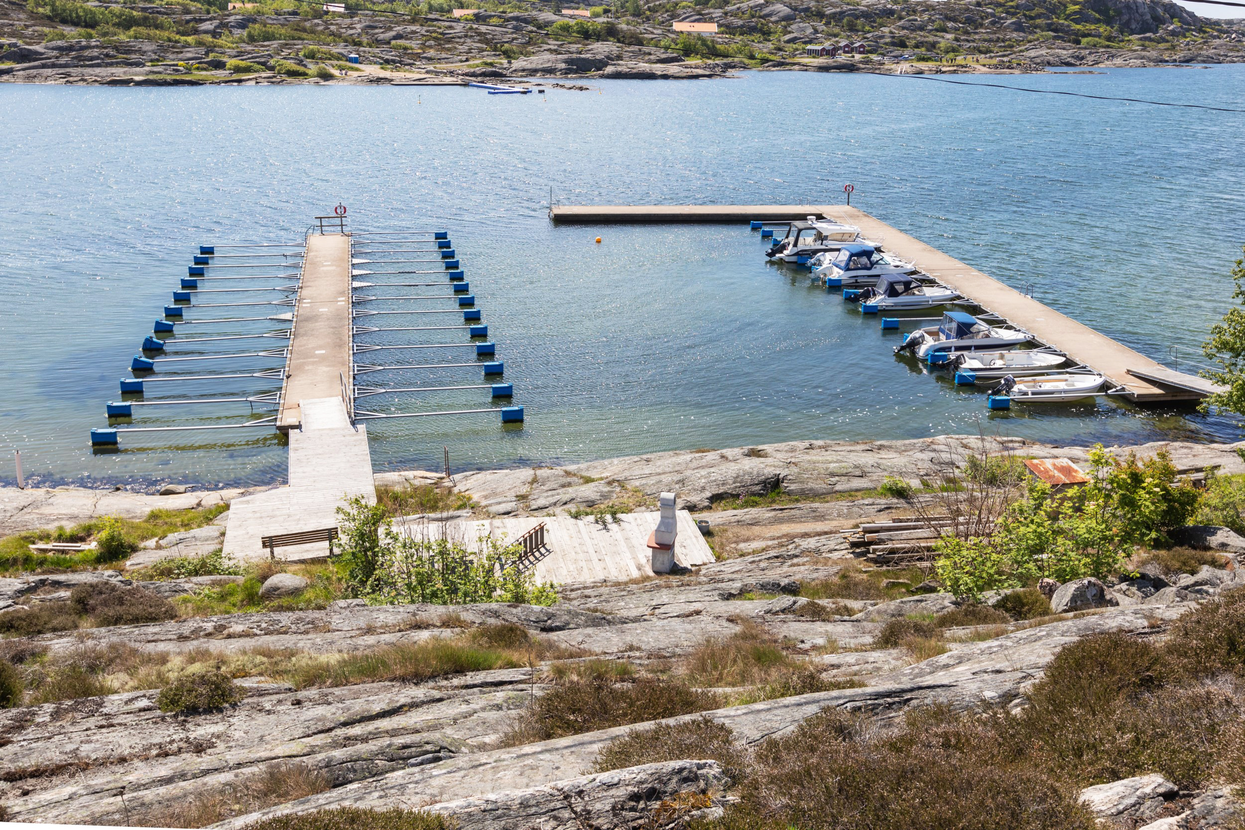 Willkommen in diesem großzügigen Ferienhaus im Süden von Bohuslän mit gutem Standard. Im ersten Stock befindet sich eine moderne, gut ausgestattete Küche mit großen Arbeitsflächen. Ein großes frisches Badezimmer, daneben eine Waschküche mit Waschmaschine und Tumbler. Hier befindet sich der Haupteingang mit direkter Verbindung zum Nebengebäude mit zwei bequemen Betten. Neben der Küche befindet sich das Familienzimmer mit edlen Möbeln und viel Tageslicht, hier gibt es einen Holzofen für schöne entspannte Abende vor dem Feuer. Von hier aus gelangen Sie auf die verglaste Terrasse mit Essbereich für die ganze Familie. Im Obergeschoss befindet sich das Hauptschlafzimmer mit einem luxuriösen Kingsize-Bett und einem fantastischen Blick auf die Klippen sowie ein Familienzimmer für 2-3 Personen. Im privaten Garten gibt es eine offene Terrasse, Gartenmöbel und Grill. Das Haus liegt am Ende der Straße in einer ruhigen Idylle umgeben von wunderschöner Natur und Bohus-Granit. Auf den Felsen, die dem Weihnachtsmann gehören, haben Sie einen fantastischen Blick auf die Umgebung mit zauberhaften Sonnenuntergängen. Ein kurzer Spaziergang führt Sie hinunter zum Badebereich für salziges Schwimmen und aufregende Angelausflüge.