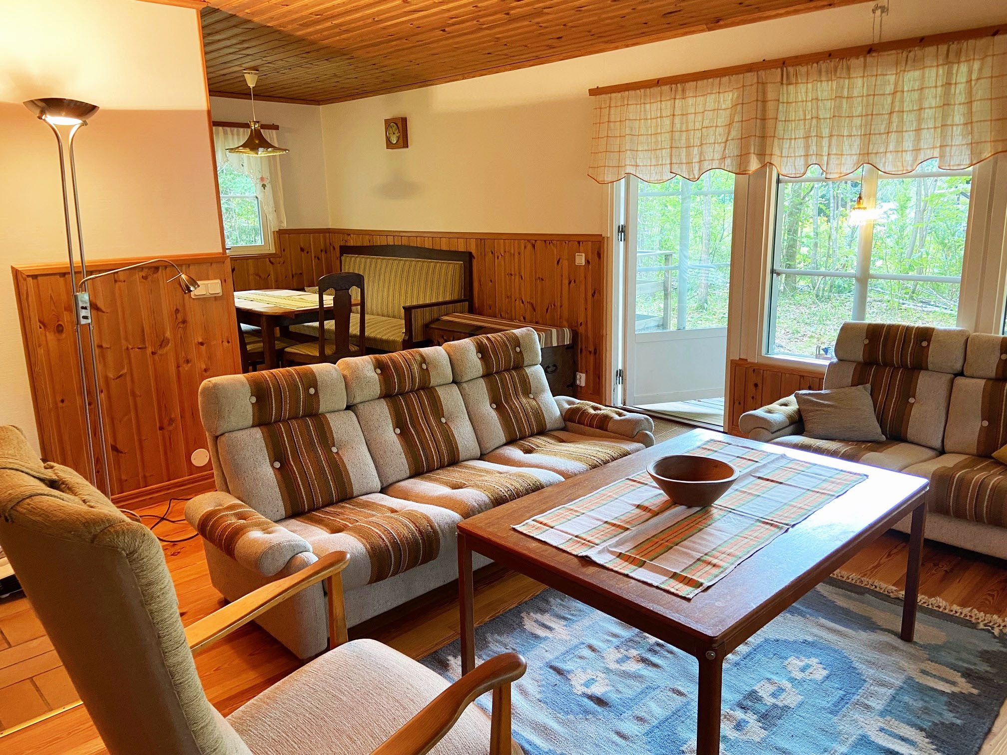 Die Unterkunft verfügt über eine große Terrasse rund um fast das gesamte Haus und ein großes Naturgrundstück, das teilweise vor Blicken geschützt ist und zum Verweilen einlädt. Sie liegt in grüner Lage mit Bademantelentfernung zu Flammabadet mit beheizten Pools, aber auch zu Lagan und seinen frischen Wildgewässern . Ein Badetag lässt sich in der hauseigenen Sauna zu einem wahrhaft angenehmen Erlebnis ausklingen.