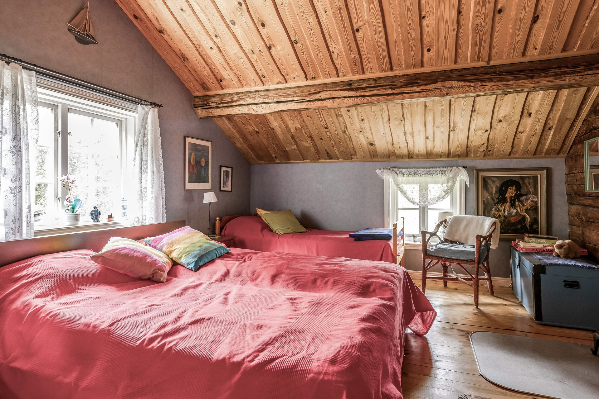 Das Haus ist gemütlich und abgelegen. Sie haben ein großes Garten-/Naturgrundstück von ca. 3000 m2 und in der Nähe von Wald und Land. Es verfügt über 2 Schlafzimmer mit insgesamt 7 Betten, davon 2 Doppelbetten und 2 Einzelbetten. Sie haben eine Sauna und einen Ruheraum im Haus.