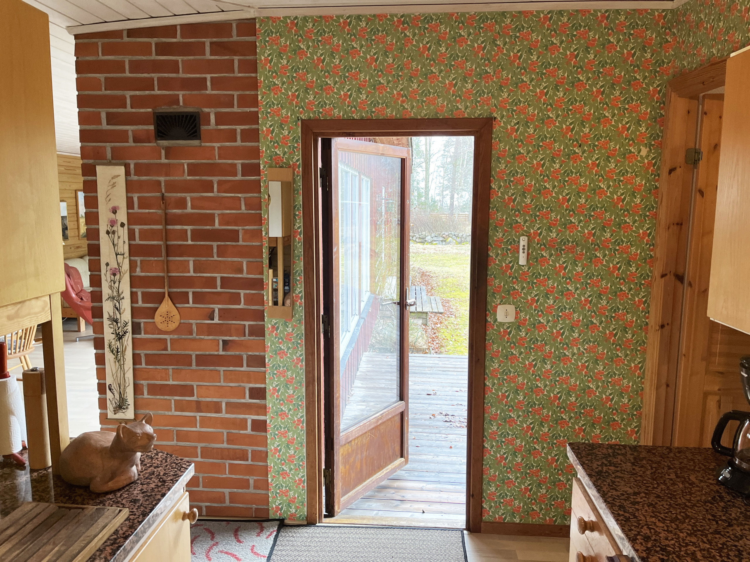 Sauna mit Dusche befindet sich in einem separaten Gebäude. Große Terrasse mit Wintergarten, wo Sie an Sommerabenden gut zu Abend essen und es sich vor dem Kamin gemütlich machen können. Es gibt auch einen Grill. Schönes, eingezäuntes Naturgrundstück mit Rasen. Gut erzogene Hunde sind willkommen. Ruhige und friedliche Umgebung mit Wiesen und Wäldern, wo Sie sowohl Beeren als auch Pilze pflücken können.