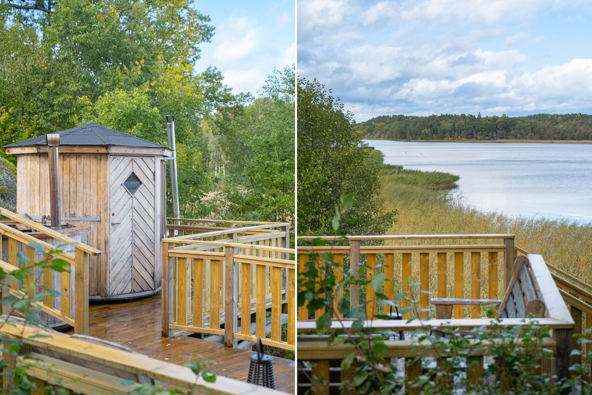 Hier gibt es Platz für bis zu 13 Personen, aufgeteilt auf 3 Schlafzimmer und eine Gästekabine mit 6 Betten. Sie verfügen über eine voll ausgestattete Küche mit Kühlschrank, Gefrierschrank und Geschirrspüler. Es gibt drei Fernseher, von denen einer mit einem Chromecast ausgestattet ist. Internet über Glasfaser ist im gesamten Ferienhaus verfügbar. Genießen Sie ein gutes Frühstück mit einem atemberaubenden Blick auf Mälaren, entweder drinnen im Essbereich oder draußen auf der großen Terrasse. Hier wohnen Sie nur einen Steinwurf vom Wasser zum Schwimmen und Angeln entfernt. Es gibt auch einen holzbefeuerte Sauna mit Seeblick.