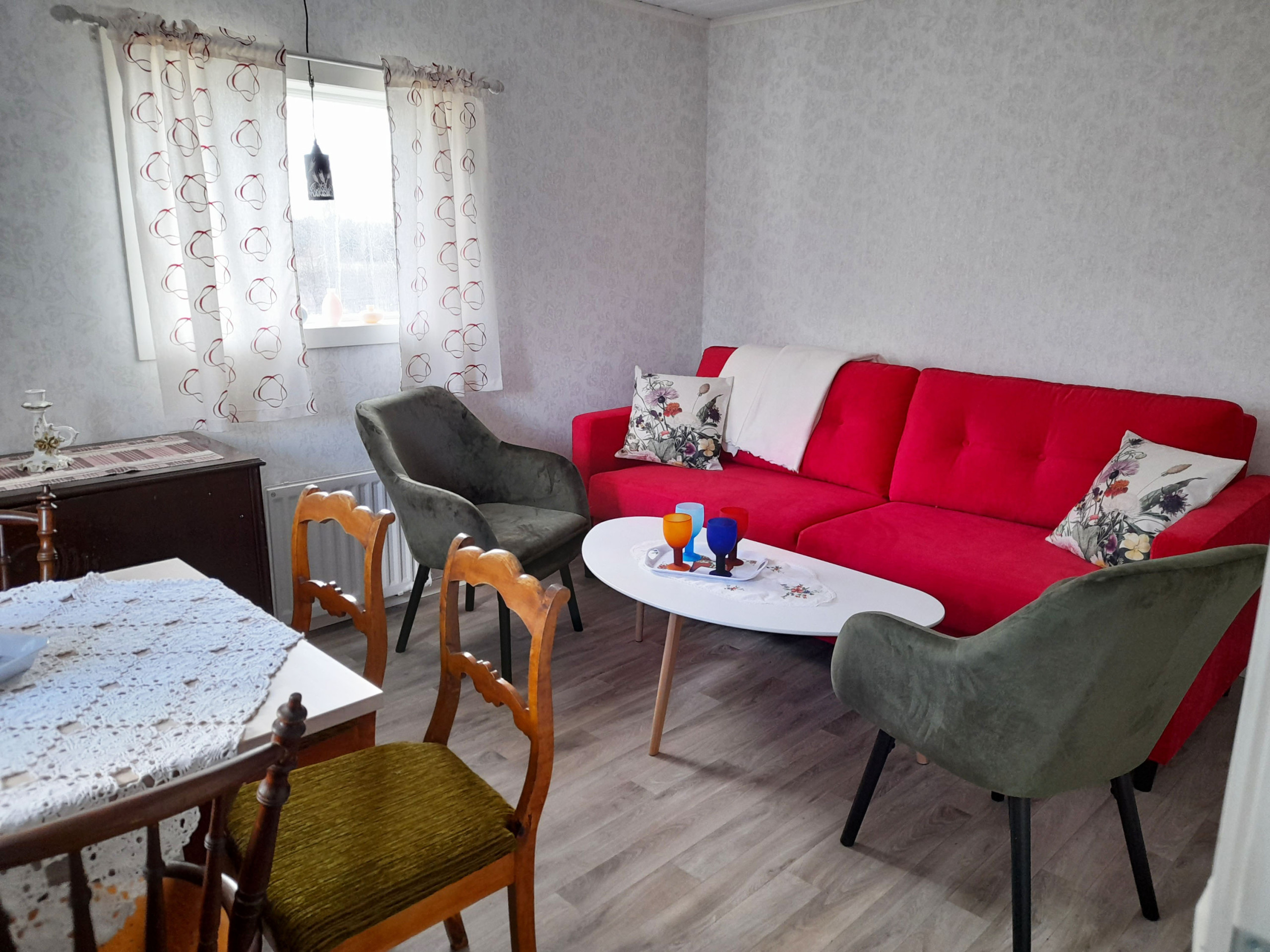 Willkommen in diesem schönen Haus in Oknö bei Mönsterås. Das Haus verfügt über Betten für bis zu 9 Personen, wovon 7 Betten bei Buchung im Mietpreis enthalten. Im großen Haus gibt es zwei Schlafzimmer mit je einem Doppelbett und zwei Etagenbetten sowie einem klappbaren Zustellbett. Ein zusätzliches Doppelbett gegen Gebühr kann bei Bedarf in der Hütte auf dem Gelände hinzugebucht werden. Komplette Küche mit neuem Herd, Backofen und Mikrowelle sowie neuem Kühl- und Gefrierschrank. Die Toilette ist klein, hat aber eine Dusche und eine Waschmaschine. Das Haus verfügt über einen funktionierenden Holzofen, WLAN und einen Smart-TV mit schwedischen Basiskanälen sowie Chromecast. Patios nach Osten und Westen, der westliche überdacht für mögliche Regentage. Auf dem Grundstück ist Platz für 1–3 Autos, davon eines im Carport. Der Eingang verfügt über eine Rampe für einen einfachen Zugang mit Rollstuhl oder Kinderwagen.