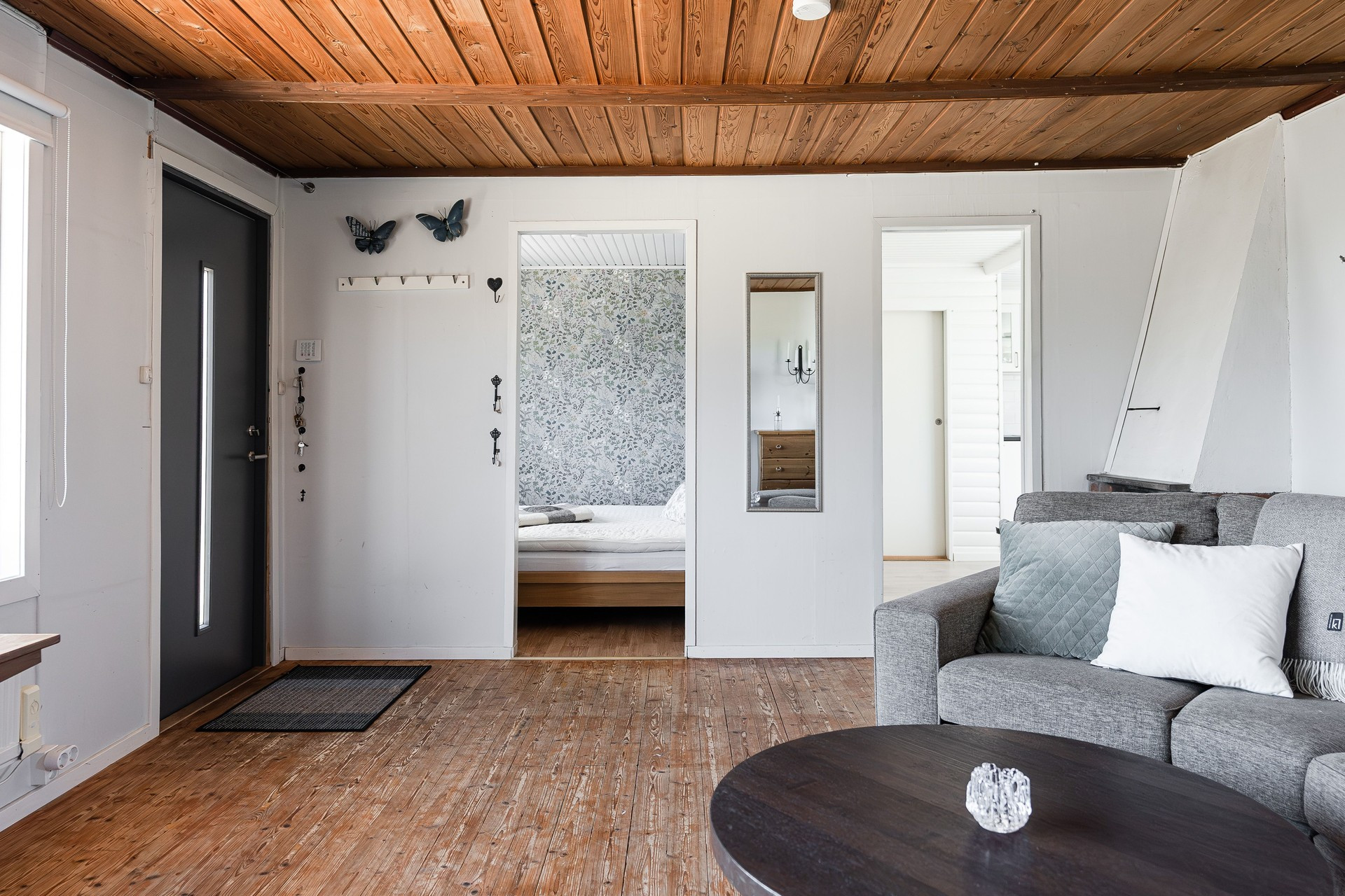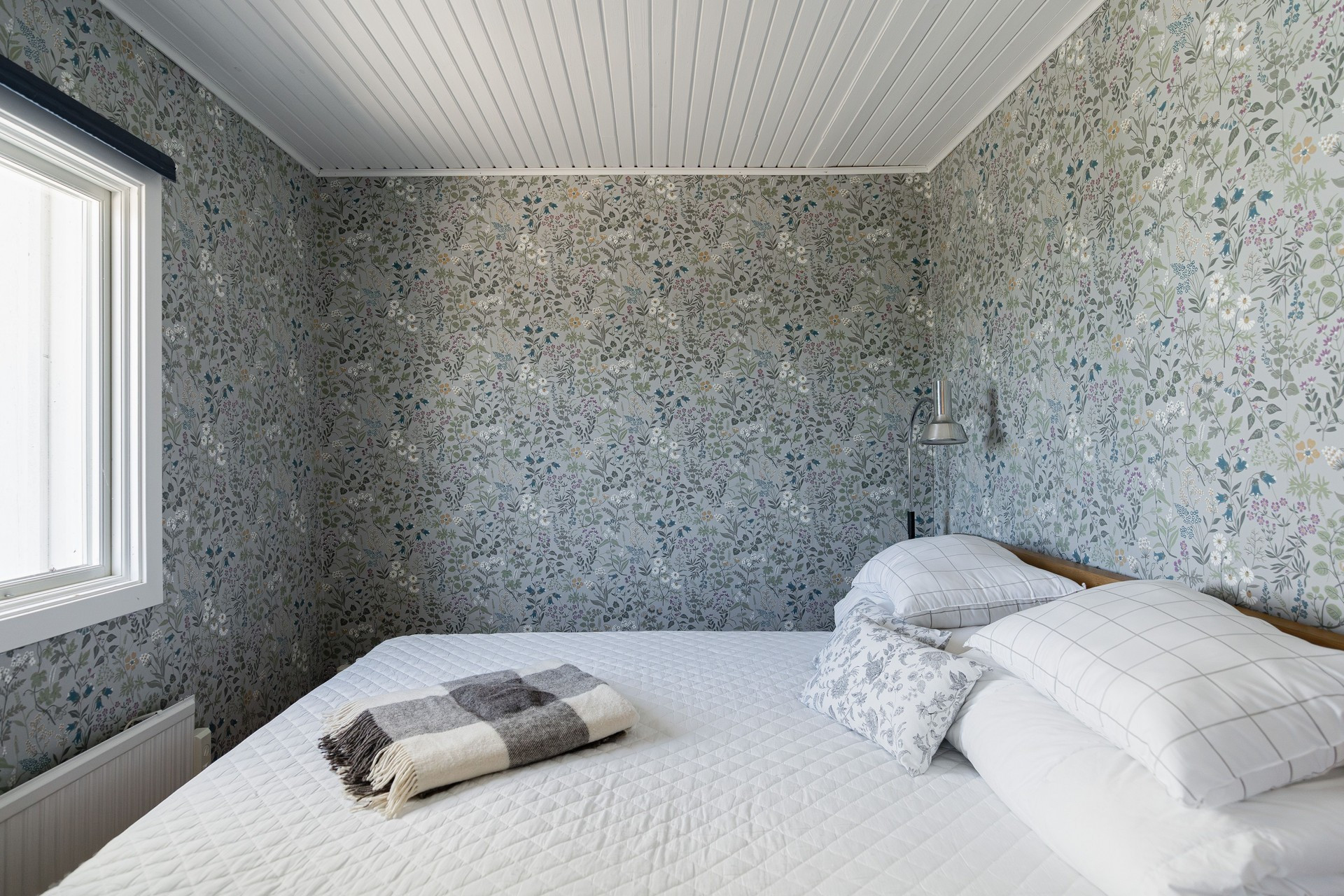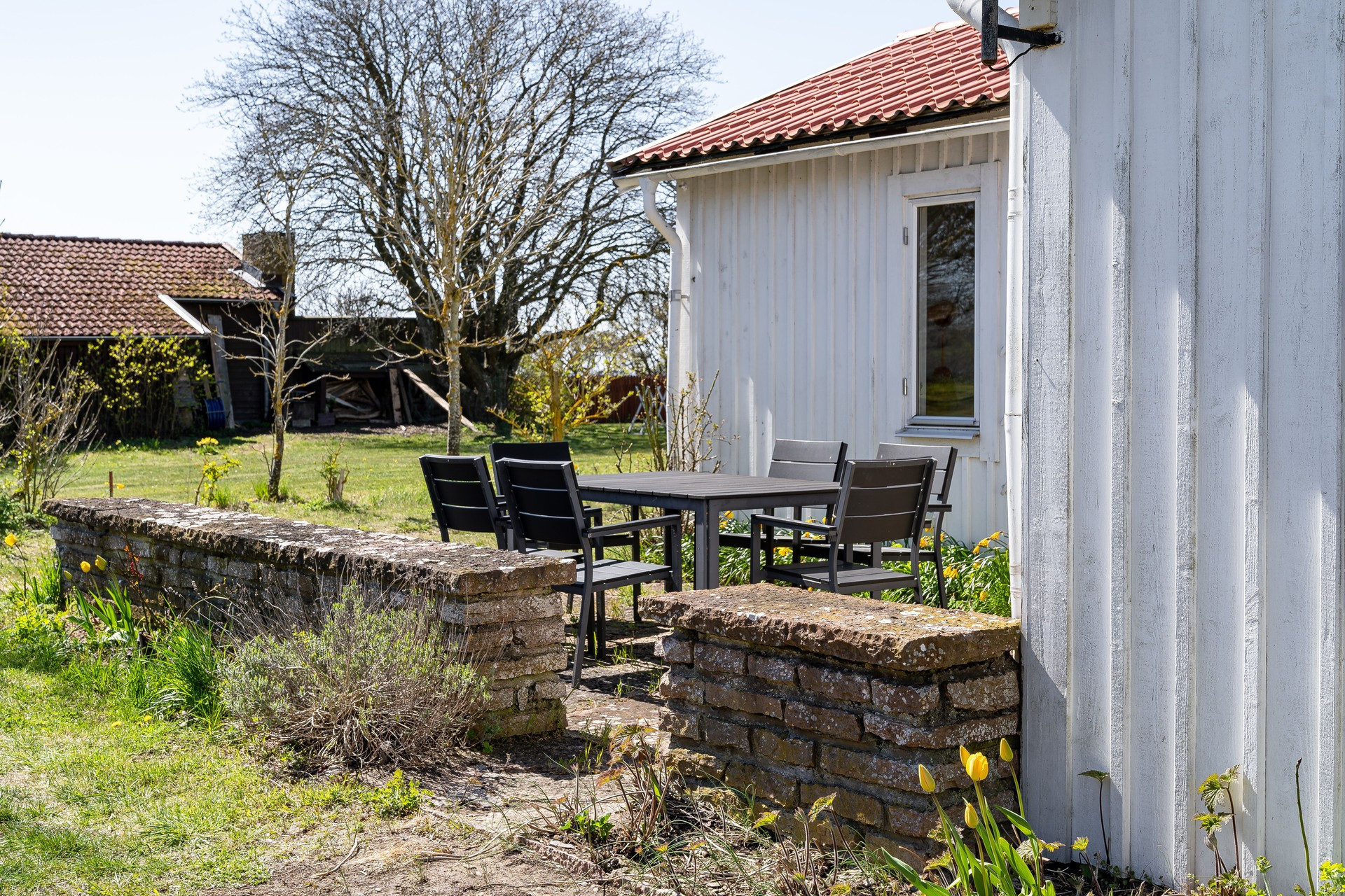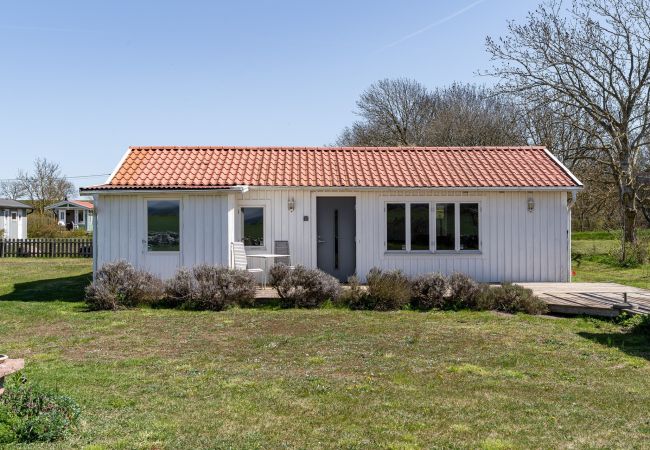 The cottage has a functional kitchen with a dining area by a window, where you can see the sea in the distance. From the kitchen you also come out to a small patio with a wall made of Ölandssten. In the living room you will find a sofa and next to it is one bedroom which has a bunk bed for teenagers. In the larger bedroom there is a double bed. If you want to relax outdoors, you will find a paved patio with an outdoor group at the end of the house. Here you can sit and look out over the sea in the distance and the grazing cows.
