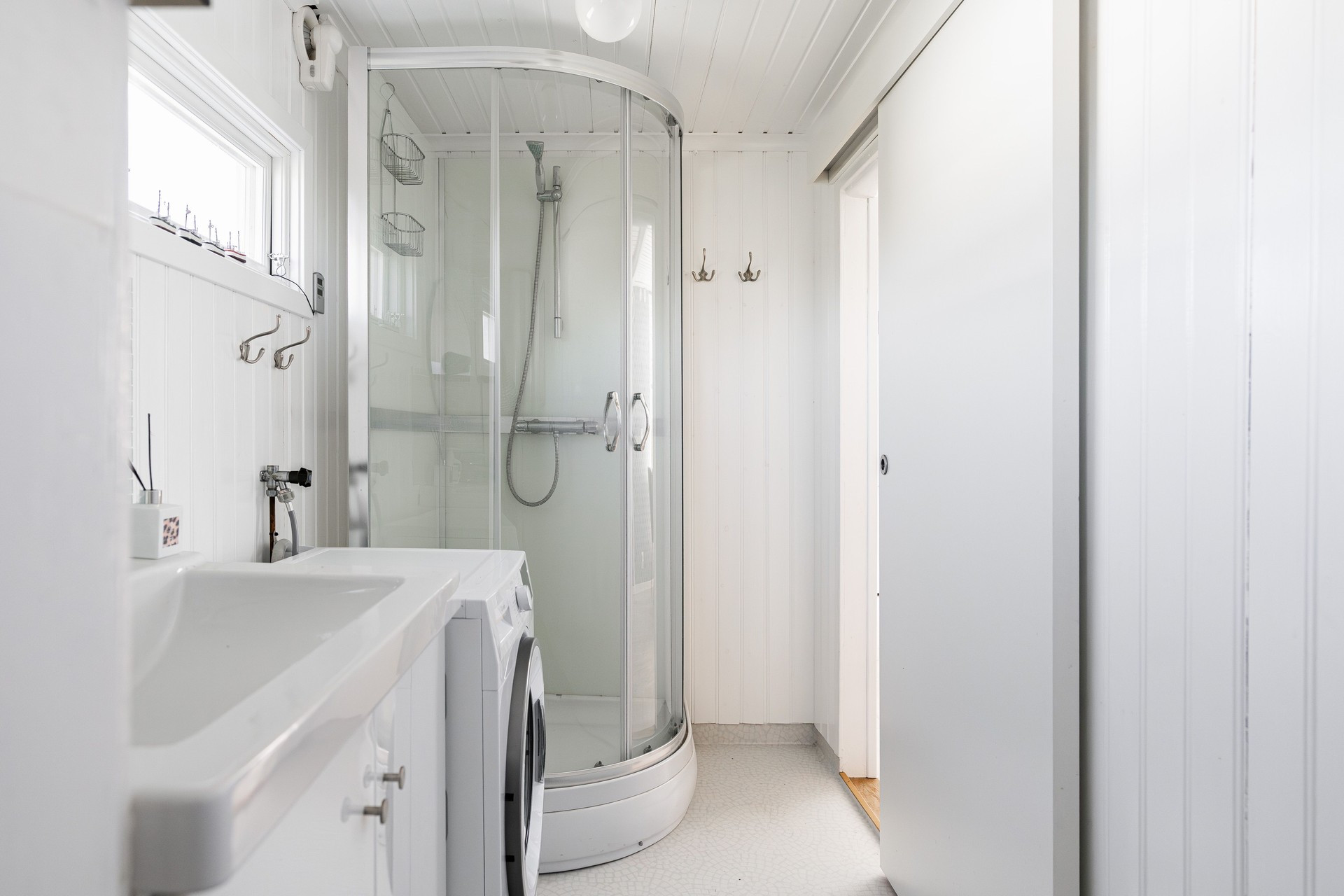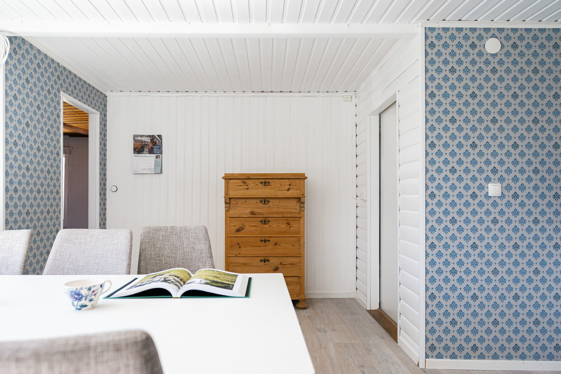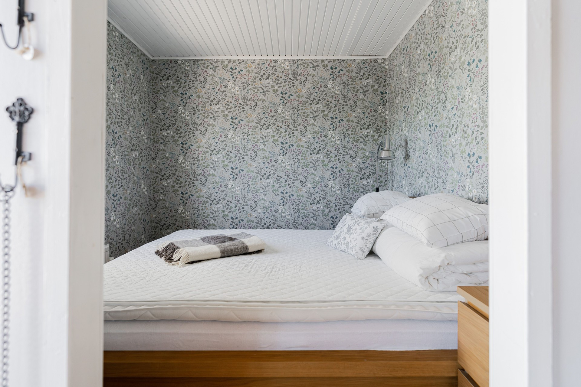 The cottage has a functional kitchen with a dining area by a window, where you can see the sea in the distance. From the kitchen you also come out to a small patio with a wall made of Ölandssten. In the living room you will find a sofa and next to it is one bedroom which has a bunk bed for teenagers. In the larger bedroom there is a double bed. If you want to relax outdoors, you will find a paved patio with an outdoor group at the end of the house. Here you can sit and look out over the sea in the distance and the grazing cows.