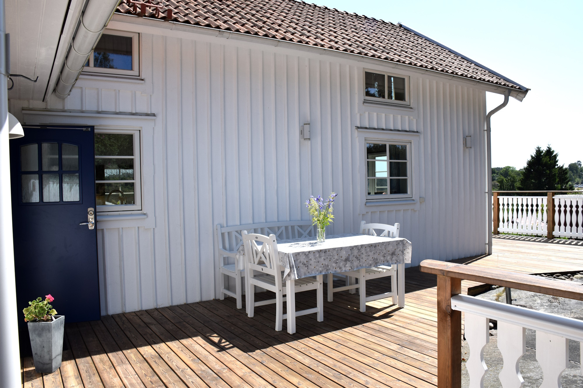 Die Küche ist vollständig für den Feriengebrauch ausgestattet – mit Herd, Ofen, Mikrowelle und guten Arbeitsflächen. Der Essbereich bietet ausreichend Platz für gemeinsame Mahlzeiten. Das Haus verfügt über ein WC und eine separate Dusche (Hinweis: Außendusche, siehe Foto) sowie mehrere Terrassen und Sitzbereiche, auf denen Sie die Sonne von morgens bis abends genießen können. Sie wohnen direkt am Wasser in einer der ruhigsten Gegenden Tjörns – perfekt für Familien, Naturliebhaber und alle, die eine friedliche Lage am Meer schätzen.