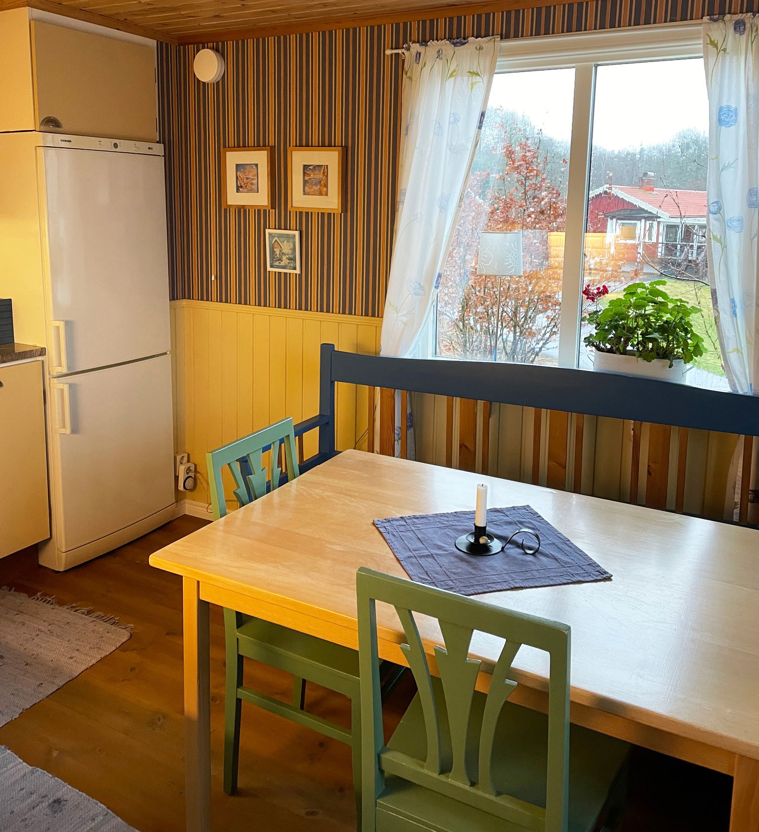 Willkommen in einem charmanten und gepflegten Ferienhaus in ländlicher Umgebung, nur wenige Minuten von Nösund auf der Insel Orust entfernt. Hier wohnen Sie in ruhiger, grüner Lage mit Vogelgezwitscher und Weiden, aber dennoch in der Nähe des Meeres und idyllischer Fischerdörfer. Das Haus verfügt über zwei Etagen und bietet Platz für bis zu fünf Personen. Im Erdgeschoss befinden sich eine voll ausgestattete Küche mit allen Annehmlichkeiten sowie ein Badezimmer mit Dusche, WC und Waschmaschine. Das Wohnzimmer ist mit Sofa, Sessel und Fernseher mit Basisprogrammen und Netflix eingerichtet.