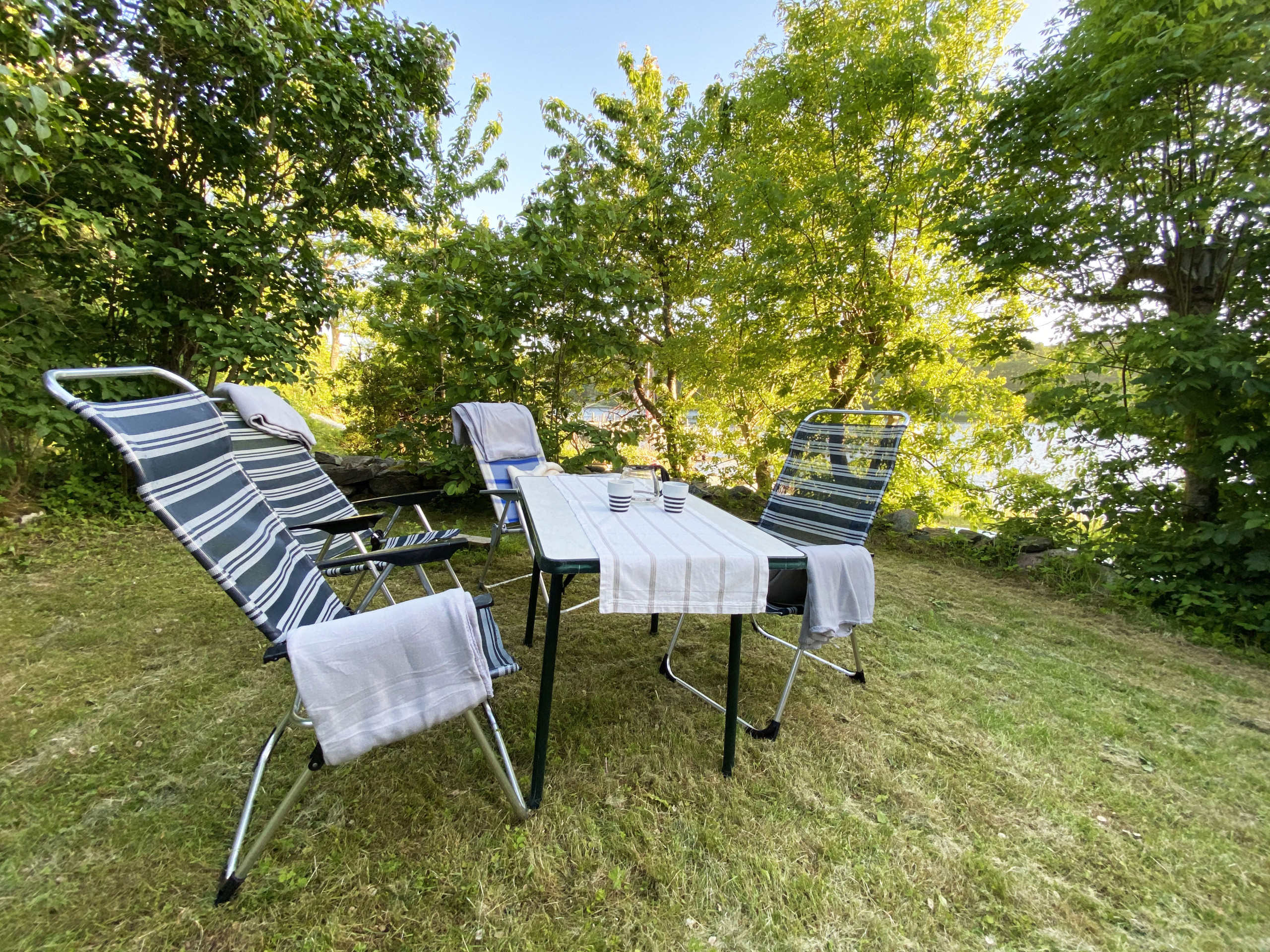 Hunde sind willkommen und der schöne Blick über die Bucht lädt zu einem Morgenkaffee in der Sonne und einem abendlichen Bad vom Steg ein.