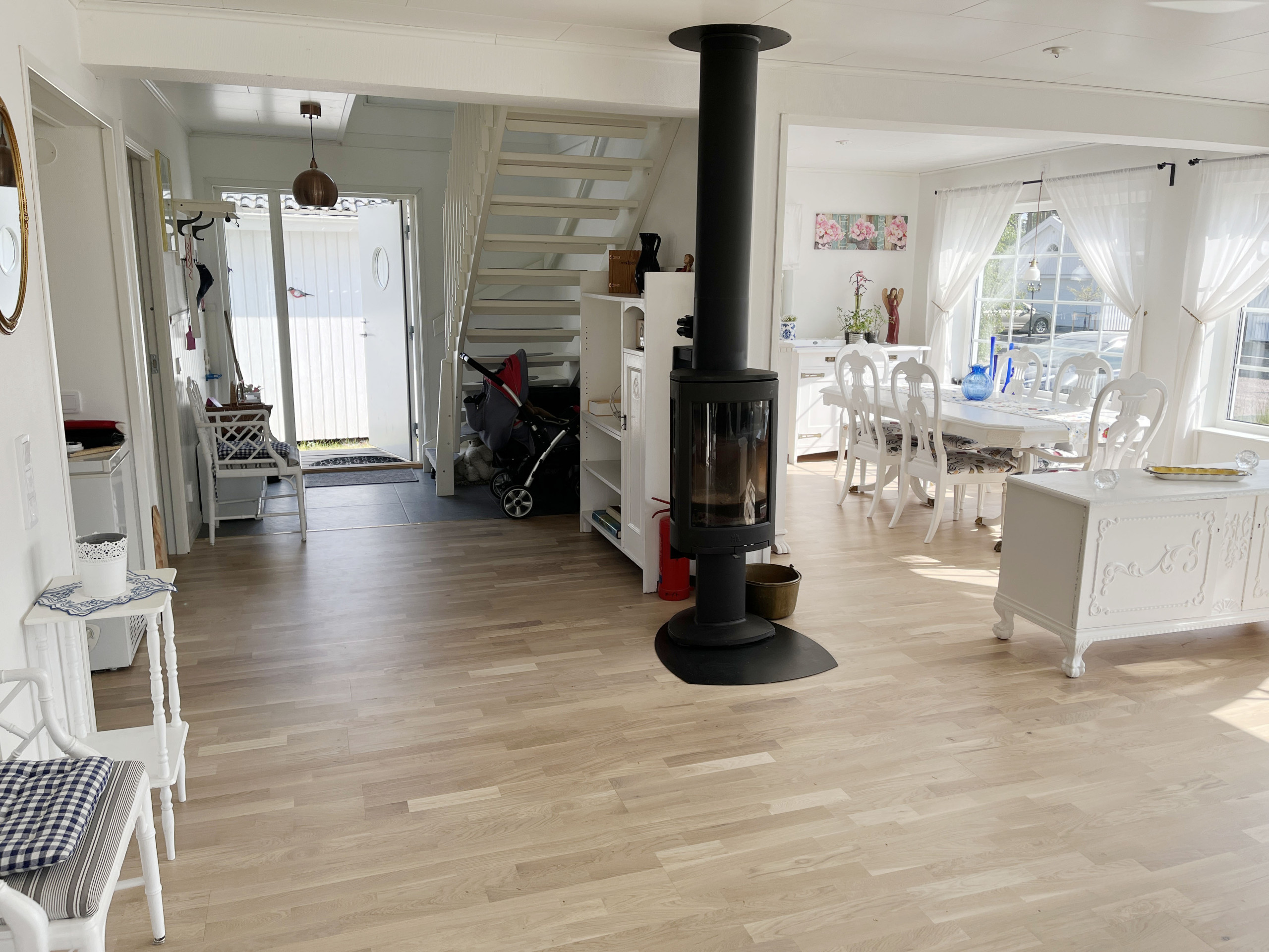 • Das Haus ist warm. Wenn geheizt werden muss, erfolgt dies über den Kaminofen.