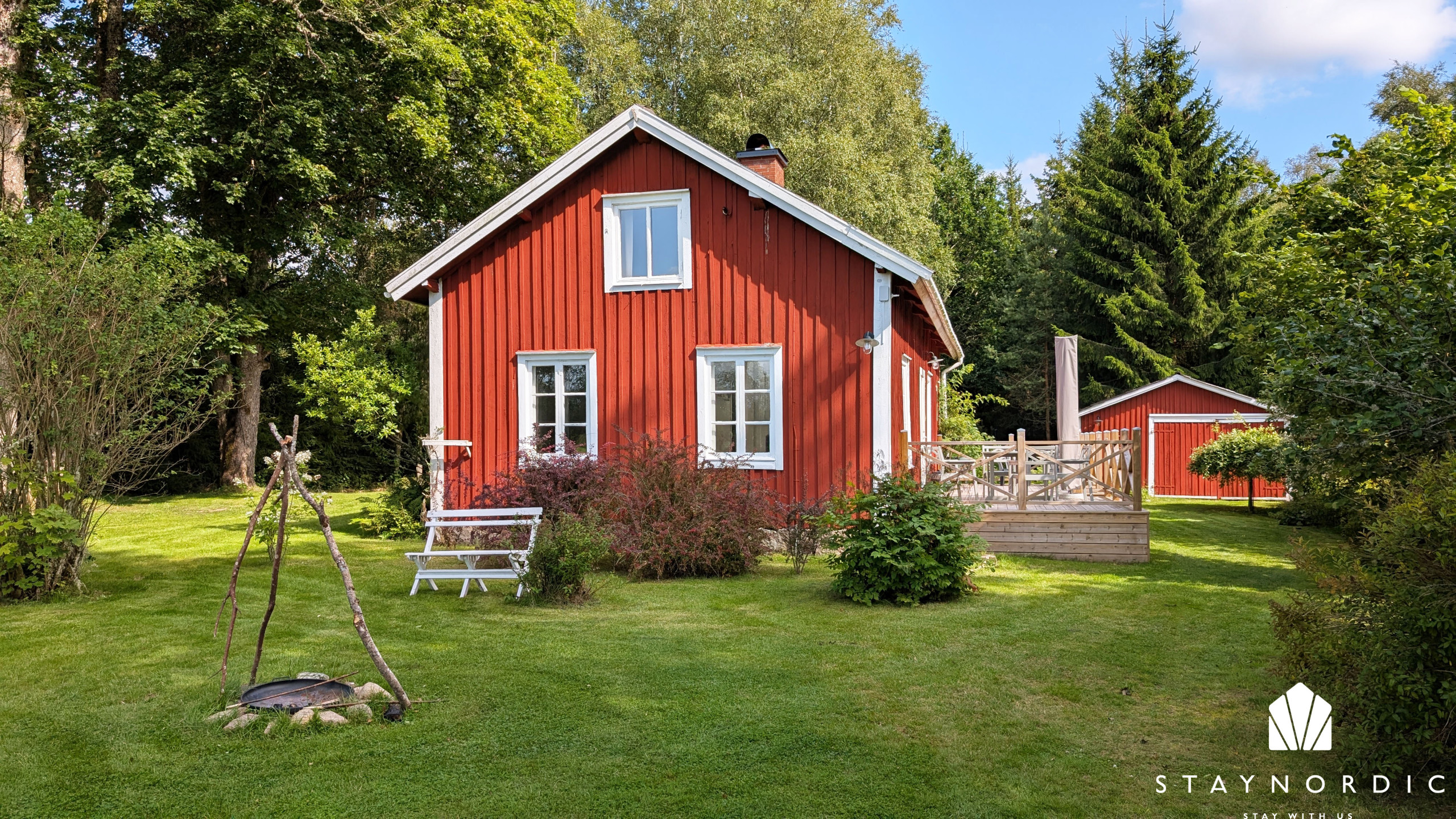 Das Ferienhaus in Mårarp ist ein authentisches rotes Haus aus dem Jahr 1929 und liegt in einer ruhigen Landschaft zwischen Ljungby und Växjö. Hier erwartet Sie eine warme und persönliche Atmosphäre, in der das Alte bewahrt wurde, während wichtige Teile behutsam renoviert wurden. Das Haus bietet eine neuere Küche und ein Badezimmer sowie aufgefrischte Oberflächen, behält jedoch seinen ursprünglichen Grundriss und Charme. Die Unterkunft eignet sich perfekt für Familien oder Gruppen, die Ruhe, Natur und ein echtes schwedisches Ferienhauserlebnis suchen. Es gibt Platz für bis zu 4 Personen, verteilt auf zwei Schlafzimmer, davon ein offenes, loftähnliches Schlafzimmer mit Doppelbett sowie ein separates Schlafzimmer mit zwei Einzelbetten und einem Kinderbett. Das Wohnzimmer lädt mit Sofa, Sessel und TV zum Entspannen ein, während das Esszimmer Platz für gemeinsame Mahlzeiten und Spieleabende bietet. Die Küche ist vollständig ausgestattet für einfache Mahlzeiten und zum Backen. Ein zusätzliches Wohnzimmer mit Zugang zum Garten schafft einen natürlichen Treffpunkt für Kinder und Erwachsene. Der große Garten und der angrenzende Wald bieten viel Platz zum Spielen und Entdecken. Außerdem gibt es einen Spielplatz, Gartenmöbel, Grill und Möglichkeiten für Aktivitäten wie Kubb und Radfahren. Bitte beachten Sie, dass das Wasser im Haus Eisen enthält, was ihm eine bräunliche Farbe verleiht. Es ist völlig sicher zum Duschen und Abwaschen, jedoch wird empfohlen, Trinkwasser mitzubringen oder zu kaufen.
