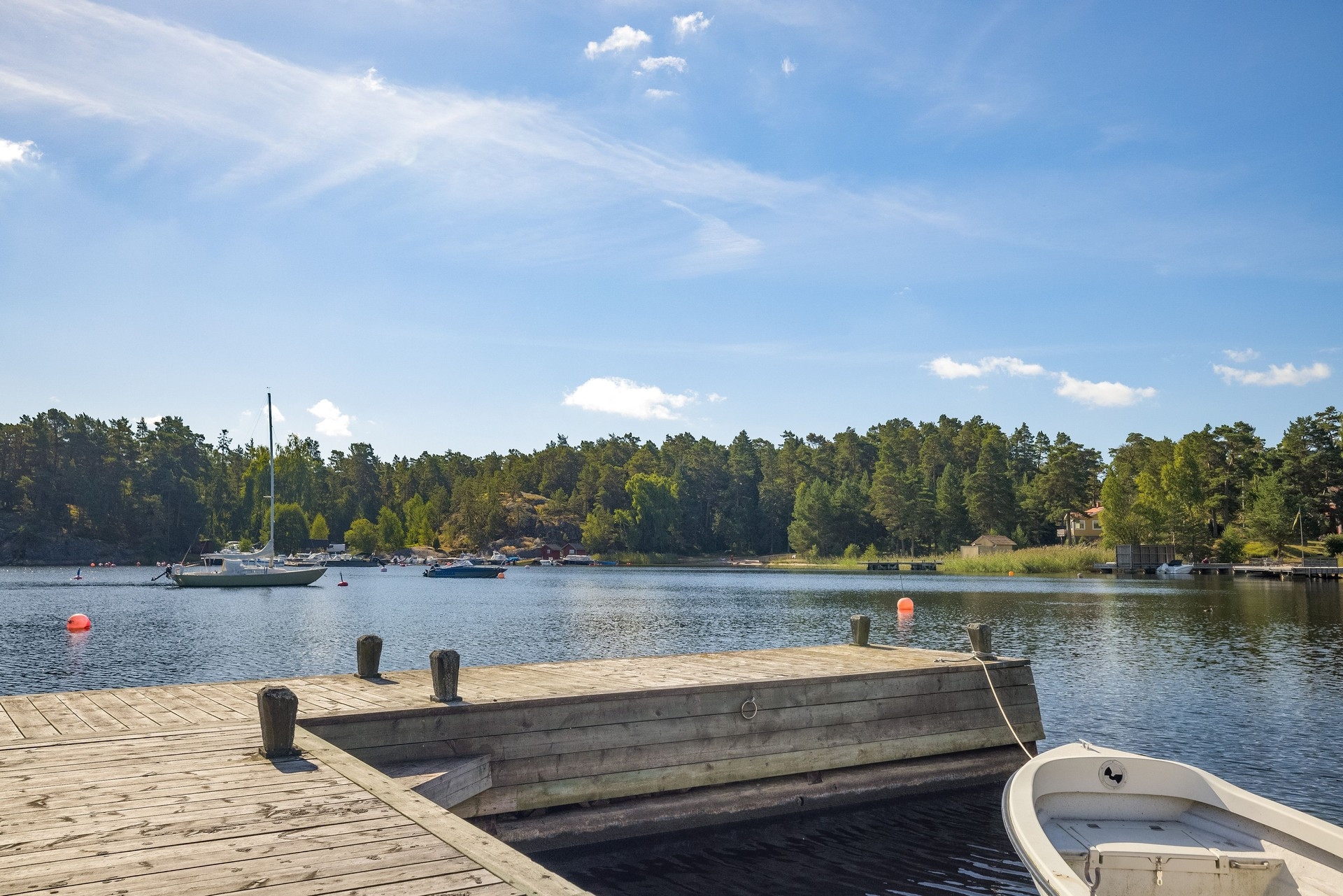 Sie haben Ihren eigenen Privatstrand mit zugehörigem Pier am Haus, was es schwer vorstellbar macht, dass Sie das Haus verlassen möchten. Aber wenn Sie möchten, gibt es hier viel zu entdecken! Da ist zum Beispiel das Naturschwimmbad Östersjöviken mit großem Strand und Bootssteg, dann gibt es auch Stavsnäs Natur- und Kulturpfade für diejenigen, die raus in die schwedische Natur wollen. Die Djurö-Kirche aus dem 17. Jahrhundert ist die älteste Kapelle im gesamten Stockholmer Schärengarten und nur 6 km entfernt! Gleich daneben befindet sich auch ein uralter Wald, der mehrere Jahrhunderte lang nicht gefällt wurde und eine Umgebung voller Leben geschaffen hat. Nur wenige Minuten vom Haus entfernt befindet sich auch das Restaurant Syrrornas gröna. Ein weiteres Restaurant in der Nähe ist das Skärgårdskrogen Sjöboden, wo Sie Spa-Behandlungen buchen können.
