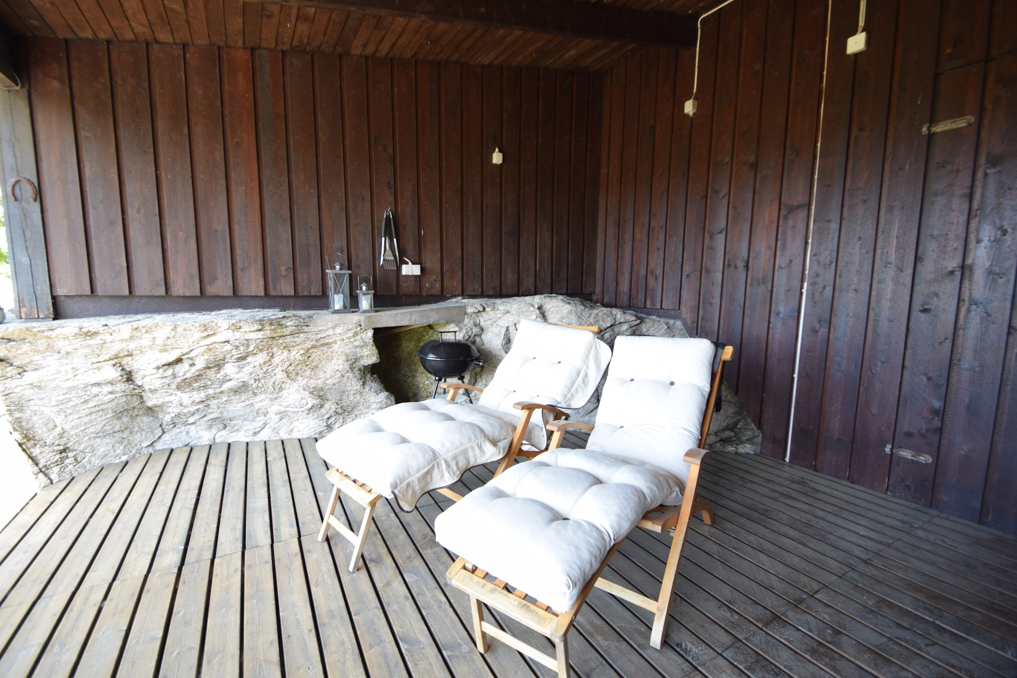 Willkommen in diesem charmanten, architektonisch gestalteten Ferienhaus auf einem Hügel – mit wunderschönem Meerblick und der Natur direkt vor der Tür. Das Haus liegt völlig privat am Ende einer Sackgasse, umgeben von Wald und Felsen, wo manchmal Elche und Rehe vorbeiziehen.