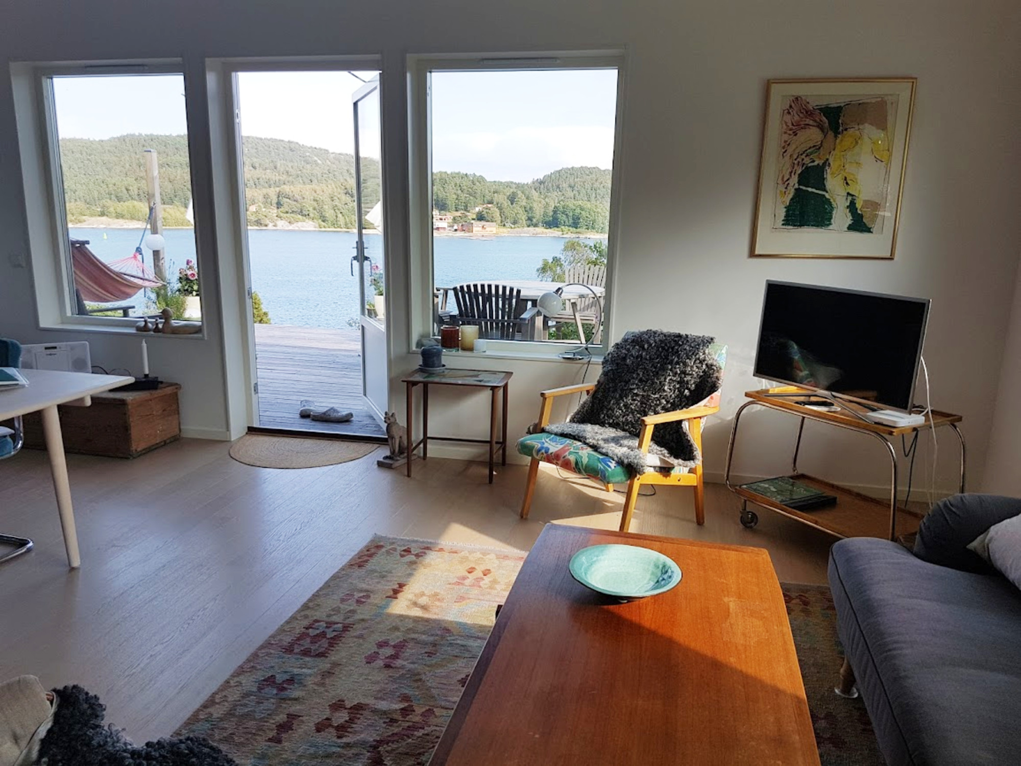 Willkommen in einem wunderschönen Ferienhaus in Svanesund auf der Insel Orust, mit herrlichem Meerblick und nur 100 Meter bis zum Sandstrand und Steg. Hier wohnen Sie komfortabel mit Platz für bis zu 4 Erwachsene und 1 Kind, in einem hellen und geschmackvoll eingerichteten Haus. Die gut ausgestattete Küche verfügt über Herd, Backofen, Dunstabzug, Kühl- und Gefrierschrank sowie Geschirrspüler. Im Wohnzimmer gibt es einen Esstisch, einen Kamin, eine Sofagruppe und einen Smart-TV mit Glasfaseranschluss. Das Haus verfügt über drei Schlafzimmer – eines mit Doppelbett (140 cm) und zwei mit Betten à 120 cm. Es gibt zwei Badezimmer, eines mit Dusche, Badewanne und WC und eines mit WC, Waschbecken und Waschmaschine. Mehrere Terrassen und Sitzplätze laden dazu ein, Sonne und Aussicht zu genießen. Auf der Rückseite befindet sich eine Terrasse mit Blick auf das Meer, perfekt für Grillabende im Sonnenuntergang.