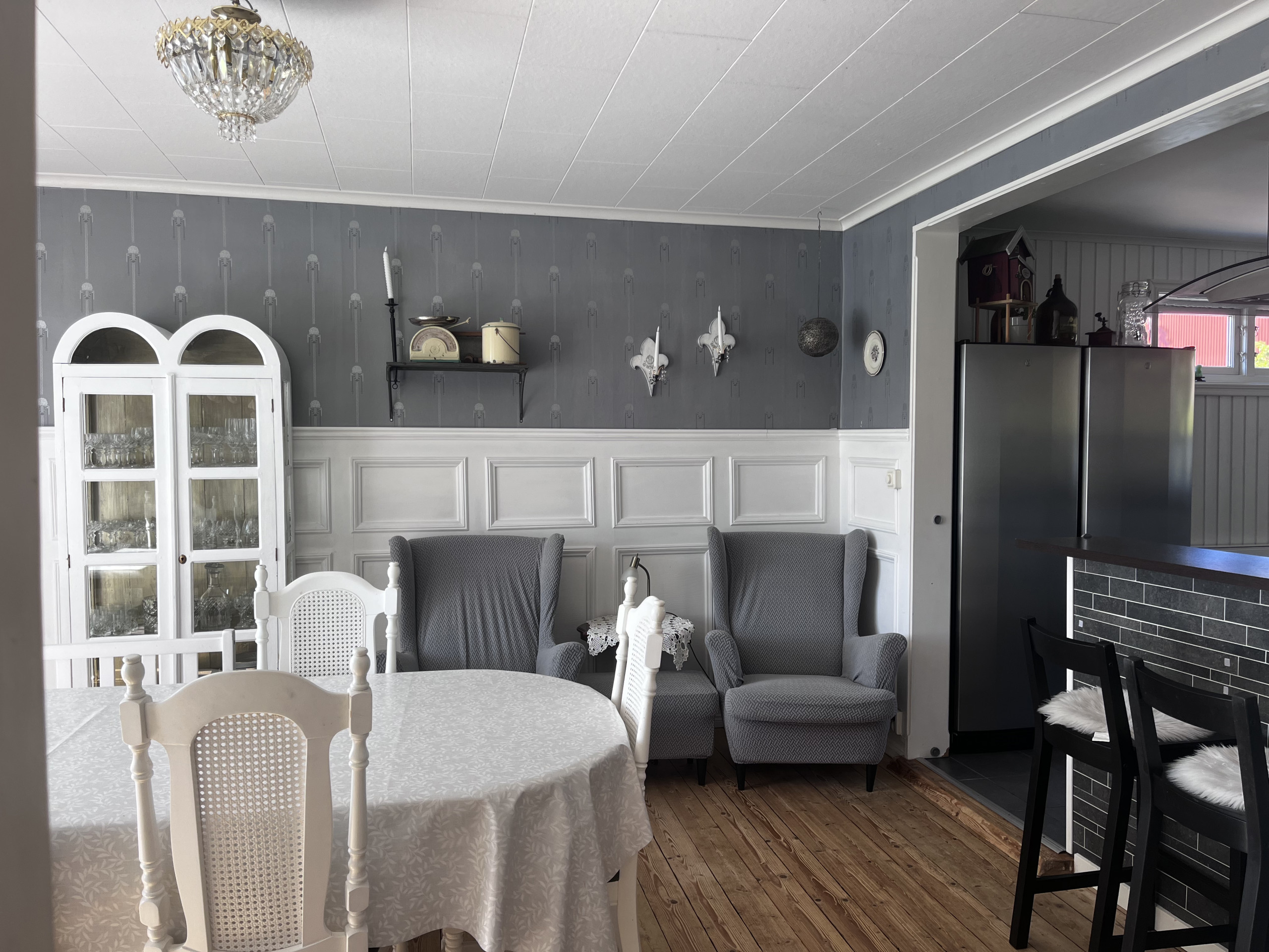 Willkommen in Sjölunda, einem charmanten und großzügigen Haus mit 17 Betten, ideal für große Familien oder mehrere befreundete Gruppen. Das Haus wurde 1901 erbaut und strahlt klassischen schwedischen Landhauscharme aus – mit Kachelöfen, Holzböden und liebevollen Details – ein echtes „Madicken-Haus“ in idyllischer Lage auf Orust. Das Haus bietet viel Platz zum Entspannen und Zusammensein, sowohl innen als auch draußen. Auf zwei Etagen gibt es sieben Schlafzimmer, drei Toiletten, ein Bad und eine Dusche. Die Küche ist komplett ausgestattet, und im Esszimmer finden 10–12 Personen Platz. Mehrere Wohnzimmer verfügen über Fernseher mit Chromecast, und WLAN steht im gesamten Haus zur Verfügung. Im Garten erwartet Sie ein beheizter Aufstellpool – perfekt für warme Sommertage – sowie Schaukeln, Rutsche, Spielhaus, Gartenmöbel und sowohl ein Kohle- als auch ein Gasgrill. Das eingezäunte Grundstück bietet viel Platz zum Spielen für Kinder. Von der Terrasse genießen Sie einen herrlichen Blick über Wiesen, Wälder und den See Kollungeröd – pure Entspannung inmitten der Natur.