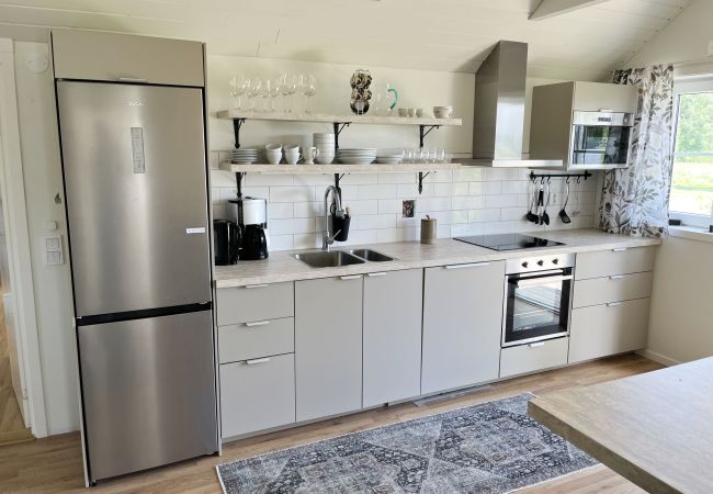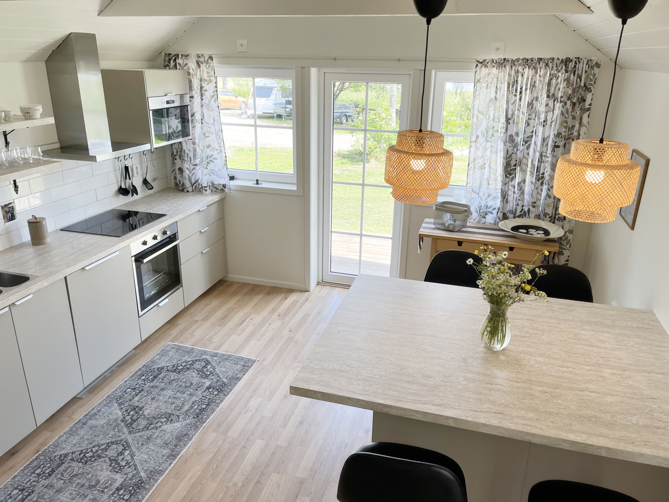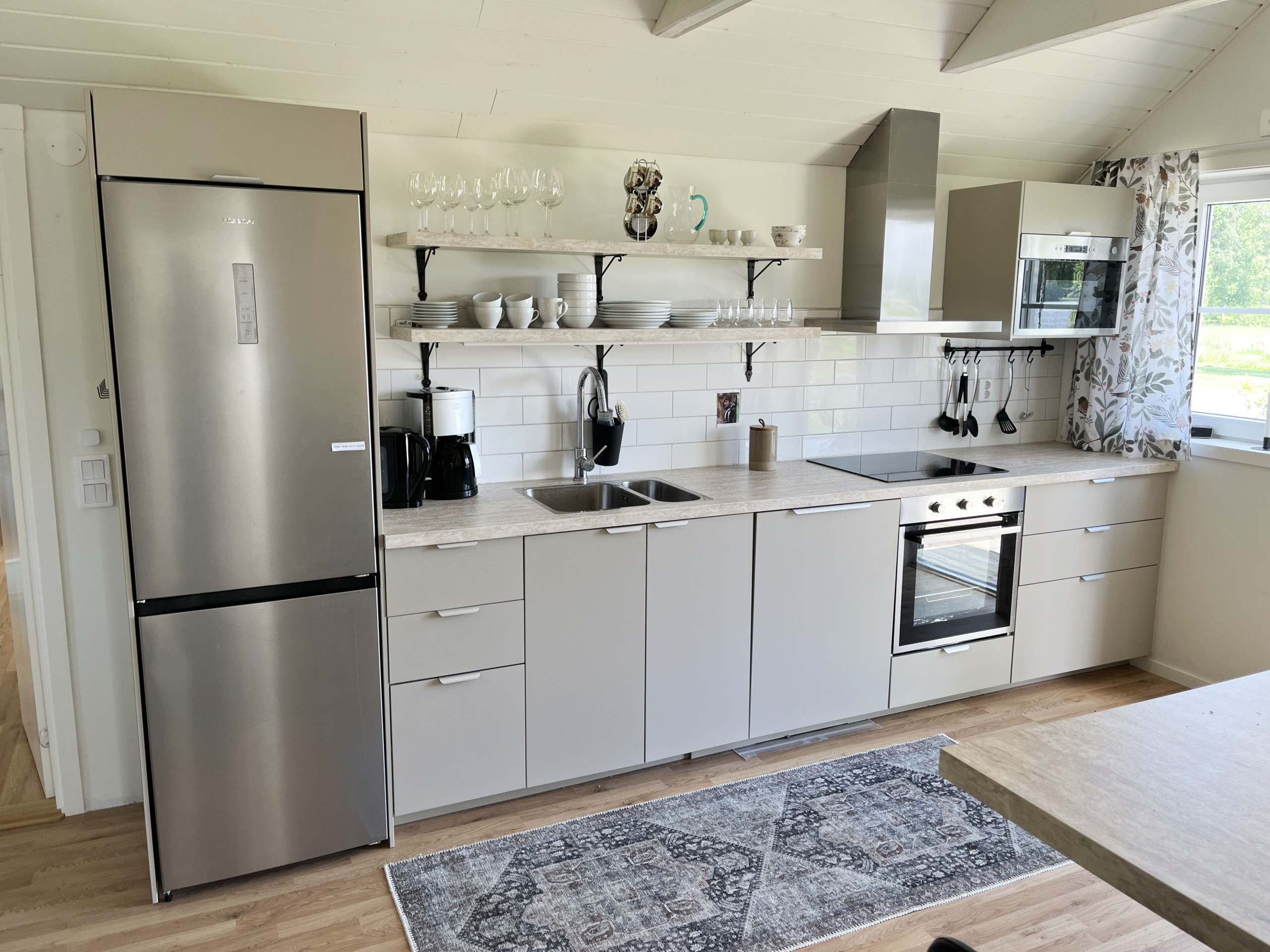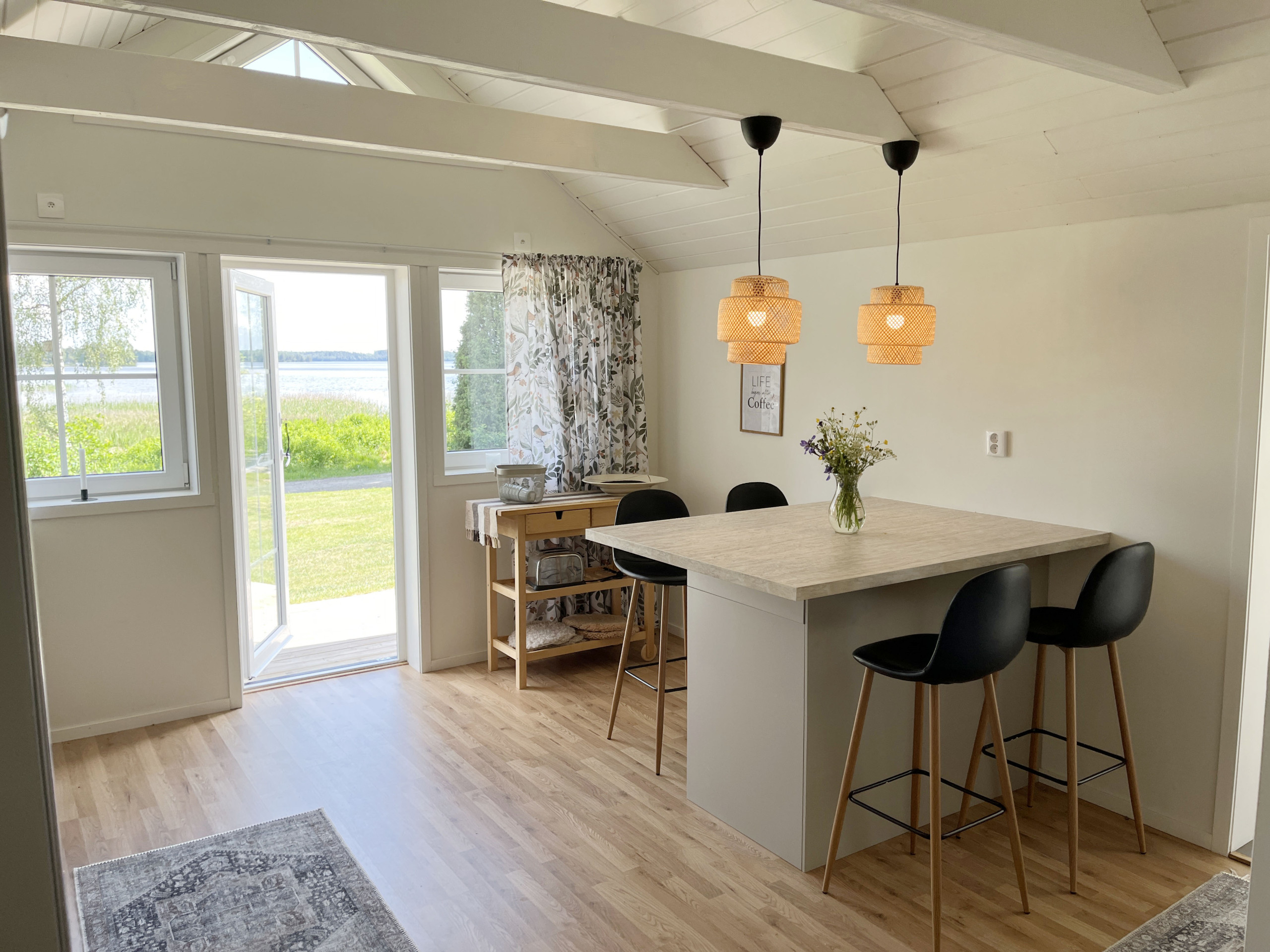 Das Haus ist komfortabel und bestens ausgestattet für einen erholsamen Aufenthalt. Im Wohnzimmer gibt es ein gemütliches Schlafsofa, und die verglaste Veranda bietet einen herrlichen Blick auf den See. Die voll ausgestattete Küche bietet Platz für gemeinsame Mahlzeiten und direkten Zugang zu einer großzügigen Terrasse, auf der Sie die frische Luft und die Natur genießen können.