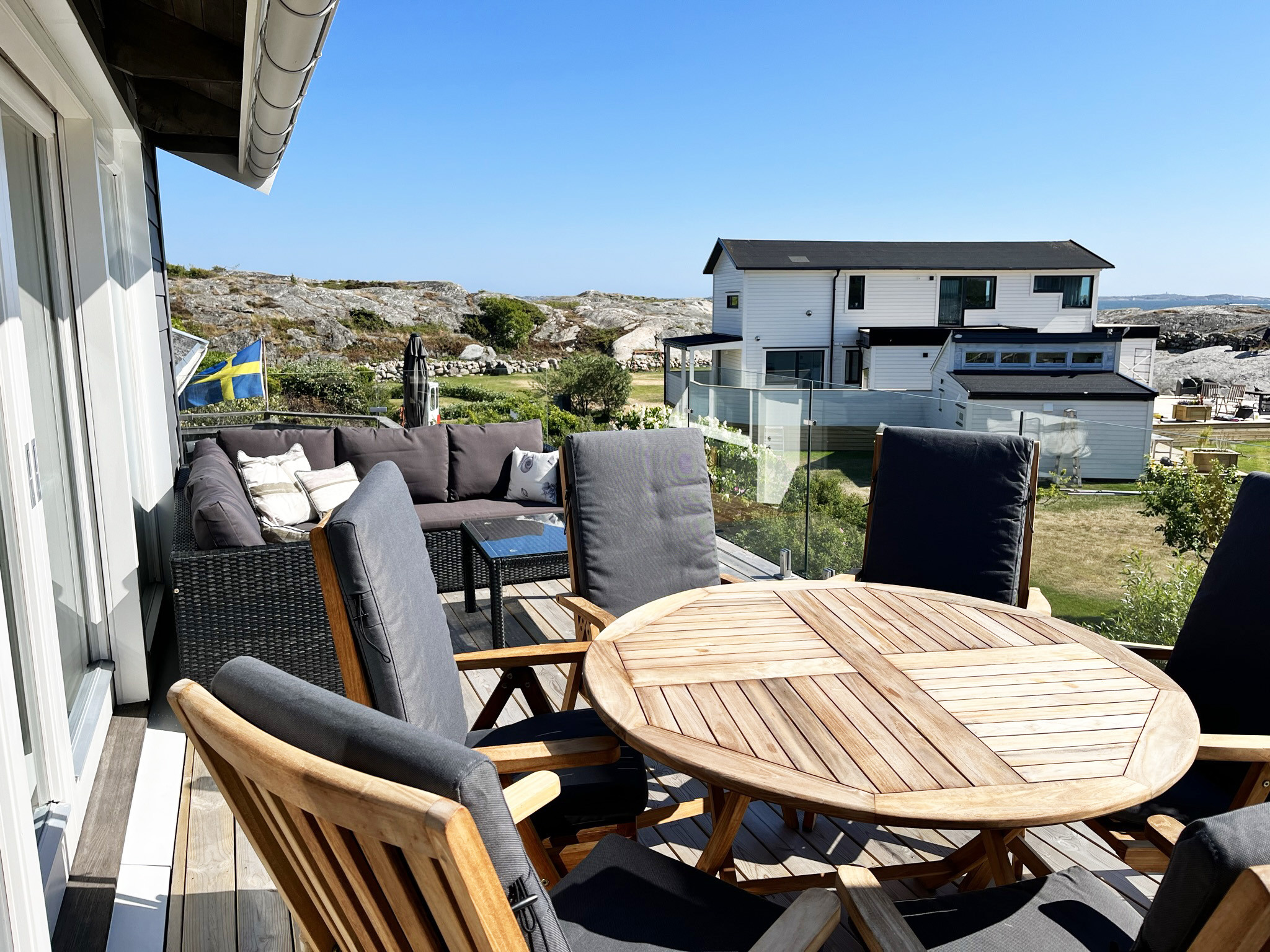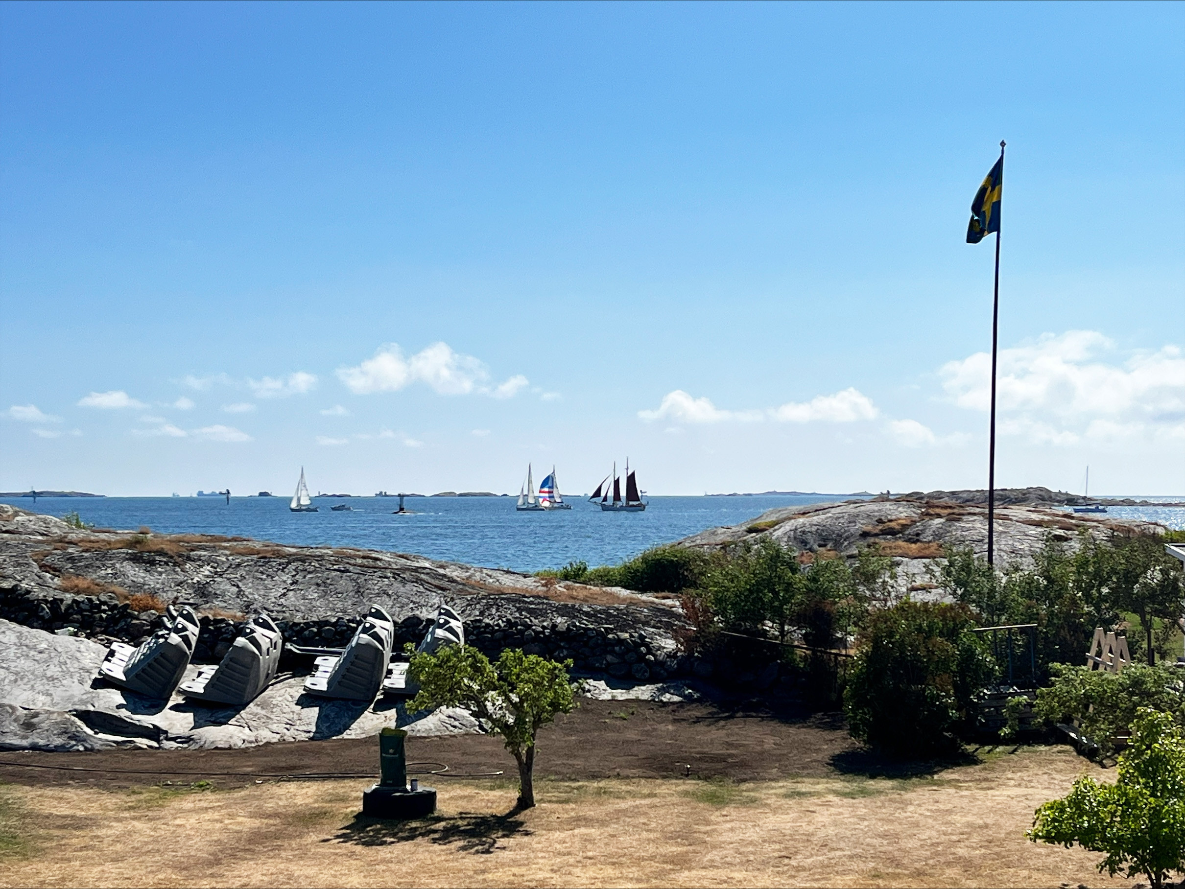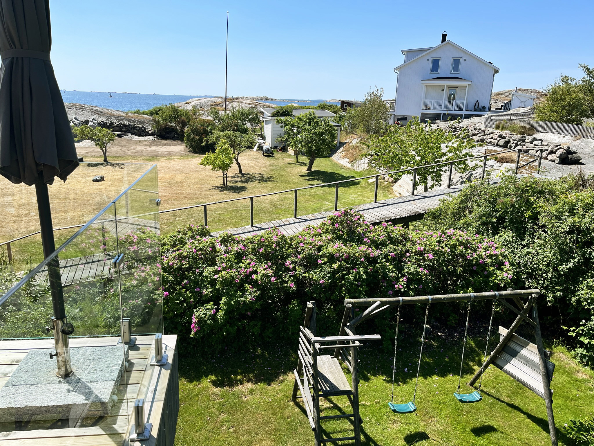 Das nördliche Fahrwasser von Göteborg ist knapp eine Seemeile von der Insel entfernt, sodass es vom Zimmer im Obergeschoss, dem Balkon und der Terrasse zu sehen ist. Hier können Sie das Leben auf See beobachten und die unterschiedlichen Motorboote, Segelboote und Frachter studieren.