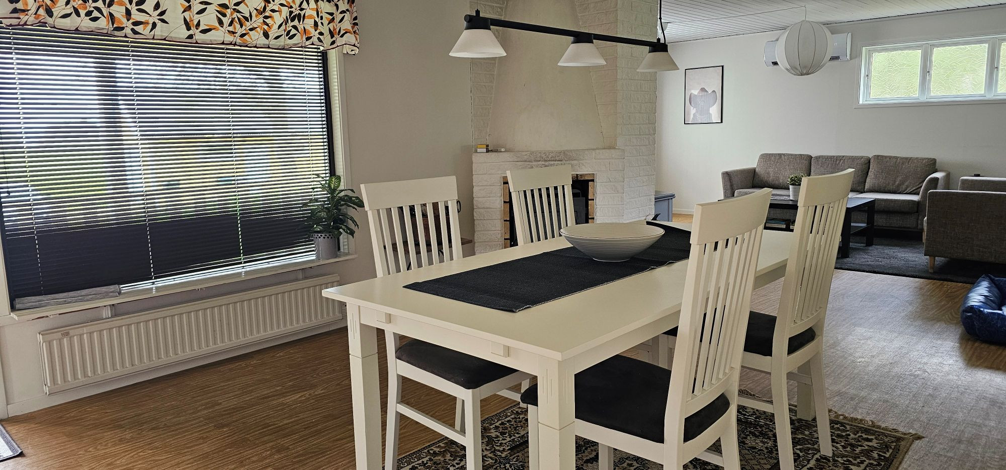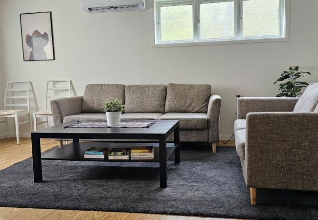 Das Haus ist 108 m² groß und bietet Platz für bis zu 6 Gäste + ein Baby. Es verfügt über drei Schlafzimmer: eines mit einem Doppelbett (160 cm) und einem Babybett, eines mit einem Etagenbett (2×90 cm) und ein Gästehaus mit zwei Einzelbetten (90 cm). Die Wohnbereiche sind offen und hell gestaltet mit zwei Essbereichen, einem gemütlichen Wohnzimmer mit Kamin, TV mit Chromecast sowie einer Auswahl an Spielen und Büchern. Die gut ausgestattete Küche bietet Geschirrspüler, Herd, Backofen, Mikrowelle und Kaffeemaschine. Im Badezimmer finden Sie sowohl Dusche als auch Badewanne, und eine separate Waschküche mit Waschmaschine steht zur Verfügung.