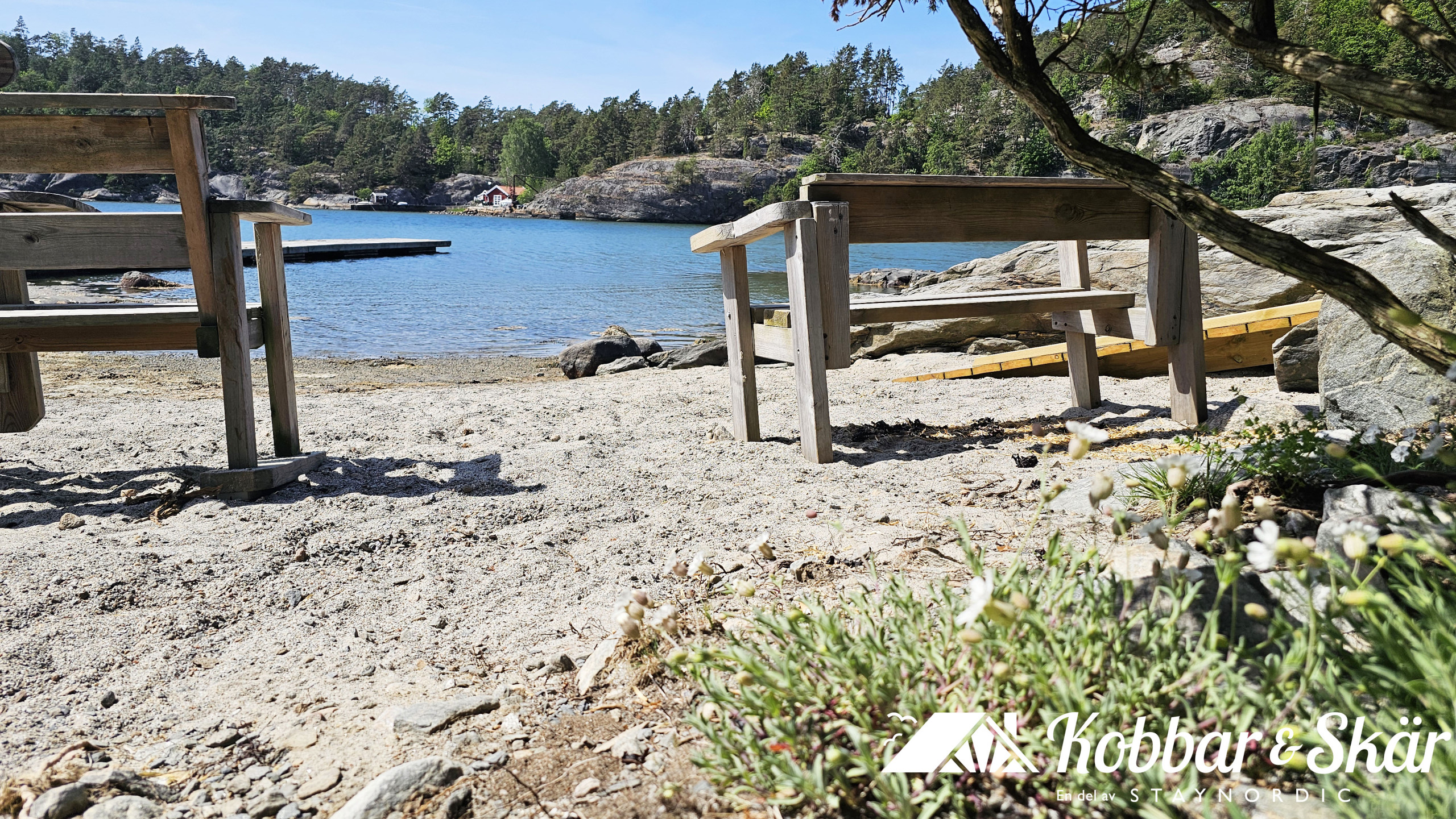 Für alle, die die Umgebung erkunden möchten, gibt es zahlreiche Spazier- und Radwege, und der beliebte Badestrand ist nur einen kurzen Spaziergang durch das Grüne entfernt. Hier erwarten Sie Stege, Sandstrand und salzige Badefreuden – so fühlt sich Sommer in Bohuslän an.