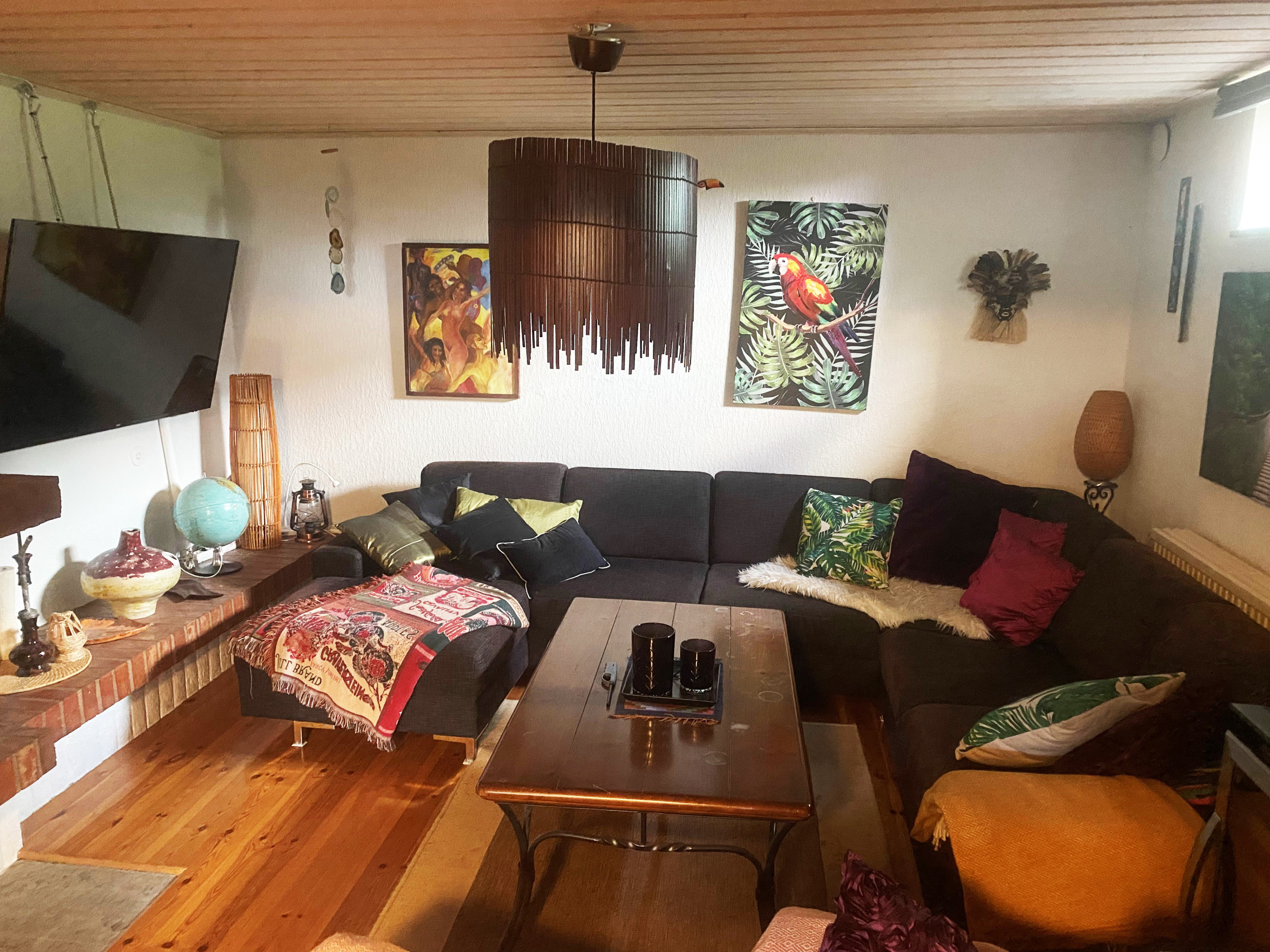Hier wohnen Sie inmitten einer ruhigen und landschaftlich reizvollen Umgebung mit Nähe zu Kultur, Shopping und Nachtleben auf Wunsch. Perfekte Unterkunft für Familien, die gemeinsam Urlaub machen möchten. Eine geräumige Villa mit Platz für neun Betten und ein zusätzliches Kinderbett. Es gibt eine moderne, gut ausgestattete Küche, zwei Badezimmer mit Dusche und ein Gäste-WC. Im Wohnzimmer haben Sie eine Sofagruppe und Essmöbel mit Blick auf den See, den Gemütlichkeitsfaktor können Sie zusätzlich mit einem Feuer im Kaminofen steigern. In dem angenehmen Cottage gibt es eine große Sofagruppe mit Kamin und einen 55-Zoll-Smart-TV für gemütliche Filmabende. Es gibt auch einen Fitnessraum sowie starkes Breitband mit Glasfaserverbindung. Auf dem großzügigen Balkon mit Blick auf See, Wald und Natur ist viel Platz für Geselligkeit und Sonnengenuss. Der Grillplatz und ein gepflegter Garten runden das Erlebnis ab.