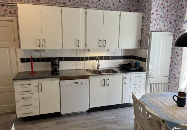 Diese schöne Erdgeschosswohnung befindet sich auf dem Grundstück des Eigentümers und bietet ein komfortables und voll ausgestattetes Wohnumfeld. Die Küche ist mit Herd, Backofen, Ventilator, Kühl-/Gefrierschrank und Mikrowelle ausgestattet — alles, was Sie zum Kochen benötigen. Ein Esstisch mit Platz für 4-6 Personen steht im Küchenbereich zur Verfügung. Im selben Raum gibt es auch ein großes Sofa, einen Fernseher und ein Etagenbett für zusätzlichen Schlafplatz. Das angrenzende Schlafzimmer ist mit einem Doppelbett, einem Etagenbett und einem Babybett ausgestattet. Das Badezimmer ist komplett gefliest und verfügt über eine praktische Waschmaschine. Vor dem Eingang besteht die Möglichkeit, das Auto zu parken, und Sie haben auch Zugang zu einer gemütlichen Terrasse mit Grill. Das Zentrum von Vimmerby mit seiner großen Auswahl an Restaurants und Geschäften ist nur einen kurzen Spaziergang entfernt — nur 2 Minuten zu Fuß.