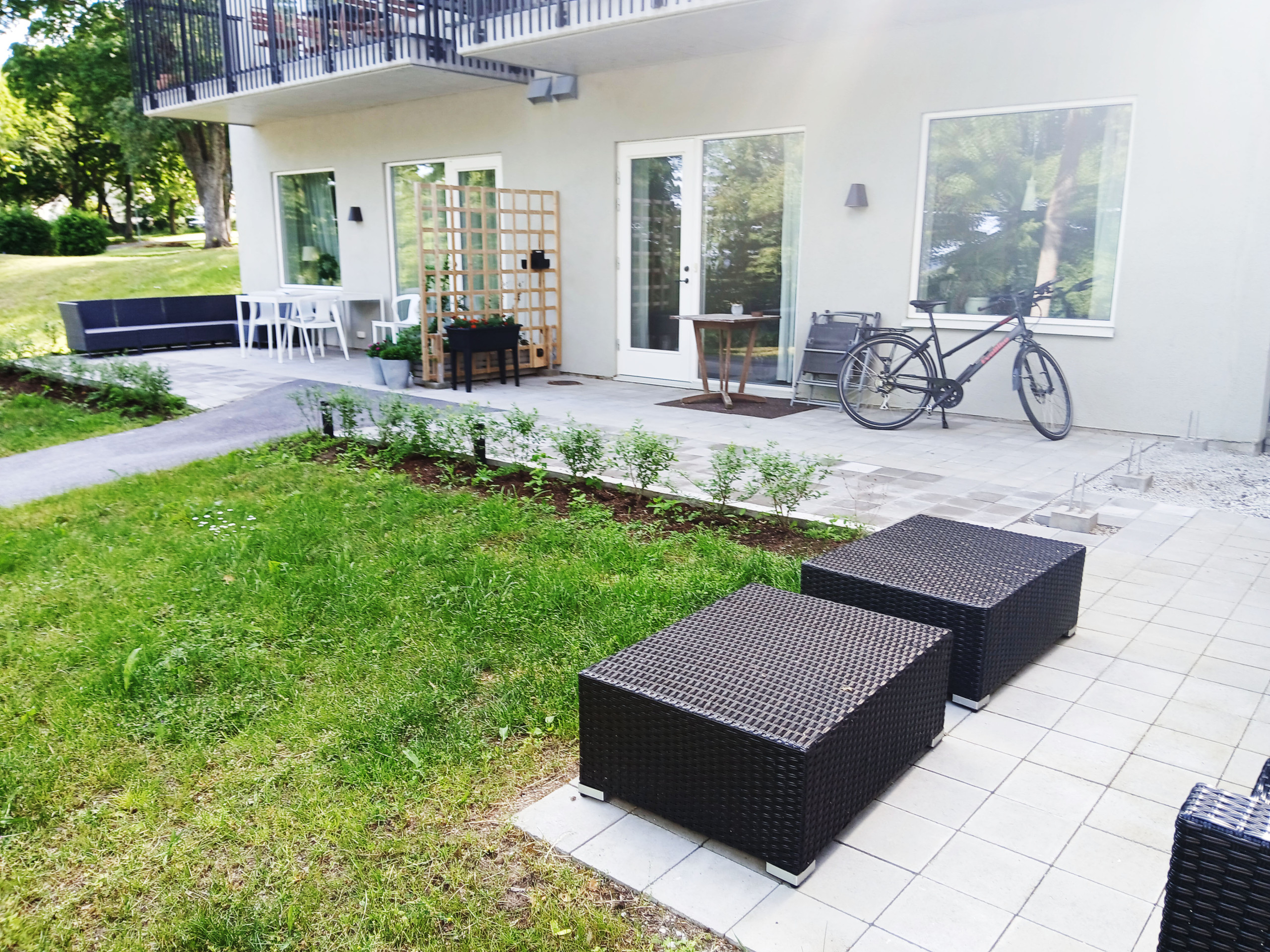 Wohnen Sie in der Nähe des Stadtzentrums von Visby in einer ruhigen, parkähnlichen Umgebung. Im Jahr 2022 erbaute Wohnung mit hohem Standard und nur 5 Minuten vom Fährhafen, dem Zentrum und den Geschäften entfernt. Hier gibt es Unterkunft für 3 Personen. Die Wohnung verfügt über einen eigenen Eingang und eine Terrasse mit Abendsonne. Wohnzimmer im offenen Raum mit der Küche, Blick durch Panoramafenster auf die grüne Umgebung. Schlafsofa mit Doppelbett und Einzelbett im Wohnzimmer. Auf der Terrasse befindet sich eine Loungegruppe und von hier aus haben Sie teilweise Meerblick. Zur Wohnung gehört der Parkplatz Nummer 2.