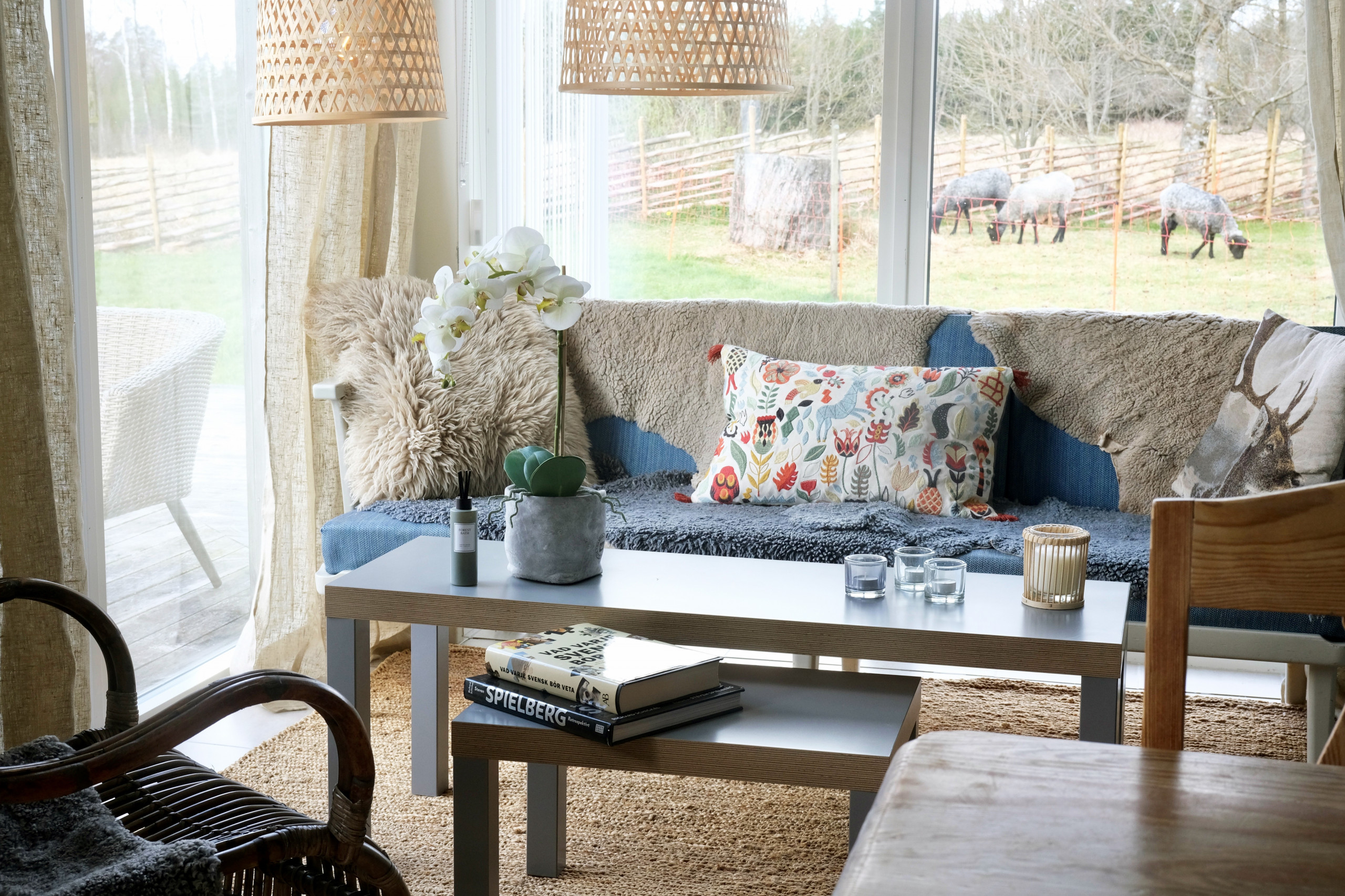 this apartment is located in the middle of Hallandsåsen. You are greeted by chirping birds and farm animals right outside the door. Pets are allowed upon request. The apartment can accommodate 6 people divided into 3 bedrooms each with a double bed and a family room.