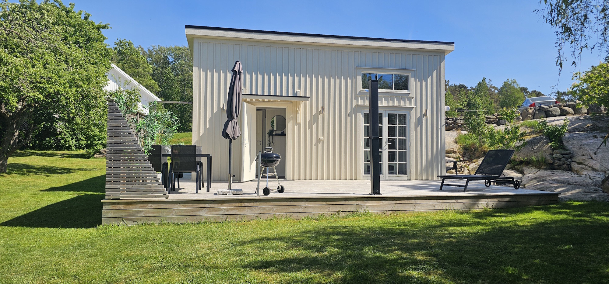 Rossö is idyllically located on the western side of Orust, close to both the sea and beautiful nature. Just 700 meters away, you’ll find the nearest bathing spot with cliffs, perfect for refreshing swims and sunsets. Fishing opportunities are available just 370 meters from the house, and the whole area invites lovely walks and bike rides in untouched nature.