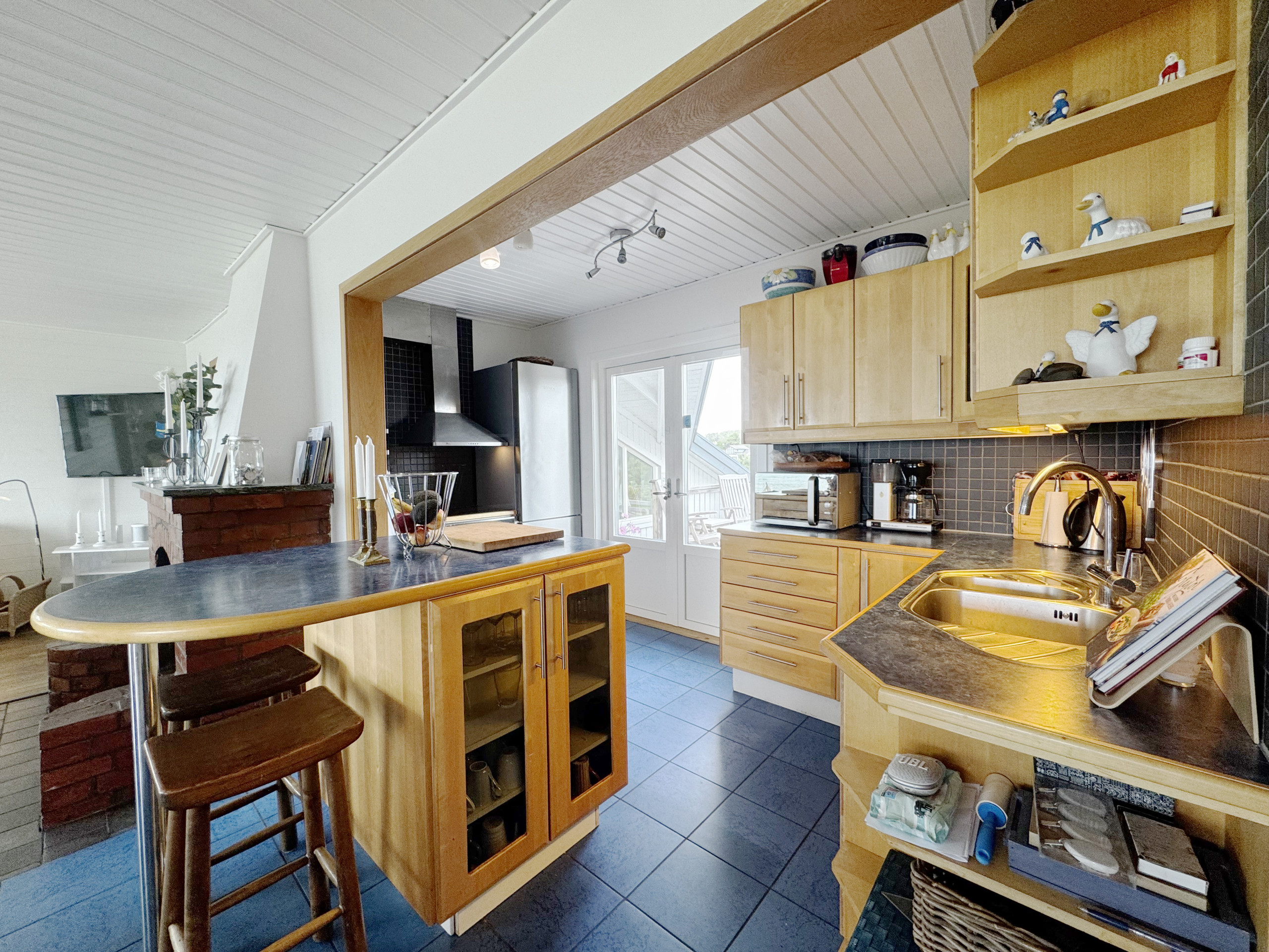 Outside you will find both a glazed and open terrace with a barbecue, where you can enjoy long summer evenings with a view of the sea.