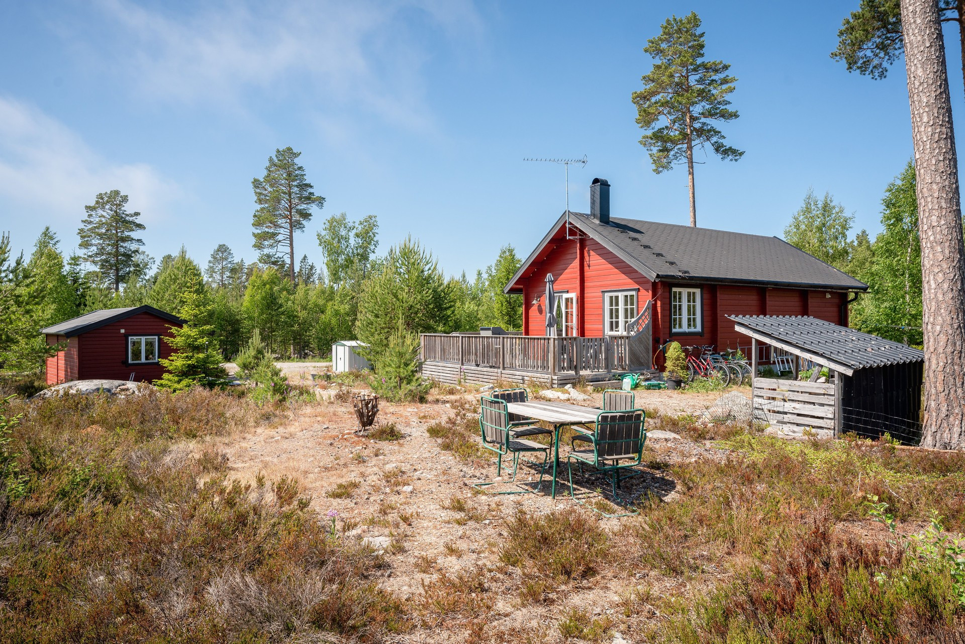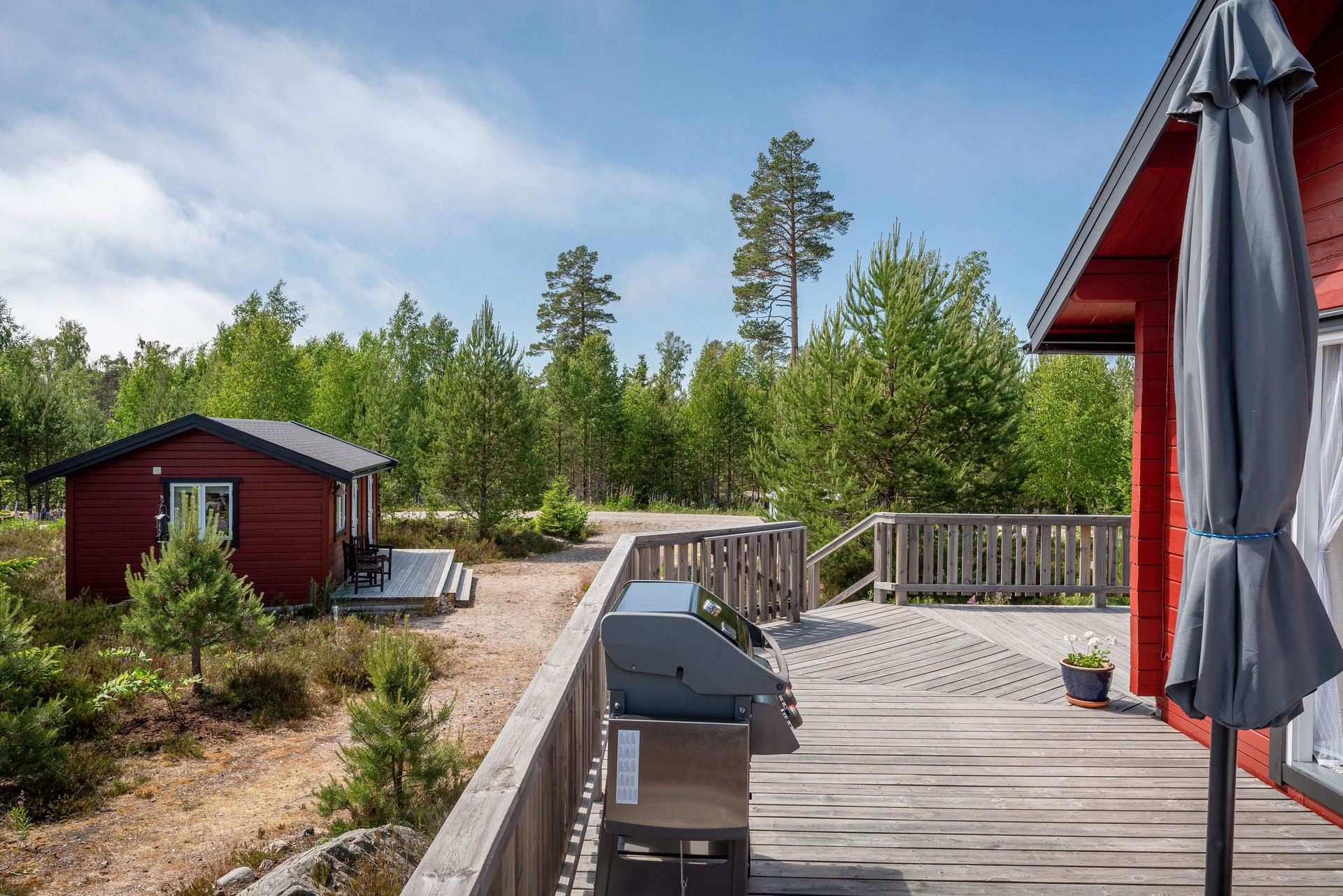Welcome to this charming accommodation along the east coast within walking distance to the sea. The accommodation has 7 beds and a large terrace with garden furniture and barbecue. The cabin has a fully equipped kitchen for delicious meals, a bathroom with shower and wc, a living room and a bedroom with a double bed. There is also a sleeping loft with 3 single beds and a sofa bed in the living room.