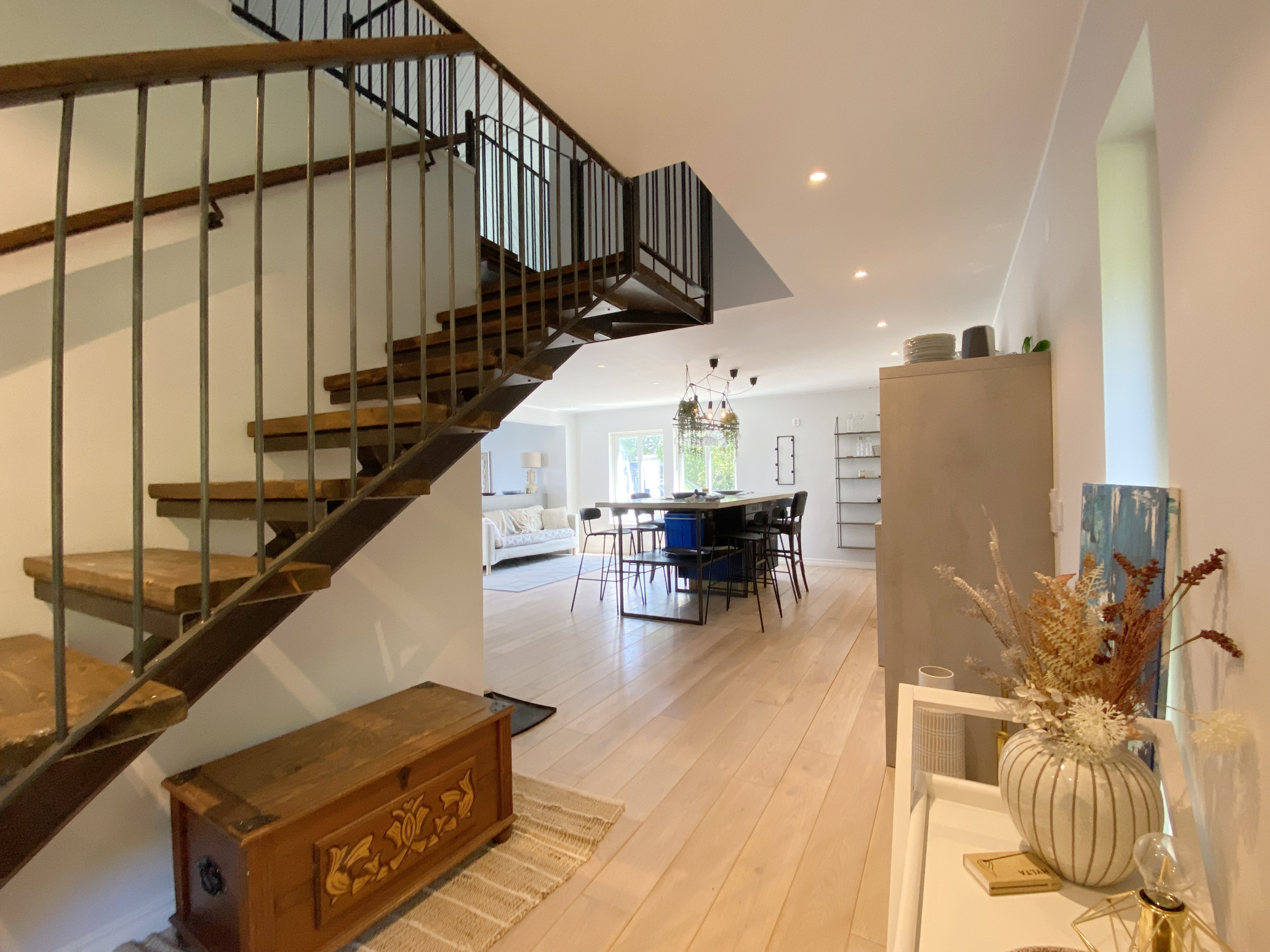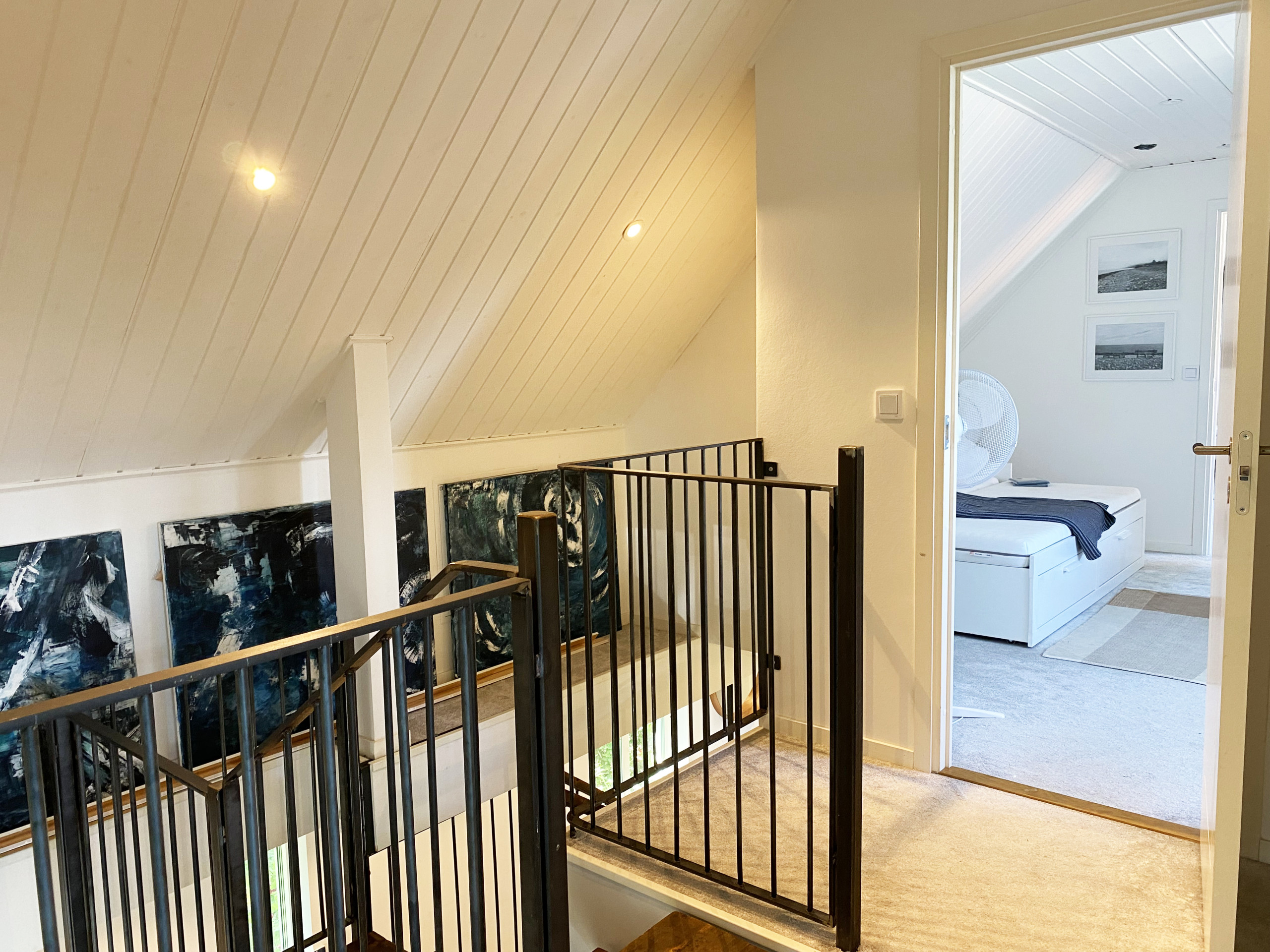 The house has four bedrooms, three of them equipped with double beds and one with two single beds, which provides plenty of space for all guests. There are two modern bathrooms; one with both toilet, shower and bathtub and one with toilet and shower, to meet all needs. The fully equipped kitchen has an open floor plan that smoothly integrates with the spacious living room. Here you can cook and socialize at the same time, making it the perfect place for family gatherings and dinners with friends. Large windows let in lots of natural light and provide a wonderful view of the sea.