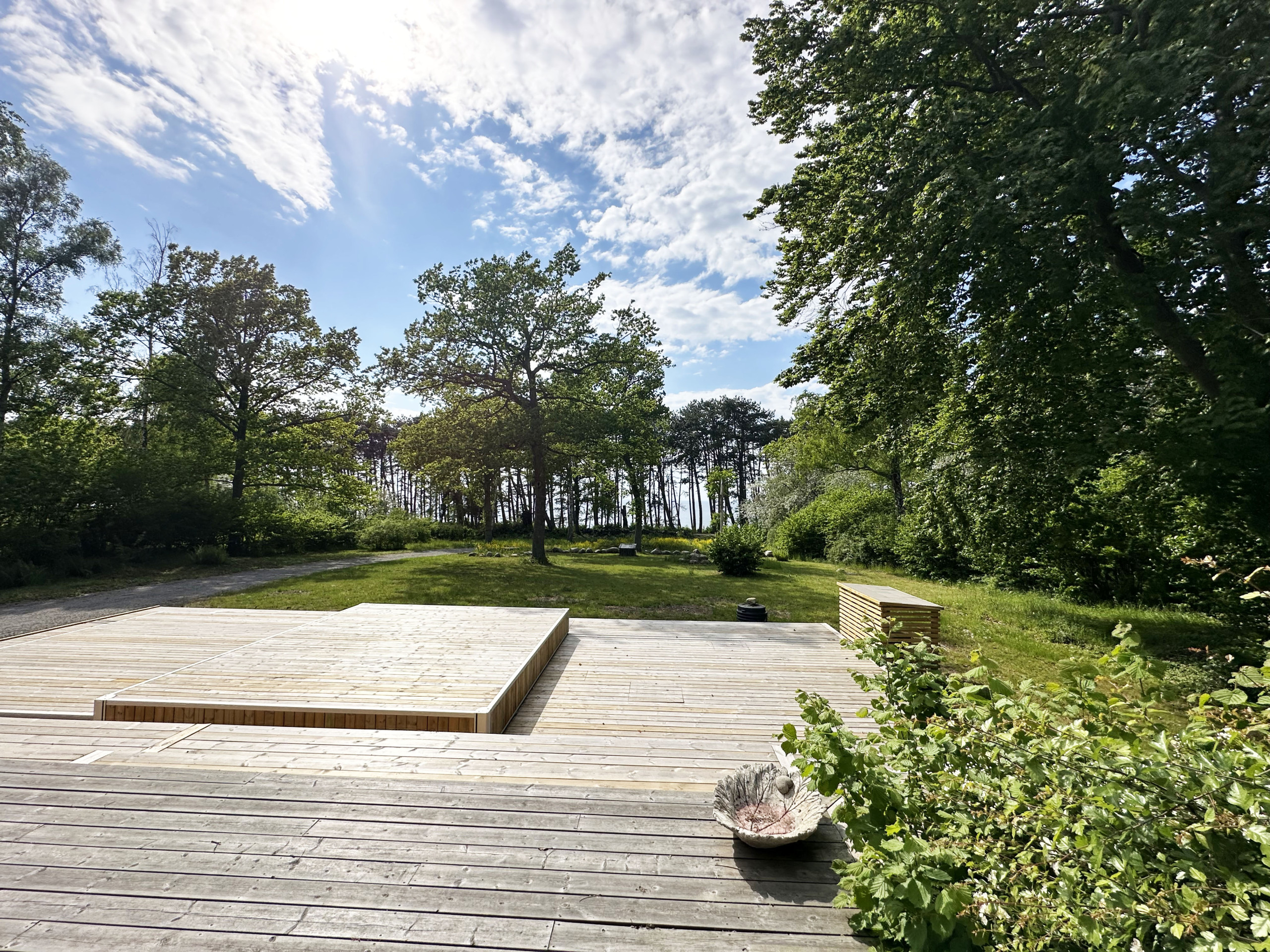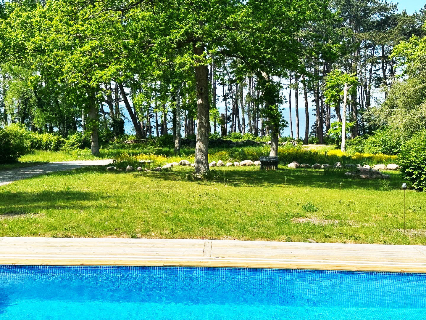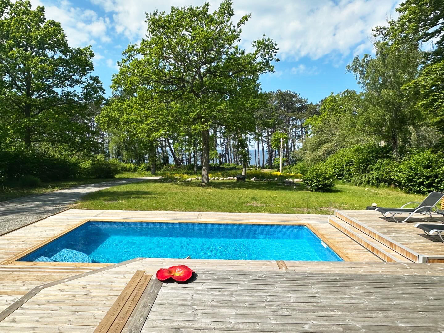 There are three bedrooms, two of which have double beds and the third a single bed. Next to the entrance you will find a renovated nice bathroom. The kitchen is well equipped and has a beautiful sea view. In the living room, you can sit and cozy up on the sofa in front of the fire if it's a little cooler one evening. From the living room you come out onto a partially covered terrace, where you can sit and relax after the day's adventure or have a good dinner. Adjacent is the large patio deck with a lovely pool, where you can take a cooling dip on hot days. As the house has a western location, you can experience fantastic beautiful sunsets, when the weather is good.