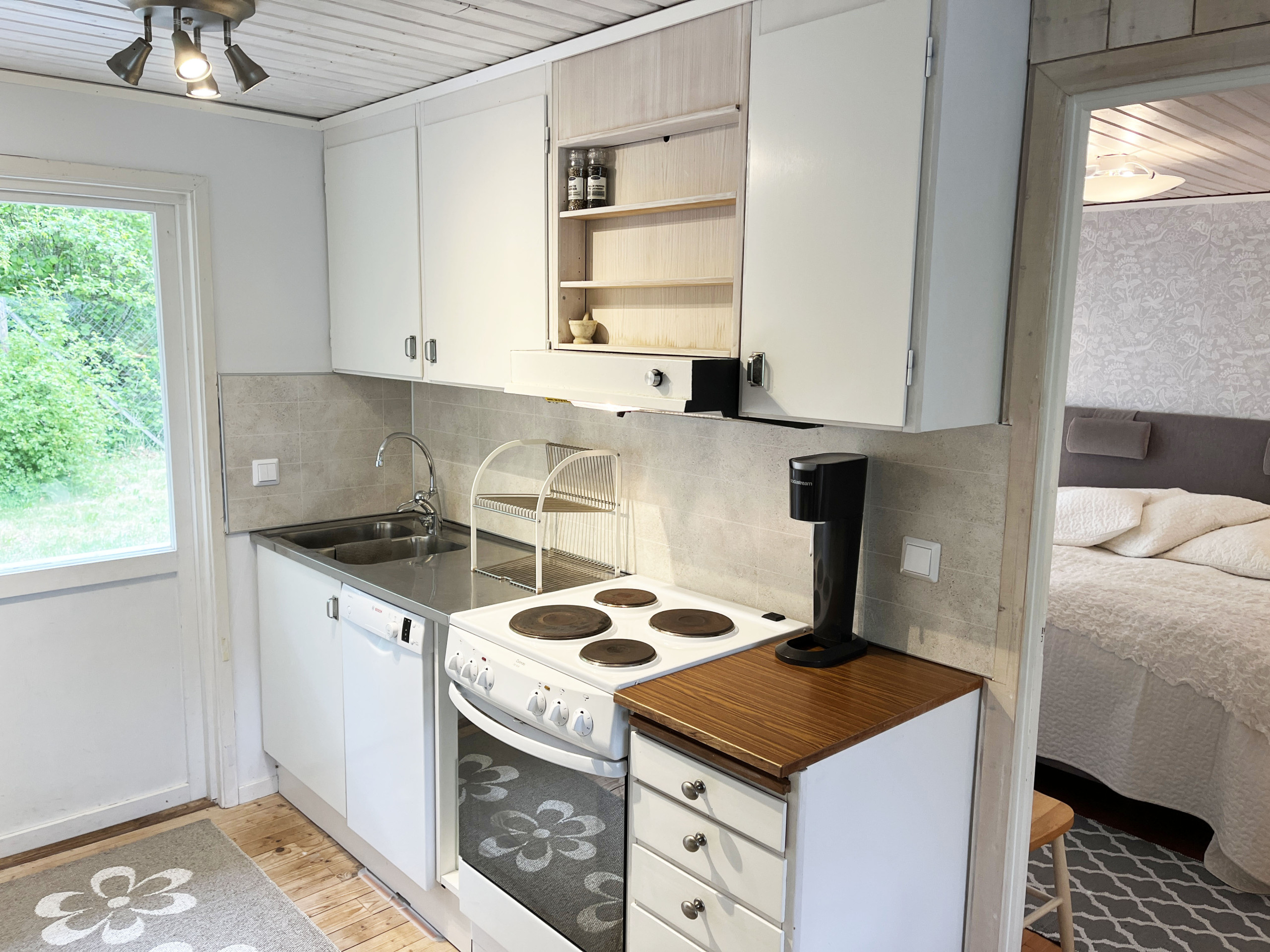 The holiday home is comfortably equipped and has 2 bedrooms with 2 single beds in each and a sofa bed for two in the living room. The accommodation is suitable for 4 adults and 2 children under the age of 12. The cottage has a WC and a separate bathroom facing the sauna with shower only.