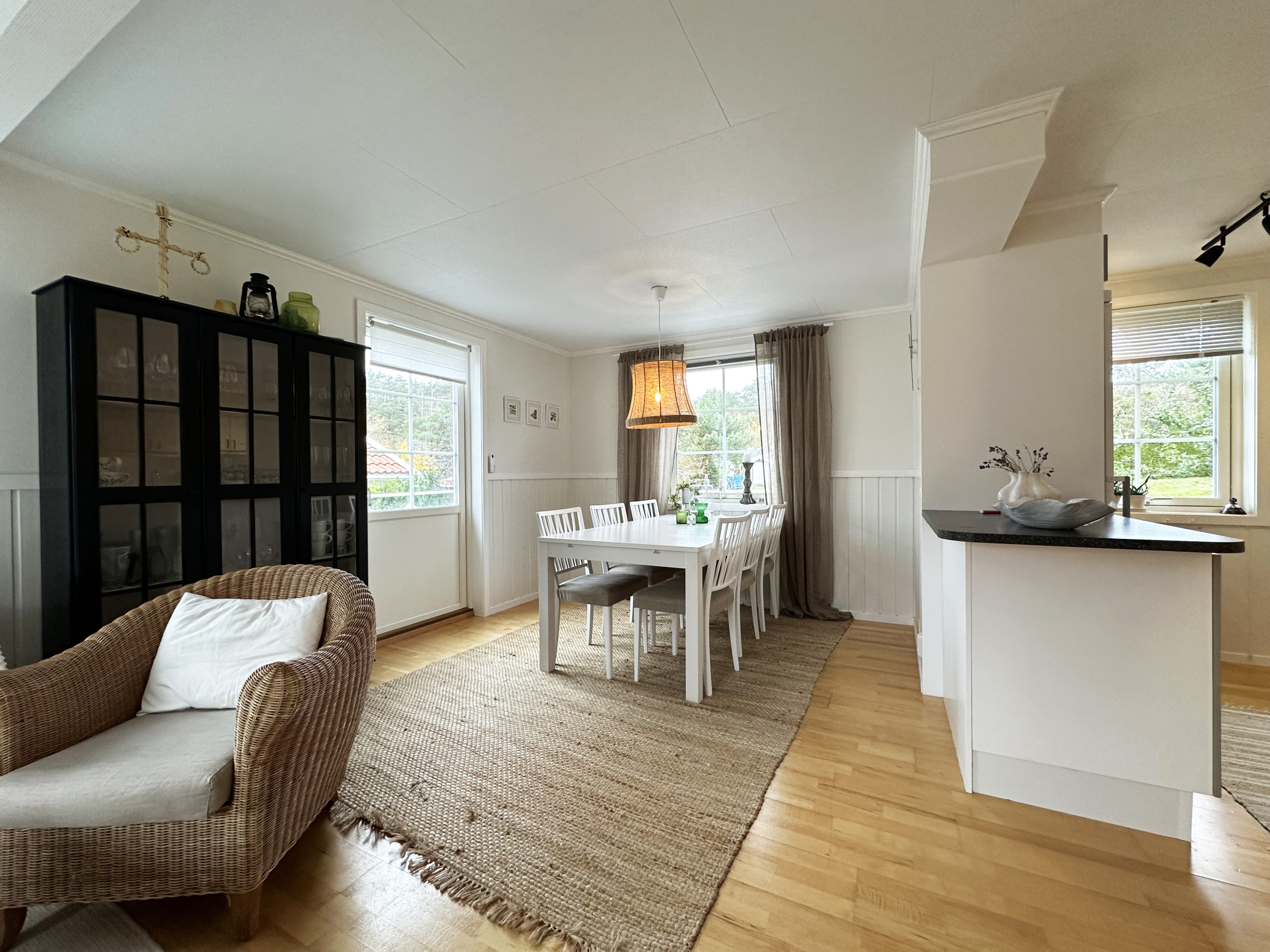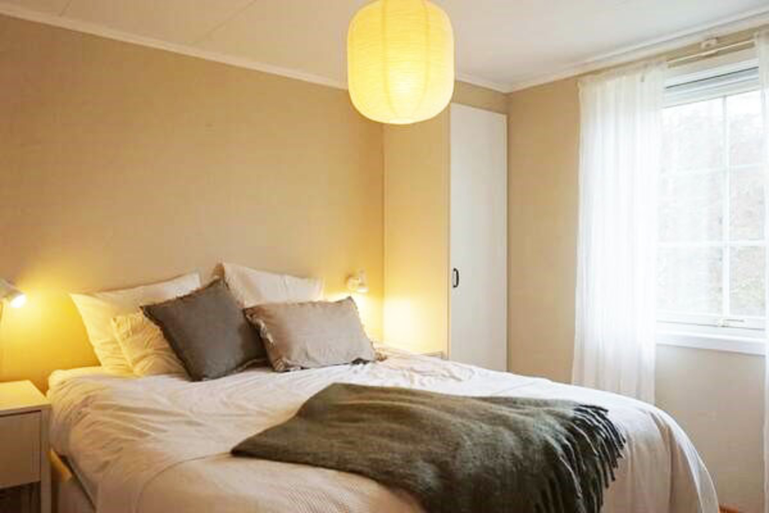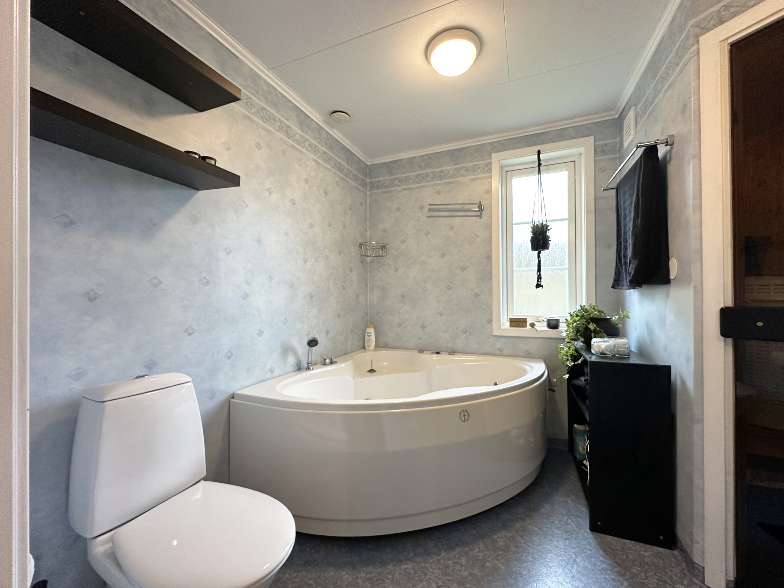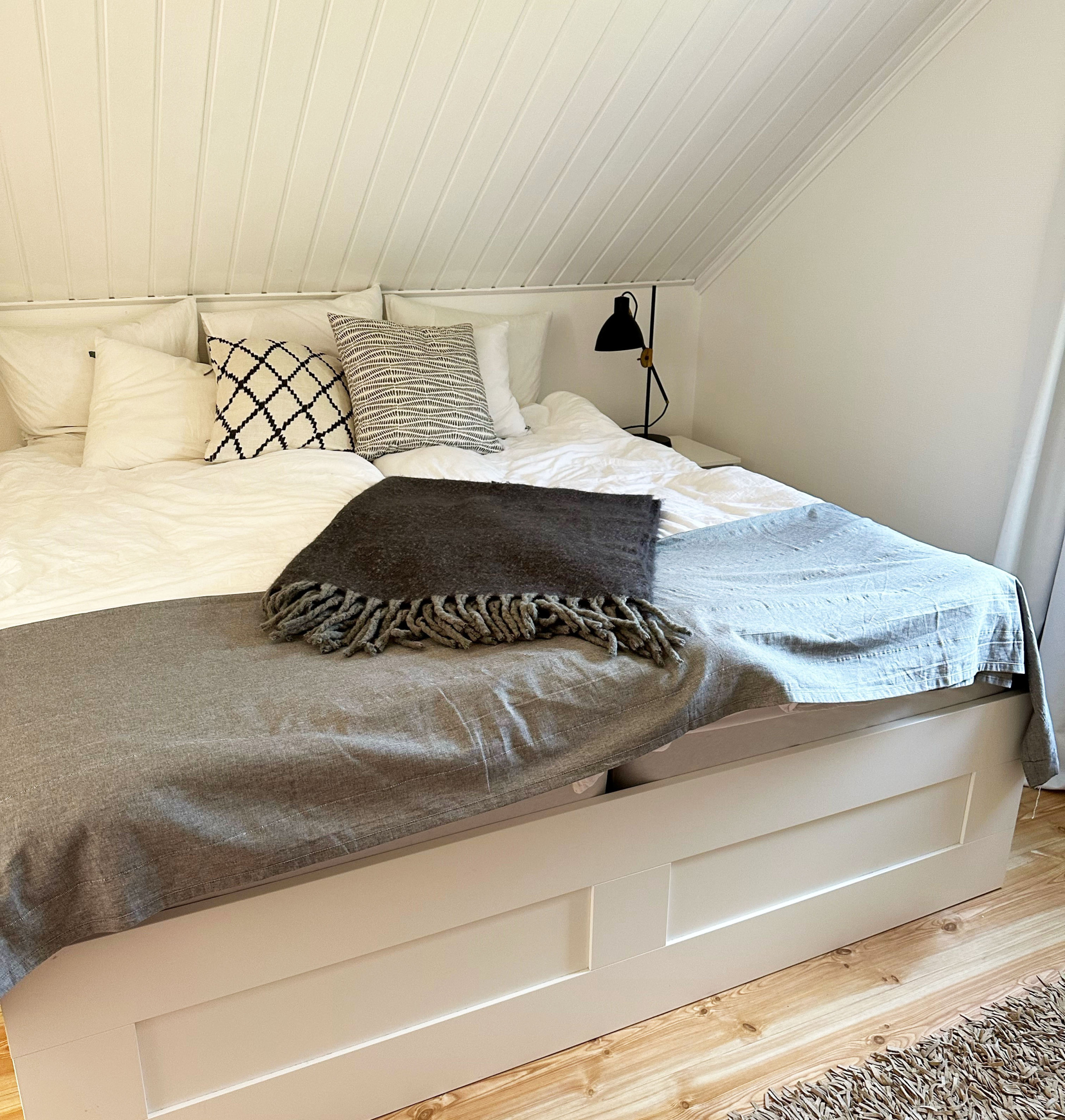 In this cozy cottage, which is located in an established quiet cottage area Norra Backa, you live fantastically well. Entrance directly to the family room, which has a fireplace, comfortable sitting area in an open-plan layout and is adjacent to the kitchen, which is well equipped and functional with good work surfaces. There is a large bedroom with a comfortable double bed and a slightly smaller one with a single bed. Downstairs you will also find the two bathrooms. The slightly larger bathroom has a spa bath and sauna and the smaller one has a shower and washing machine. Upstairs there are two more bedrooms, each with its own double bed. The living room on the second floor has a double sofa bed. You also have a lovely terrace with a barbecue and a view of the edge of the forest.
