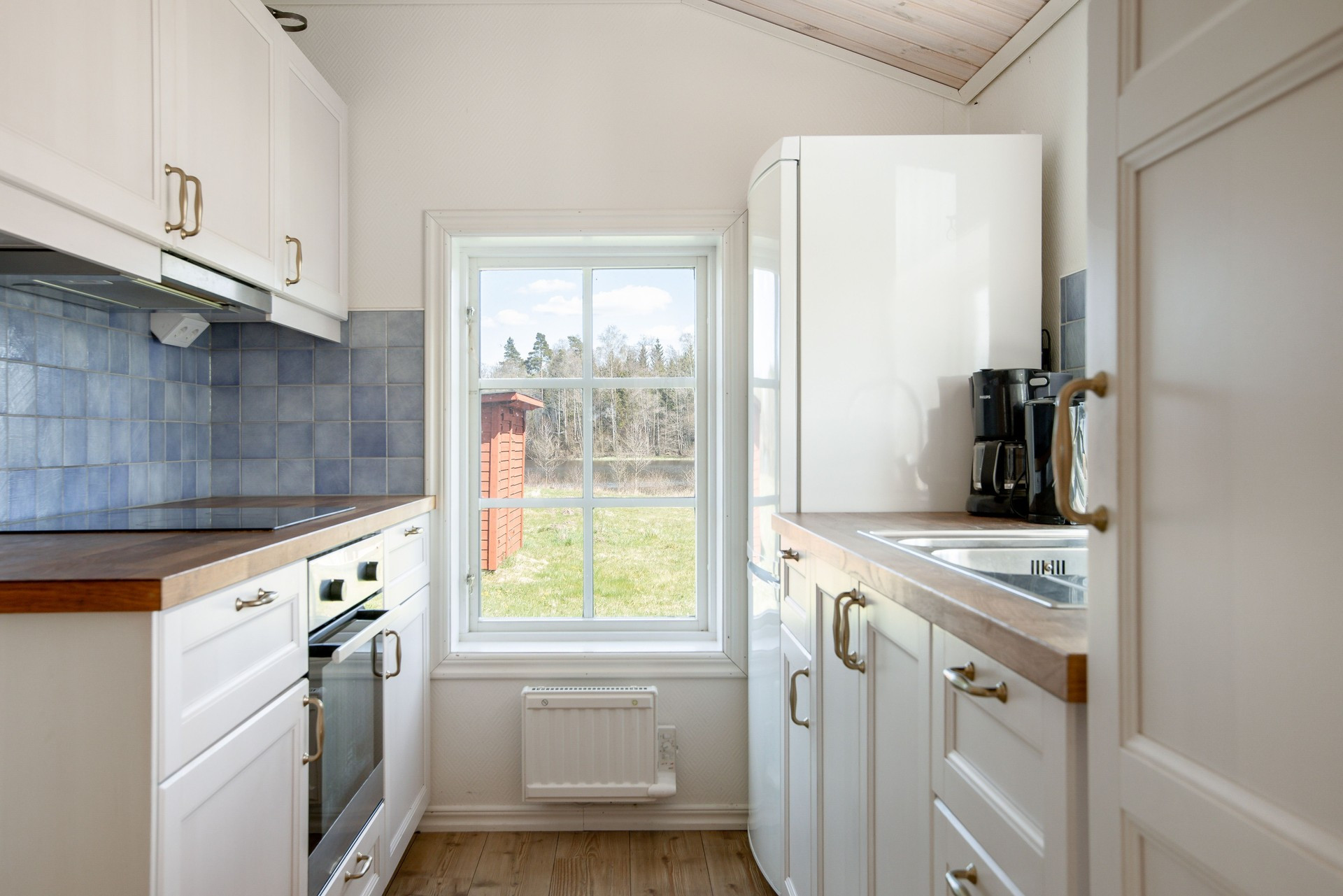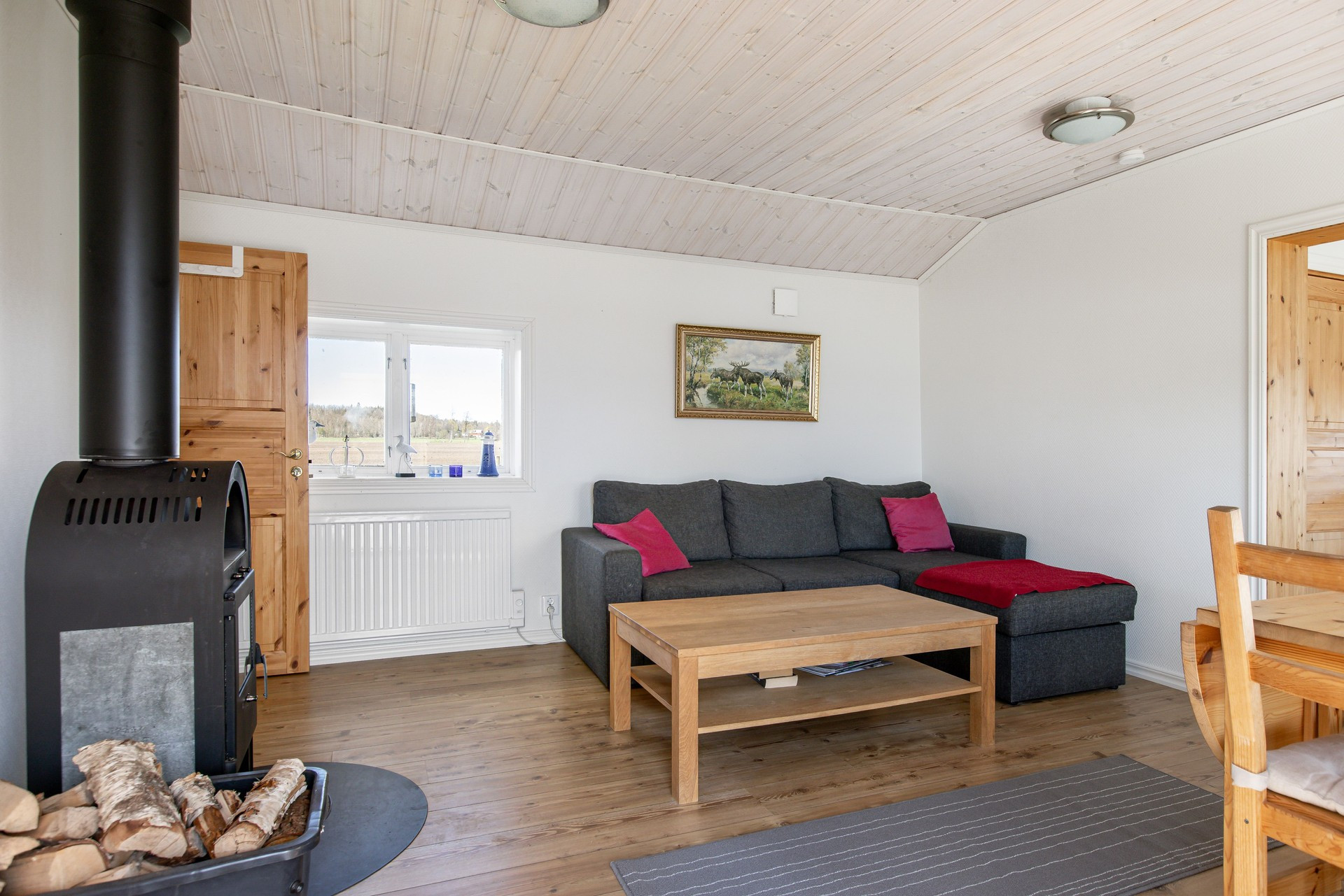 The cottage has two bedrooms with a double bed in one and a bunk bed in the other. The living room has a sofa bed and there is also a cozy wood burning stove for colder evenings. Firewood can be purchased for SEK 100. The bathroom has a shower and toilet, the water is of high iron content hence sediments in the bathroom.