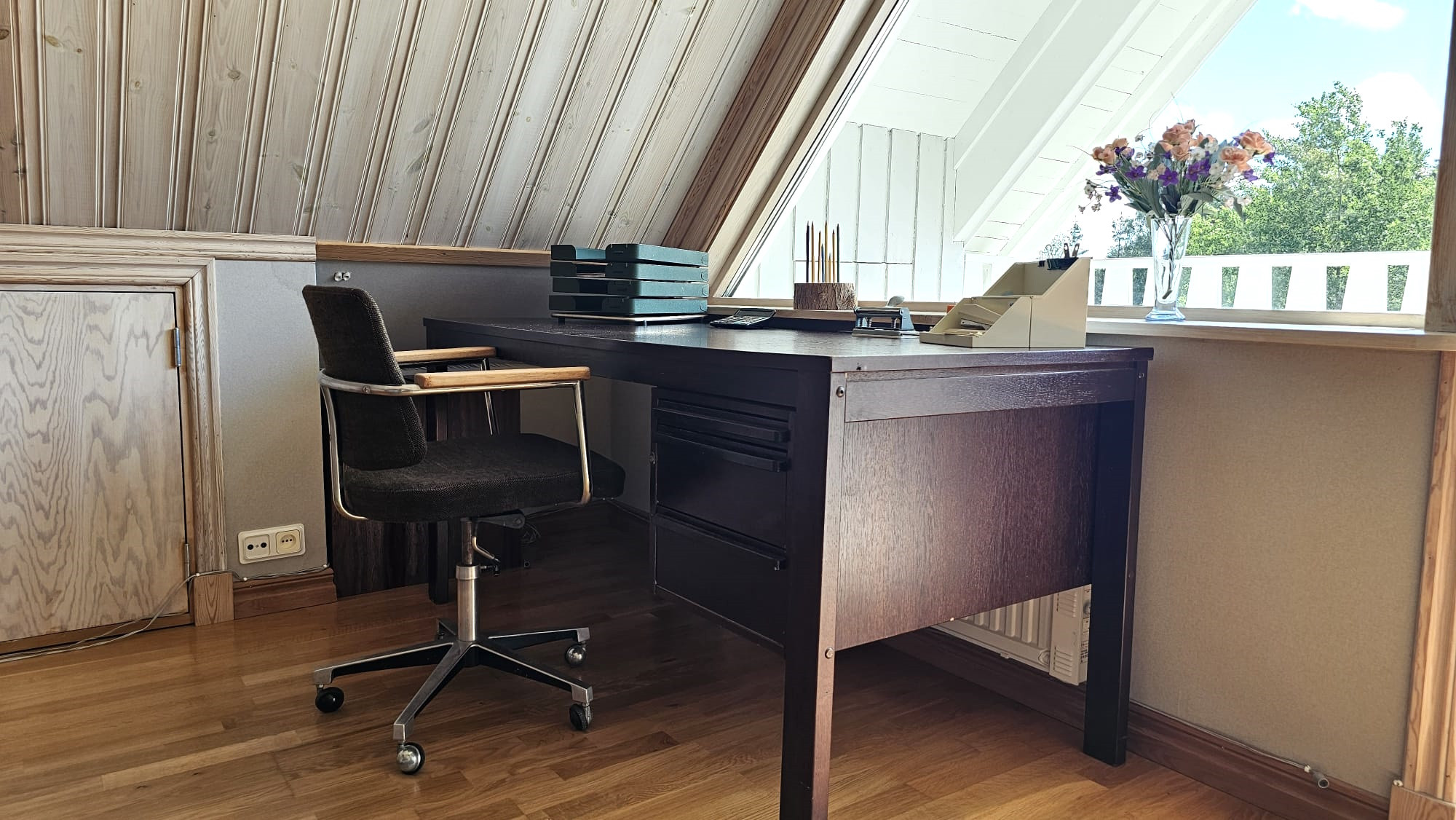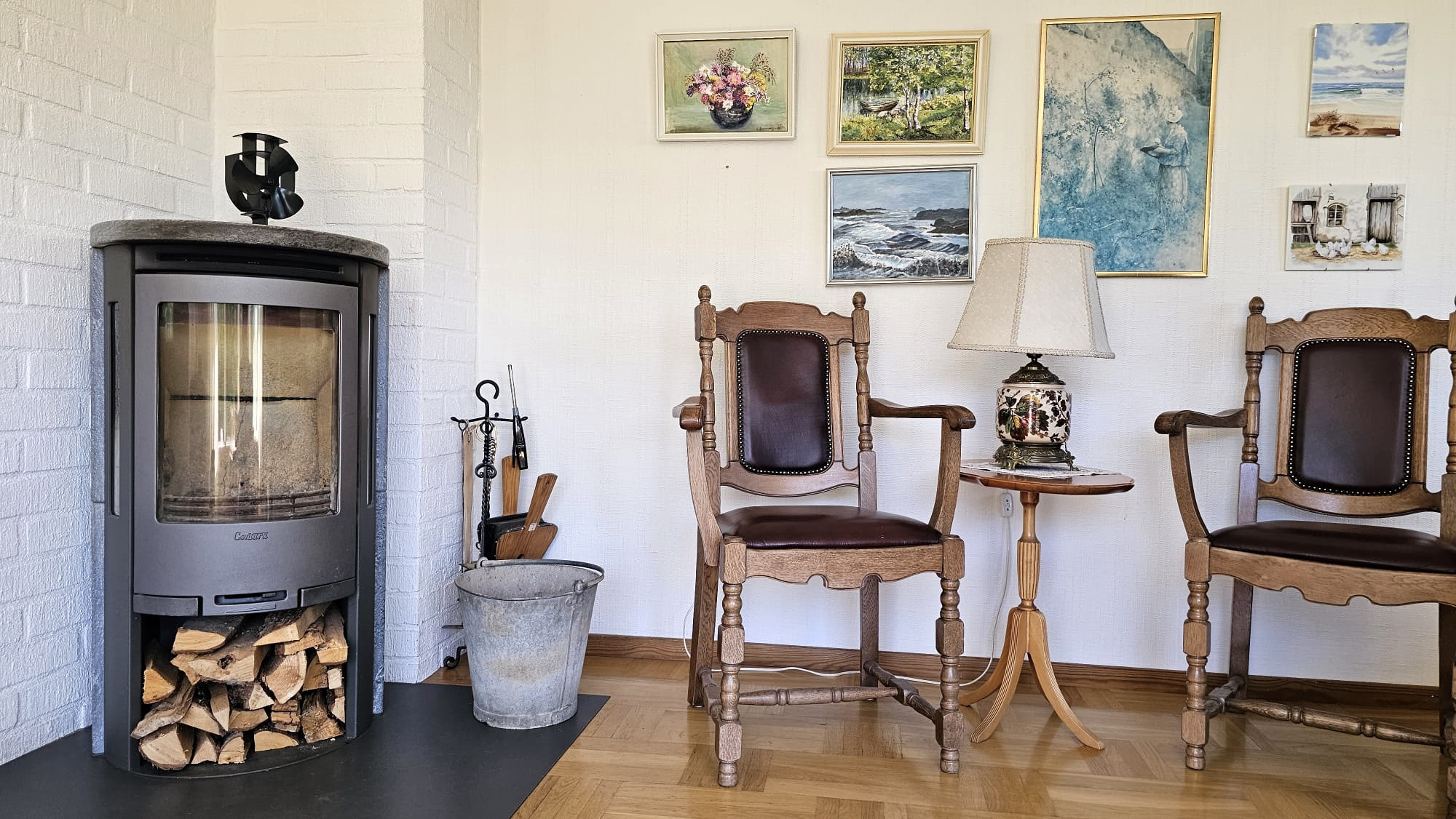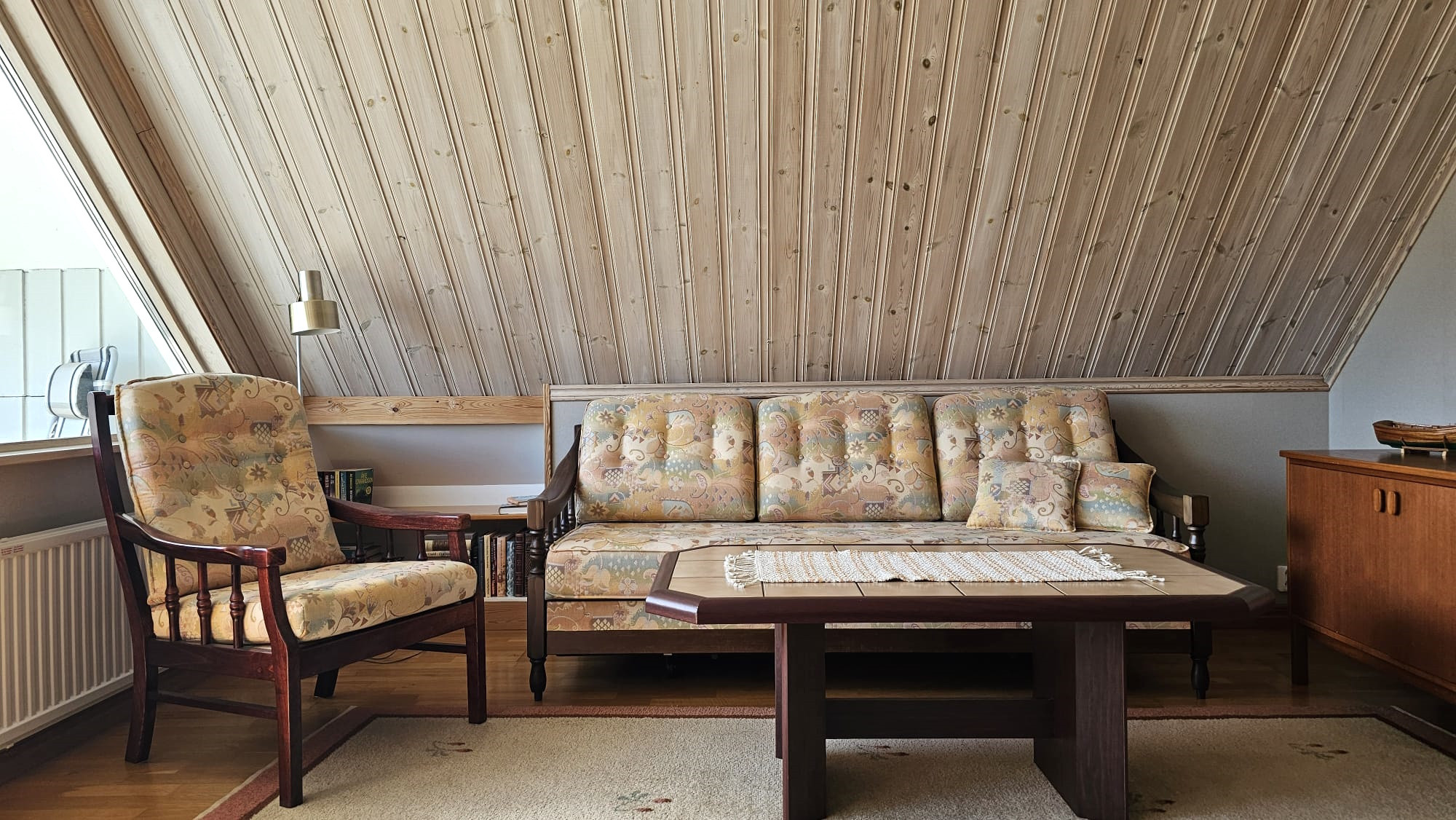 The house is simply but functionally equipped, with preserved charm from the past. The kitchen has a stove, oven, refrigerator and coffee maker, and in the living room there is plenty of space for shared moments. The bathroom in the basement has a bathtub and the house is equipped with an urine-diverting toilet. During the summer you need to be economical with your water consumption as the well can be sensitive.