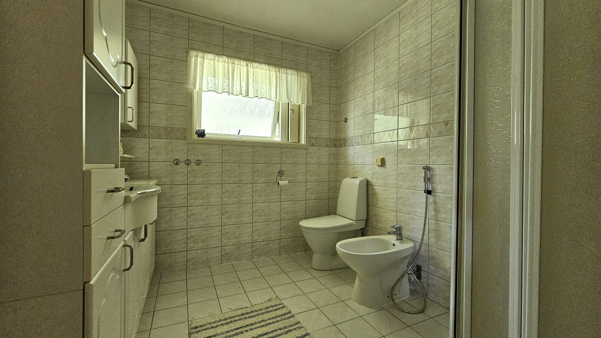 The house offers two fully tiled bathrooms, one of which features a whirlpool bathtub (corner bathtub with bubble and jet function) and a sauna, perfect for relaxation after a day by the sea.
