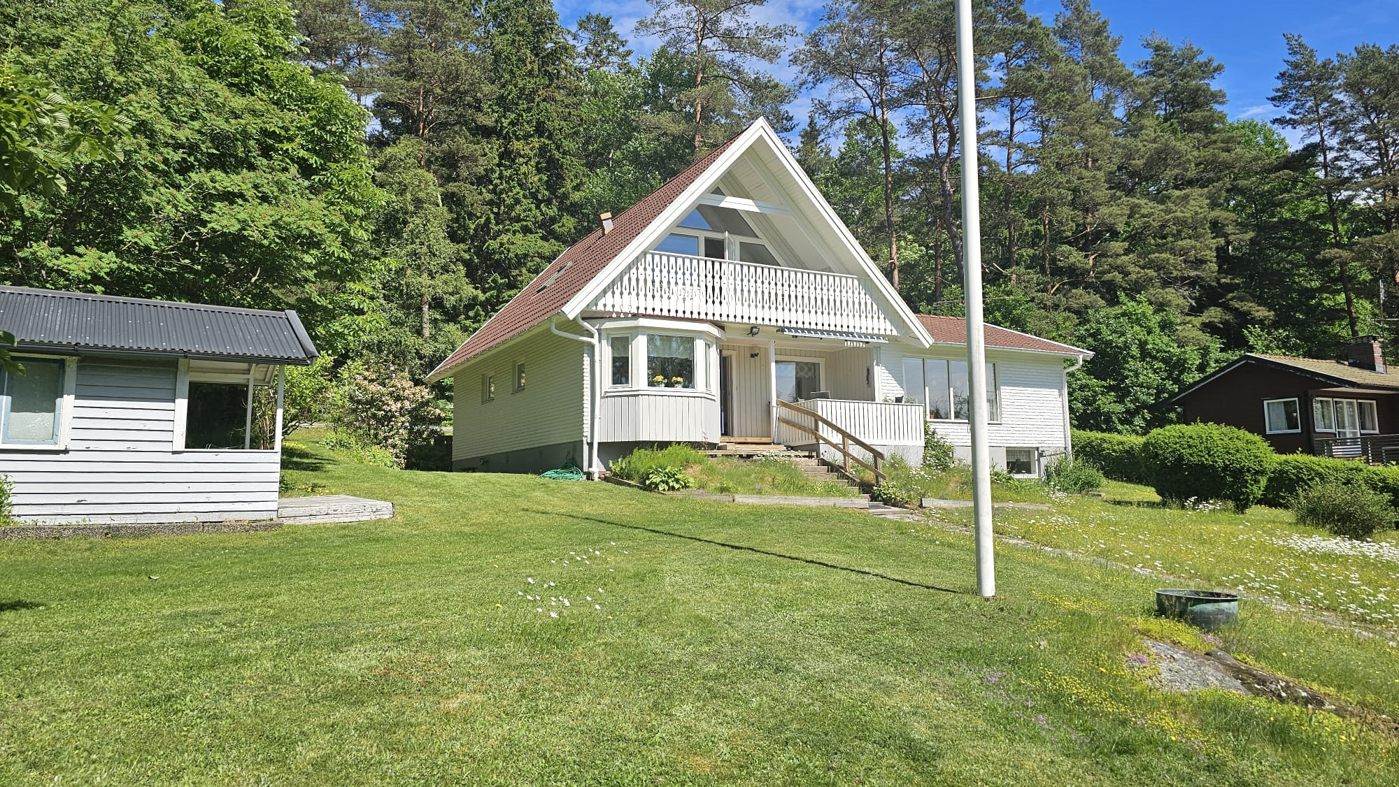Welcome to this beautiful and well-planned villa with stunning views of the sea and forest, just a few minutes from the Småholmarna beach. Here you’ll stay comfortably in a spacious house of 154 m², accommodating up to 8 people – perfect for two families traveling together.