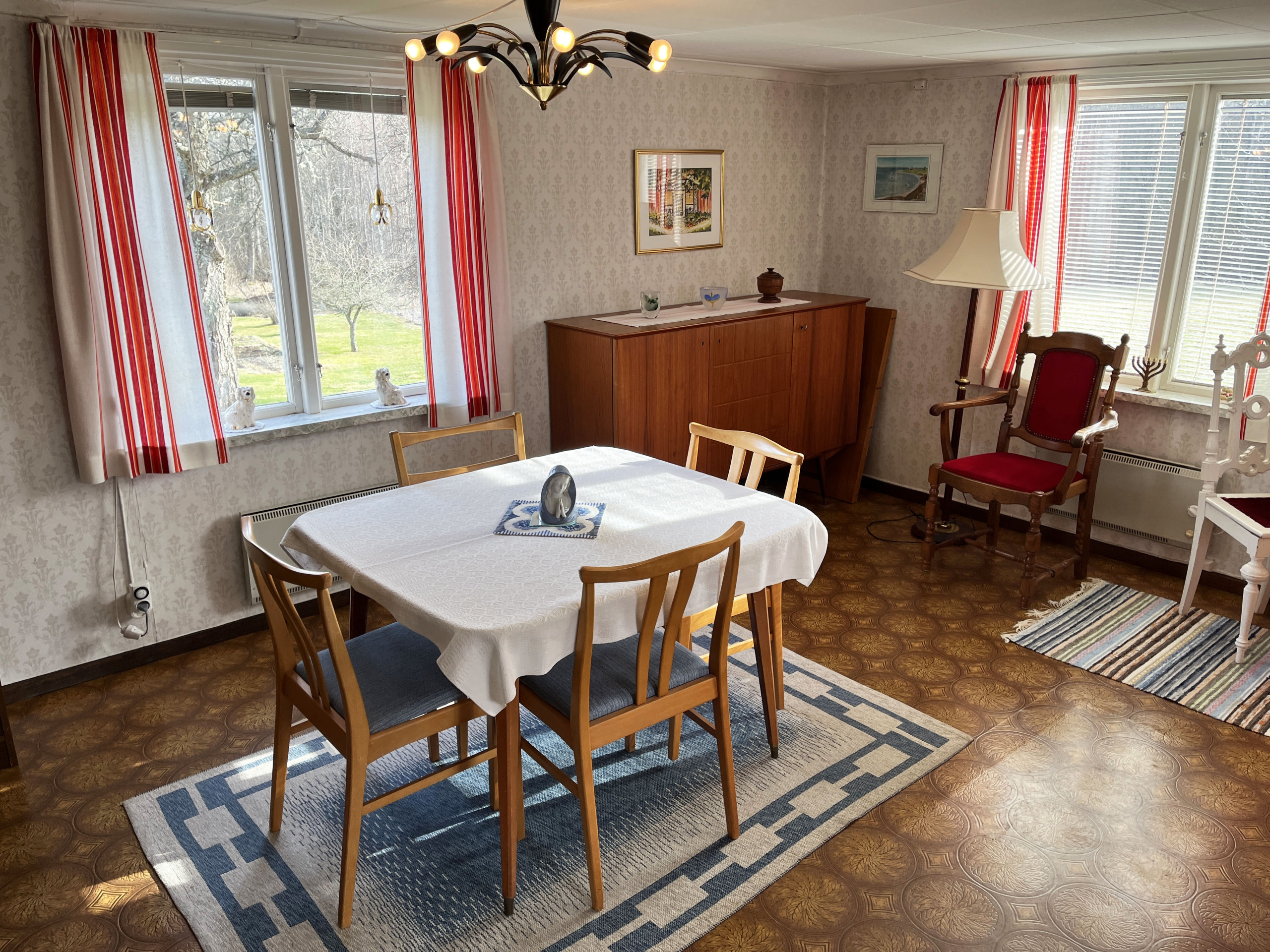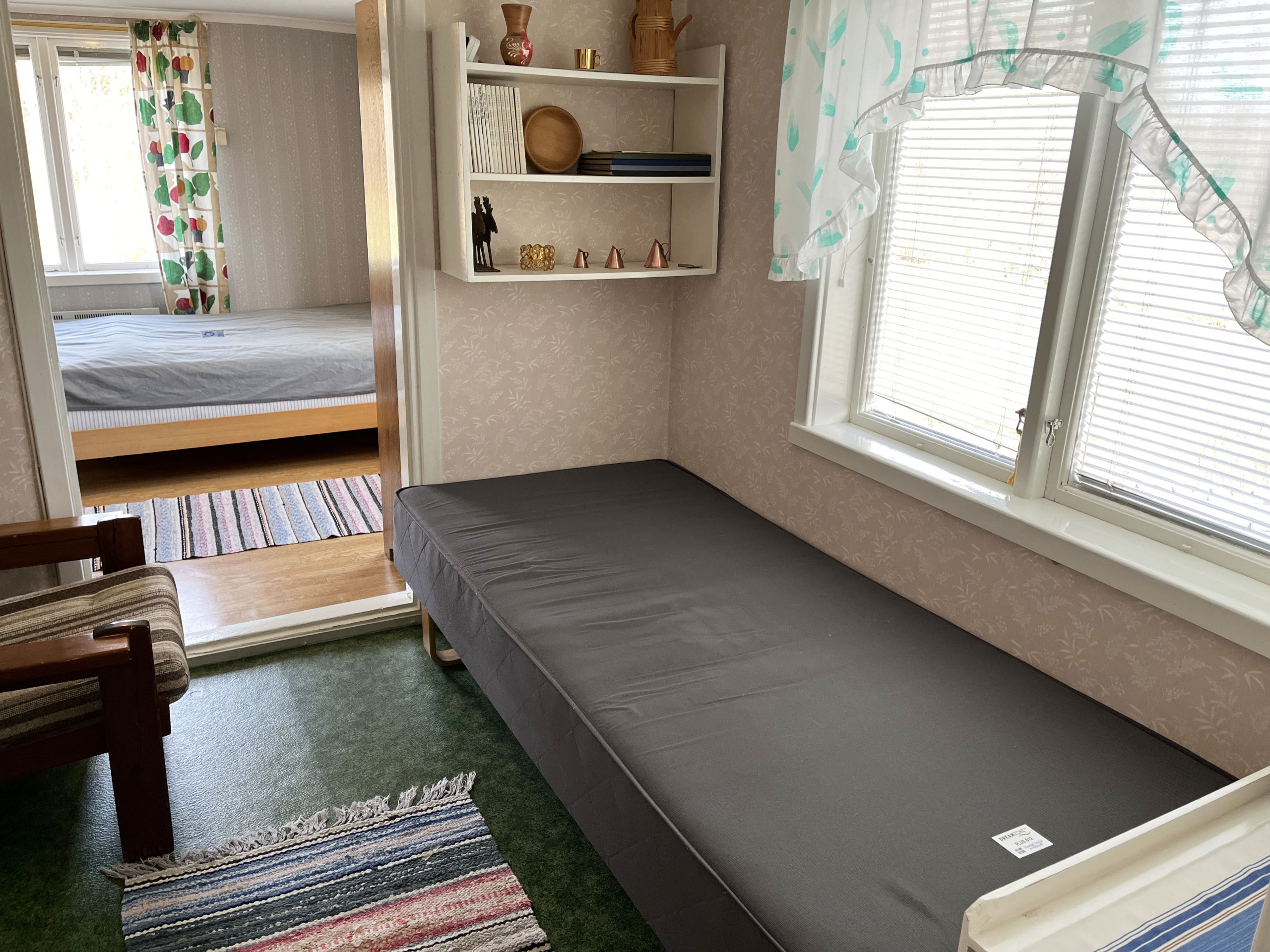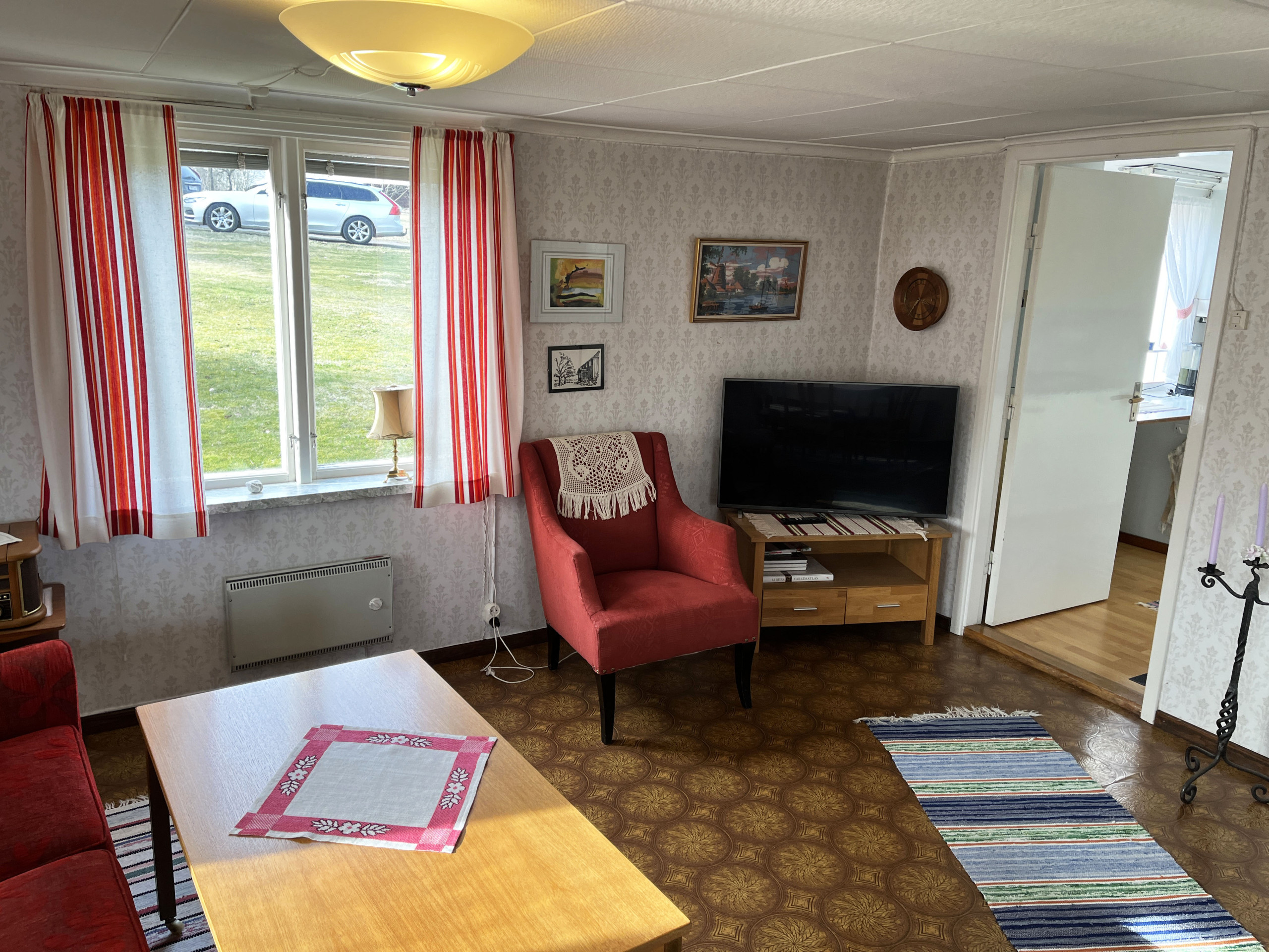 A little nice red cottage outside Virserum with a peaceful environment. When you enter the house, you enter a small hall. You then enter the kitchen with an adjacent dining room. In the living room, you can sit and cozy up in front of the small wood-burning stove. Upstairs you will find four bedrooms where there is a double bed in one of them and a single bed each in the other three. Two of the rooms are walk-through rooms. The bathroom is also located upstairs. The house is located in a nice and beautiful environment with proximity to a nice bathing lake.