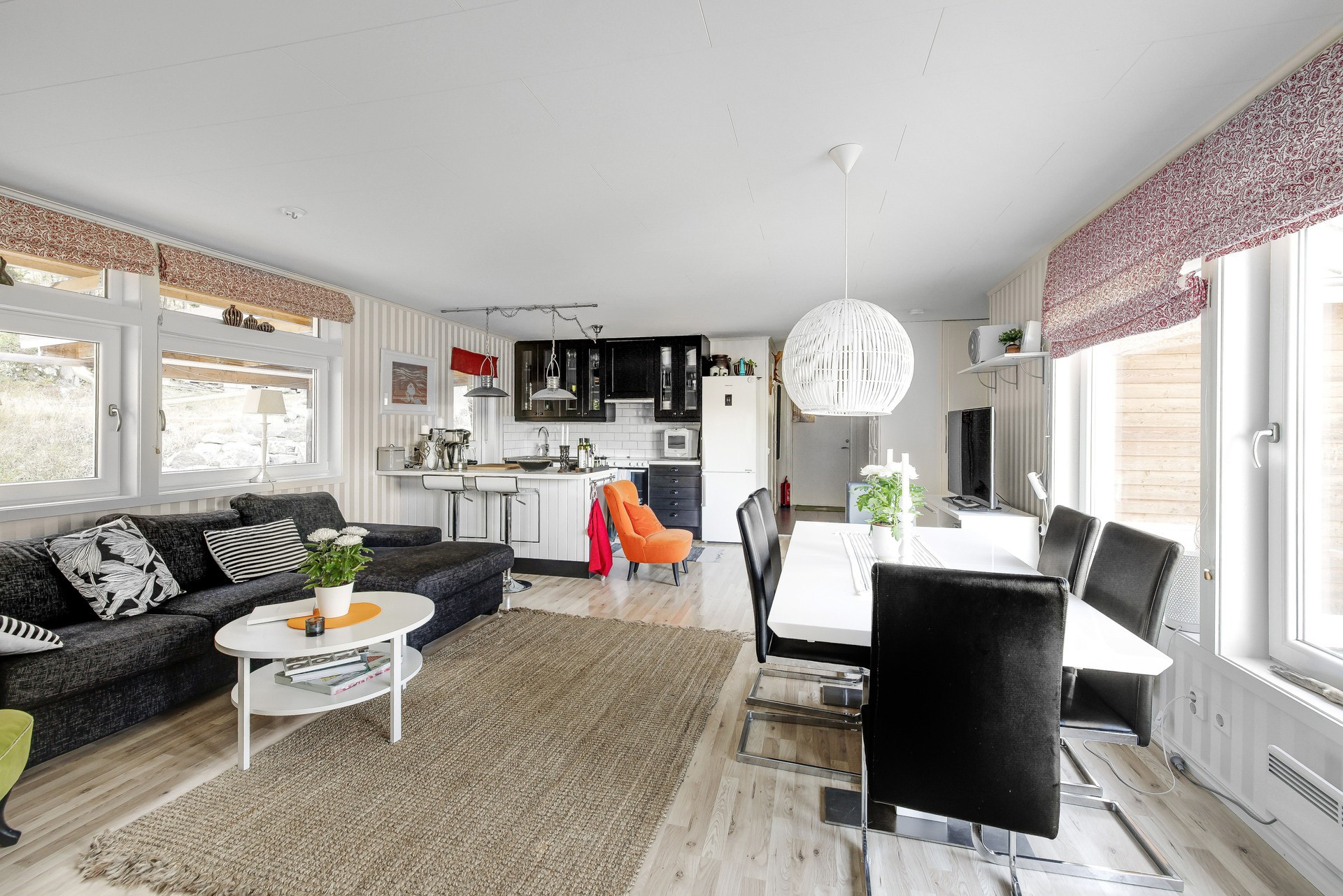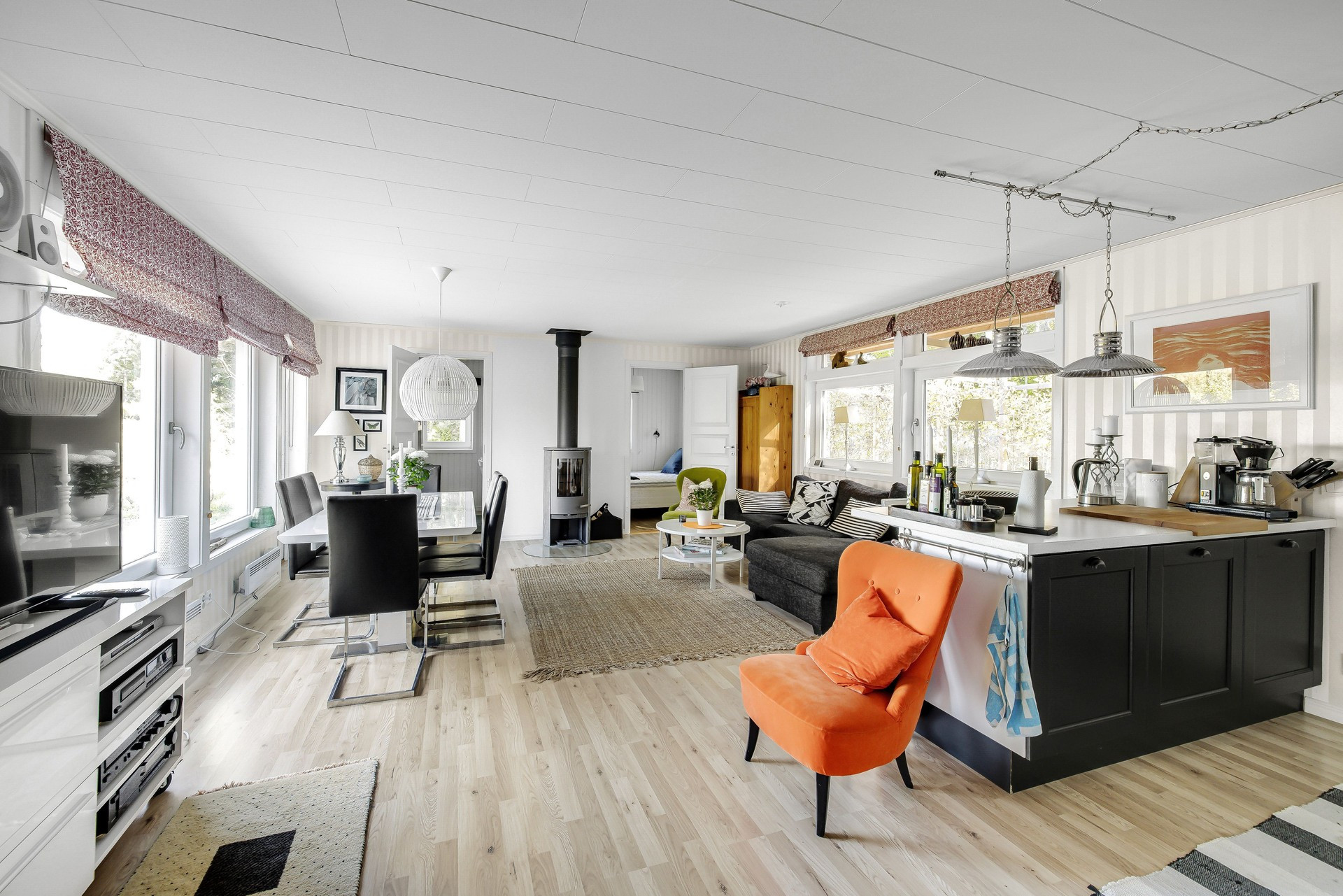 The recently renovated 137 m2 cottage called Agnestugan was built in 1918. The original wallpaper from when the house was built still hangs in the dining room, living room and one bedroom, which gives the house a museum-like feel. When the house was built, Agnestugan was one of the area's grand estates, which is why it was chosen to have a ceiling height of over 2.60 m on both the ground floor and upper floor.