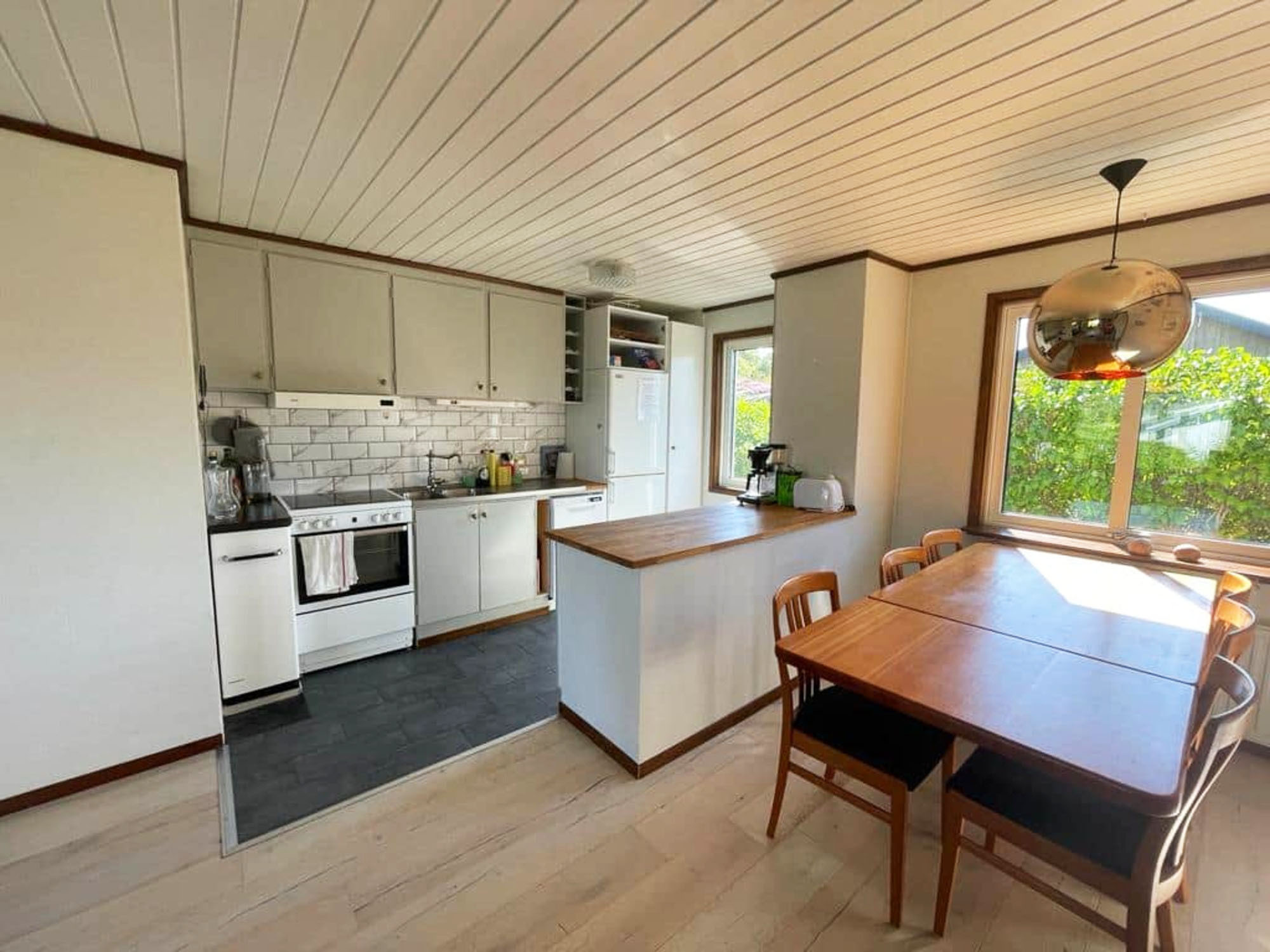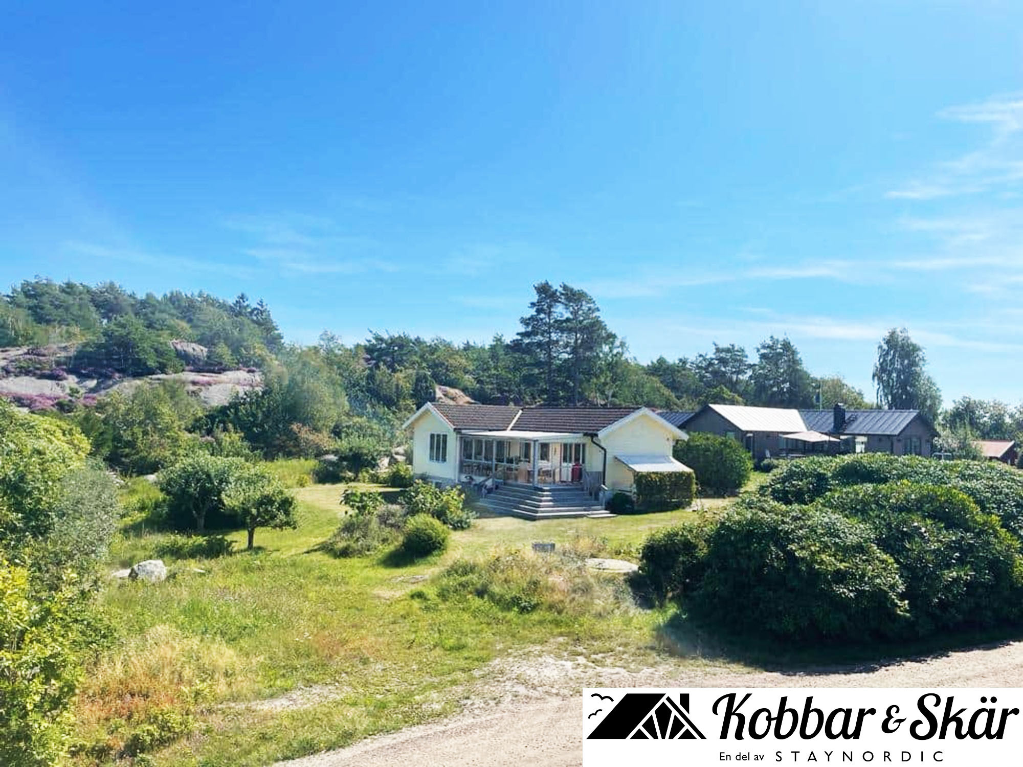 Welcome to this charming cottage in Röra Grönvik on Tjörn, a true summer paradise just 250 meters from a natural beach, jetty and diving platform. The house is set on a large sunny plot with plenty of space for play and relaxation. Enjoy your morning coffee on the patio or unwind in the glazed conservatory with views of the garden. The house accommodates up to six people and offers three bedrooms: one with a double bed, one with bunk beds and one with a single bed. There is also a bathroom with shower and toilet, a well equipped kitchen with dishwasher, and two living rooms with sofas, TV and fireplaces. The cozy kitchen stove and the two fireplaces create a warm atmosphere all year round. Downstairs you will find an additional living room and a laundry area. The spacious garden invites you to relax or play a game of kubb or badminton. In the evening, enjoy the beautiful sunset over Stigfjorden. The nearby natural beach is calm and mostly visited by locals, perfect for swimming or crab fishing.
