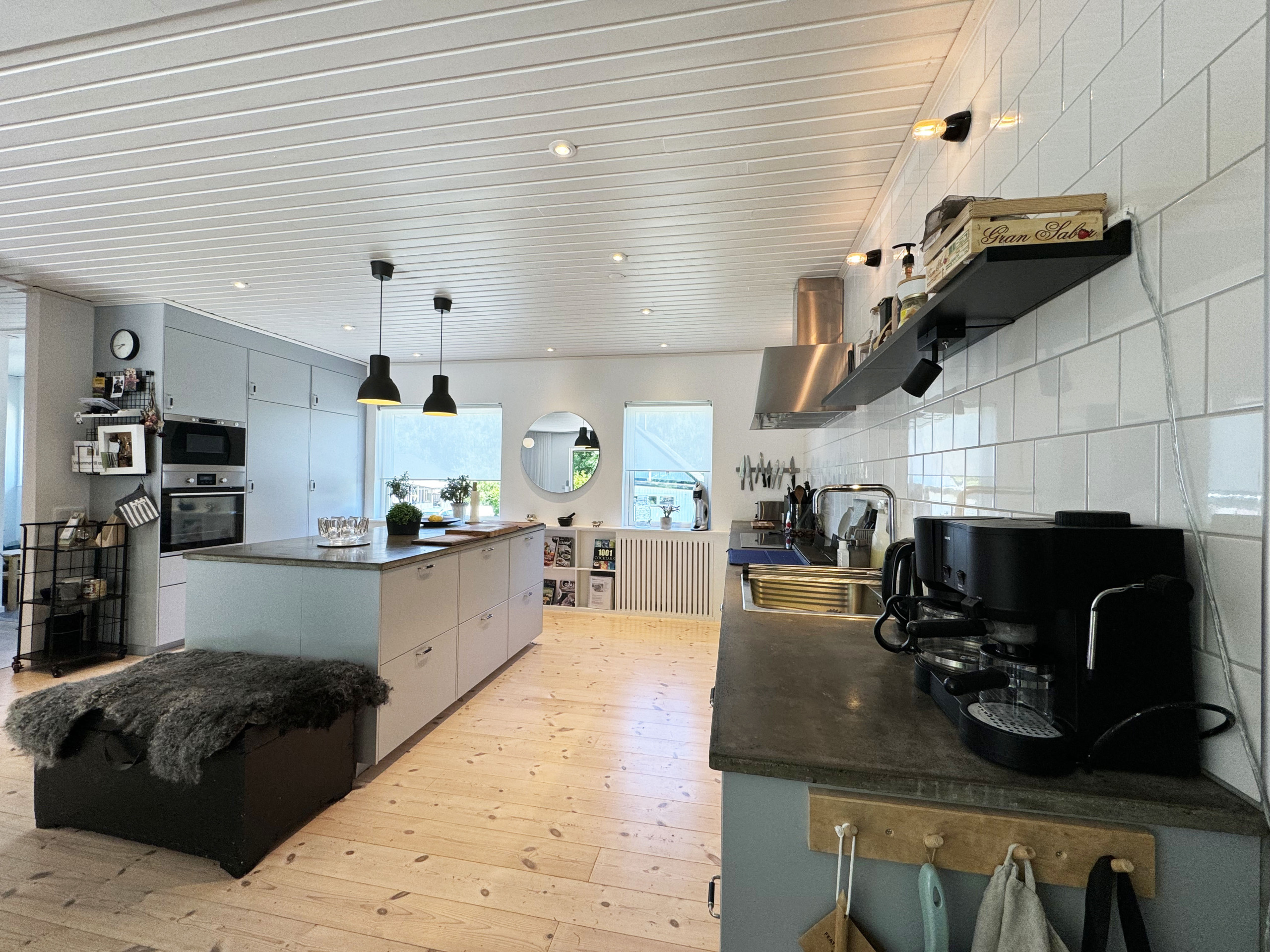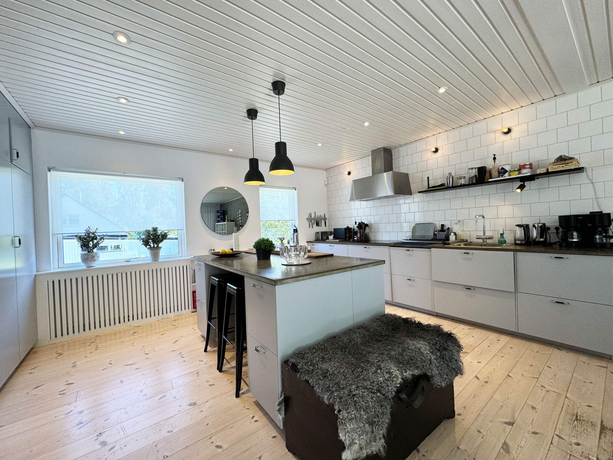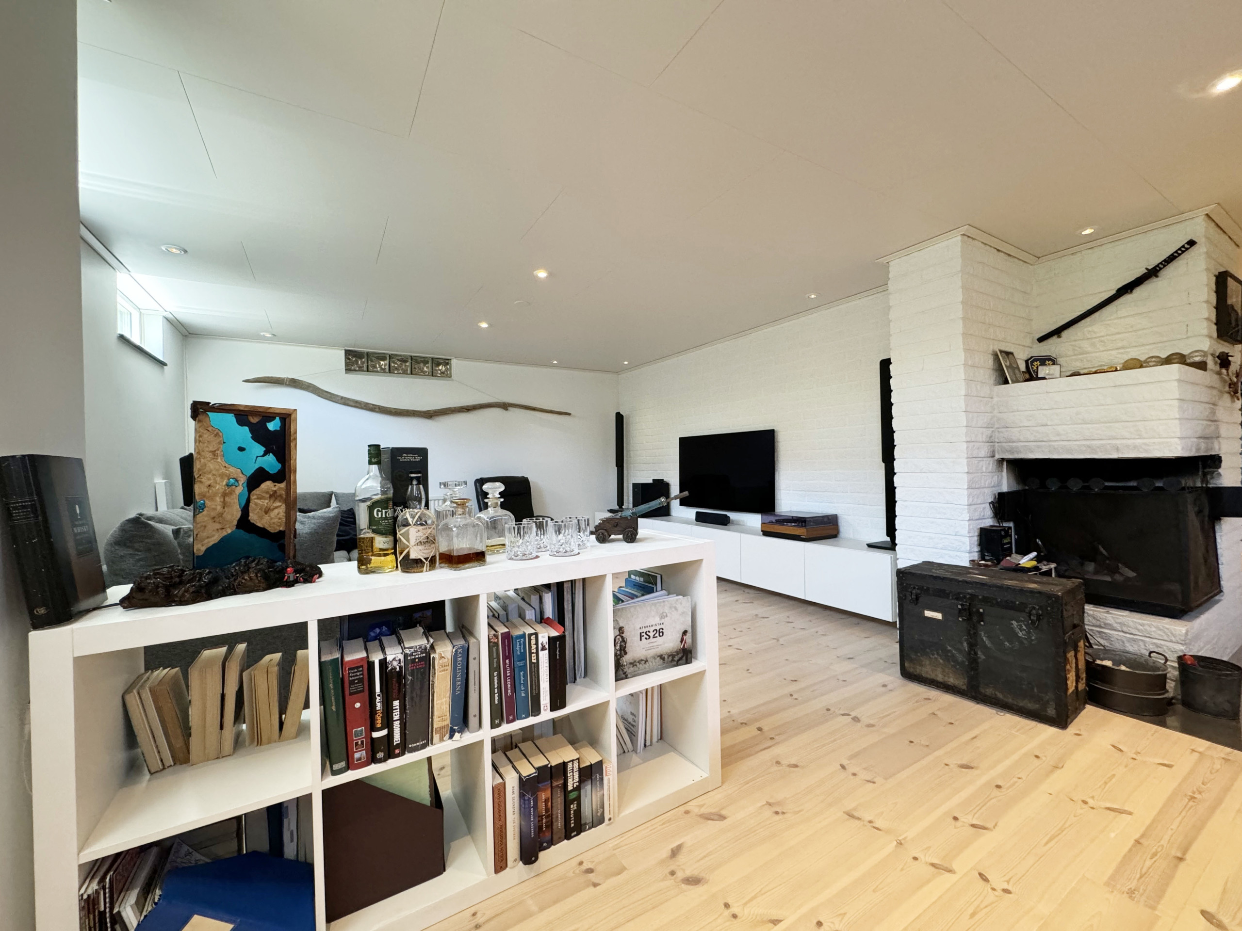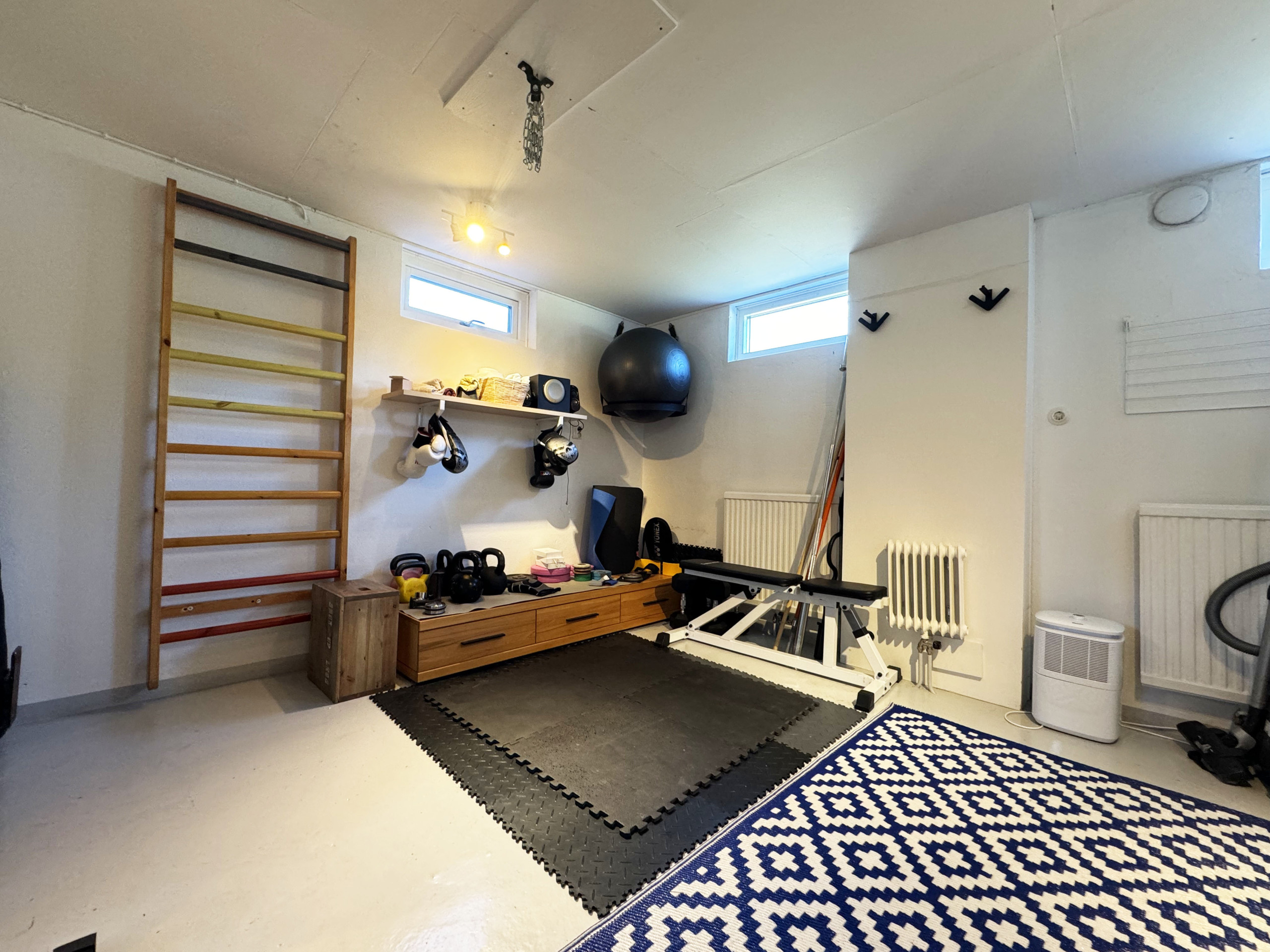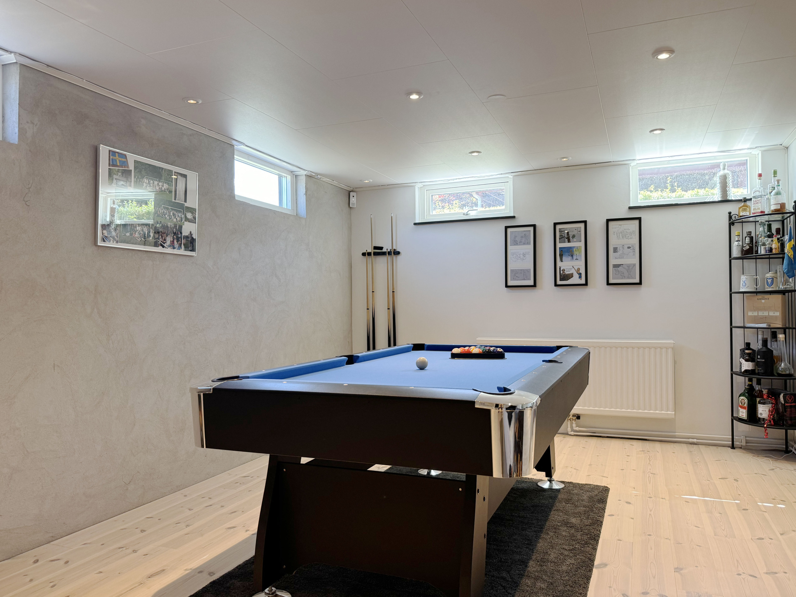 The large, fully tiled bathroom is equipped with a modern shower and offers a fresh and relaxing environment. Downstairs you will find a luxuriously furnished family room that invites you to evenings of socializing and entertainment. Here there is a fireplace that creates a warm and inviting atmosphere, a pool table for exciting matches, and a sofa bed for extra sleeping places. On the same floor, there is also a sauna with a shower for relaxing spa moments and a fully equipped gym for those who want to stay active.