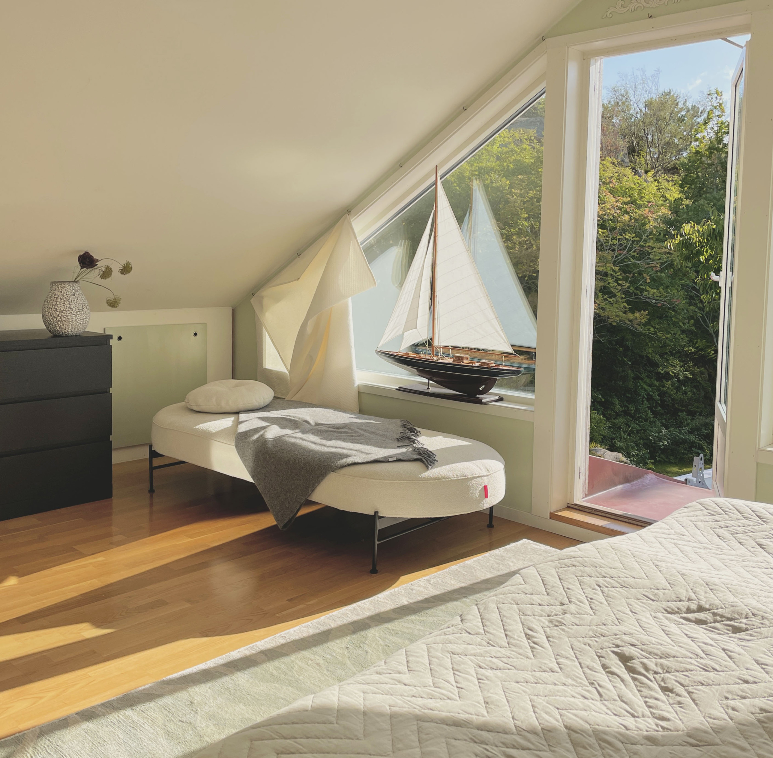 • This accommodation does not provide bed linen and towels - please bring your own. The main bedroom has a king size (180 bed), the guest cottage has 2x80 beds with a Queen mattress on it. There you can choose whether you want Queen sheets or split into two twin sheets. The sofa bed upstairs has 2x80 mattresses. All duvets are single duvets