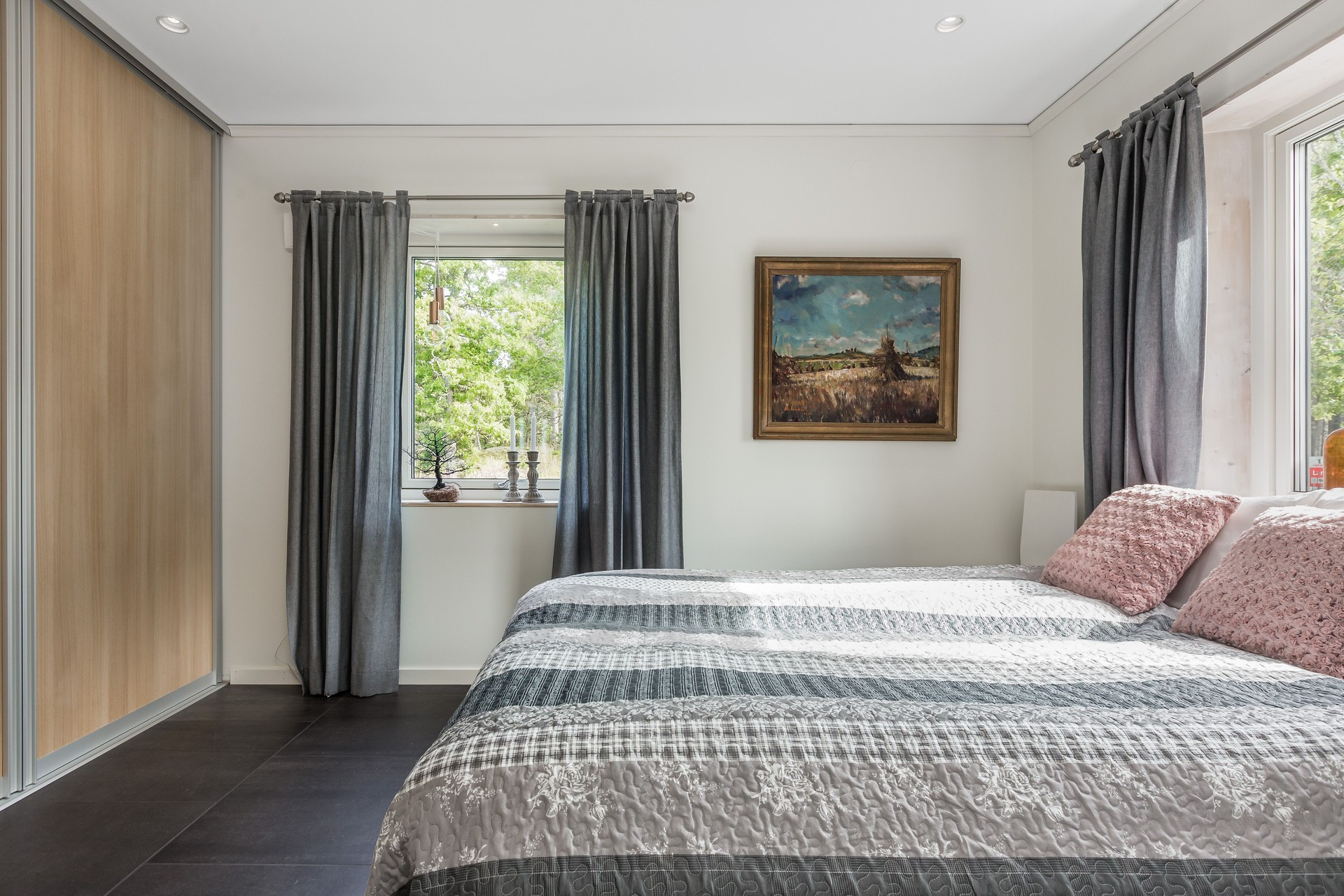 Welcome to this modern house in Kisa, Östergötland. Beautifully decorated with large windows, high ceilings and lots of light with room for five people. Enjoy your coffee in the morning on the terrace. The house has a patio deck around the house and downstairs you have access to another patio deck where you can enjoy your dinner. Here you have everything for a comfortable holiday. Dishwasher, washing machine, dryer and free internet wi-fi. The accommodation has two bedrooms with a double bed in each room and an extra single bed to place in any place in the house. The house has large plot and offer the forest as a view.